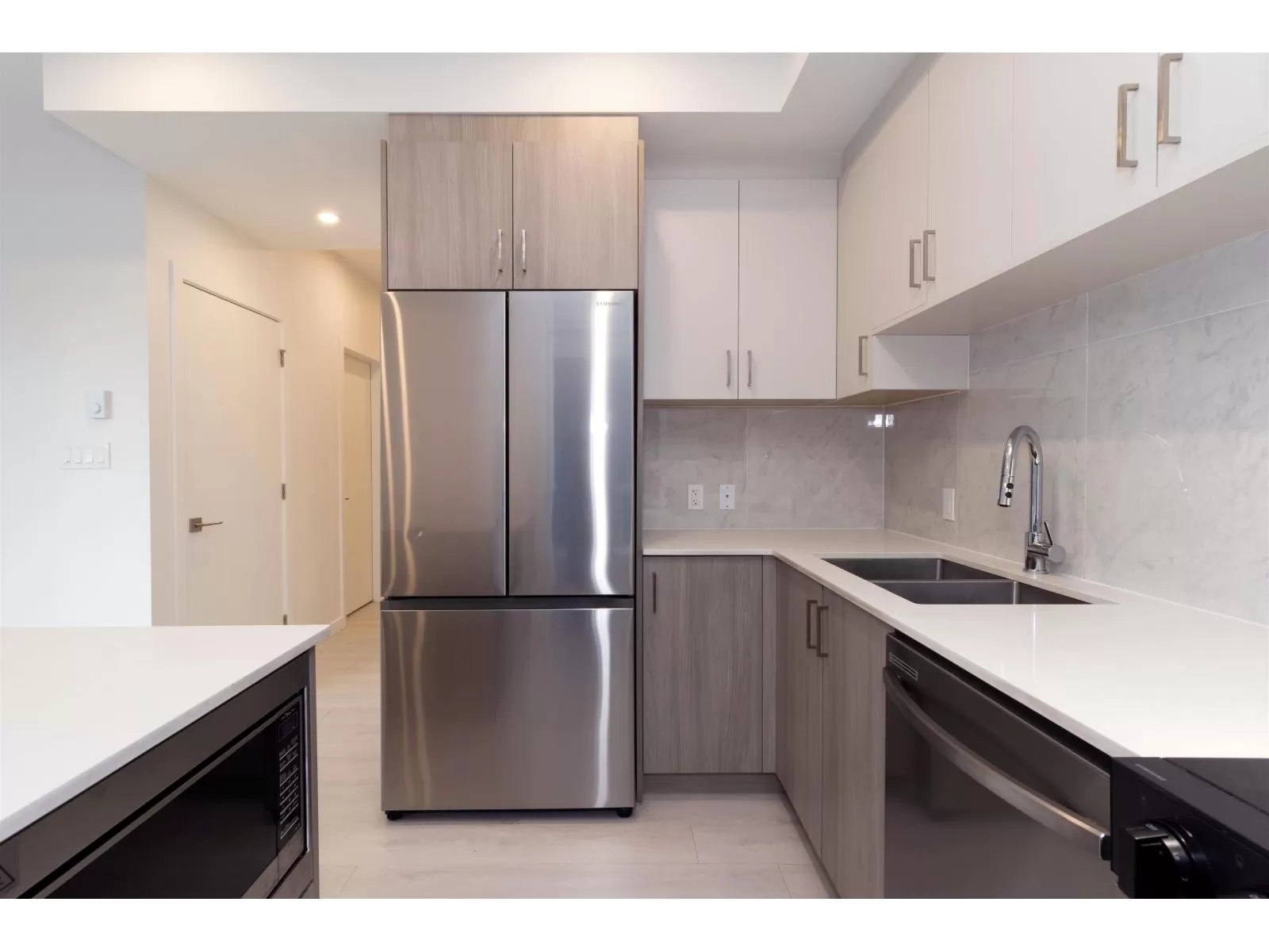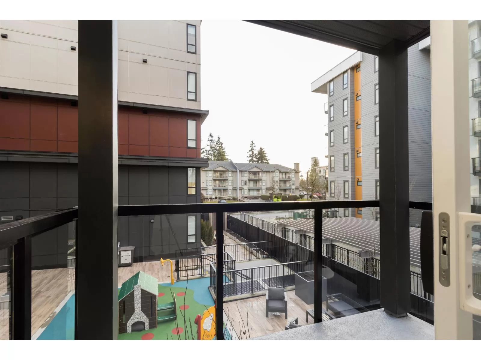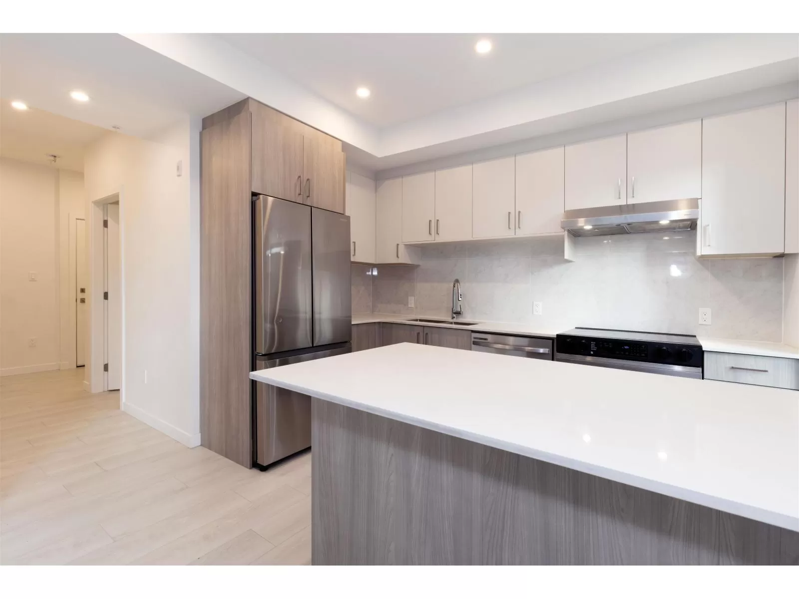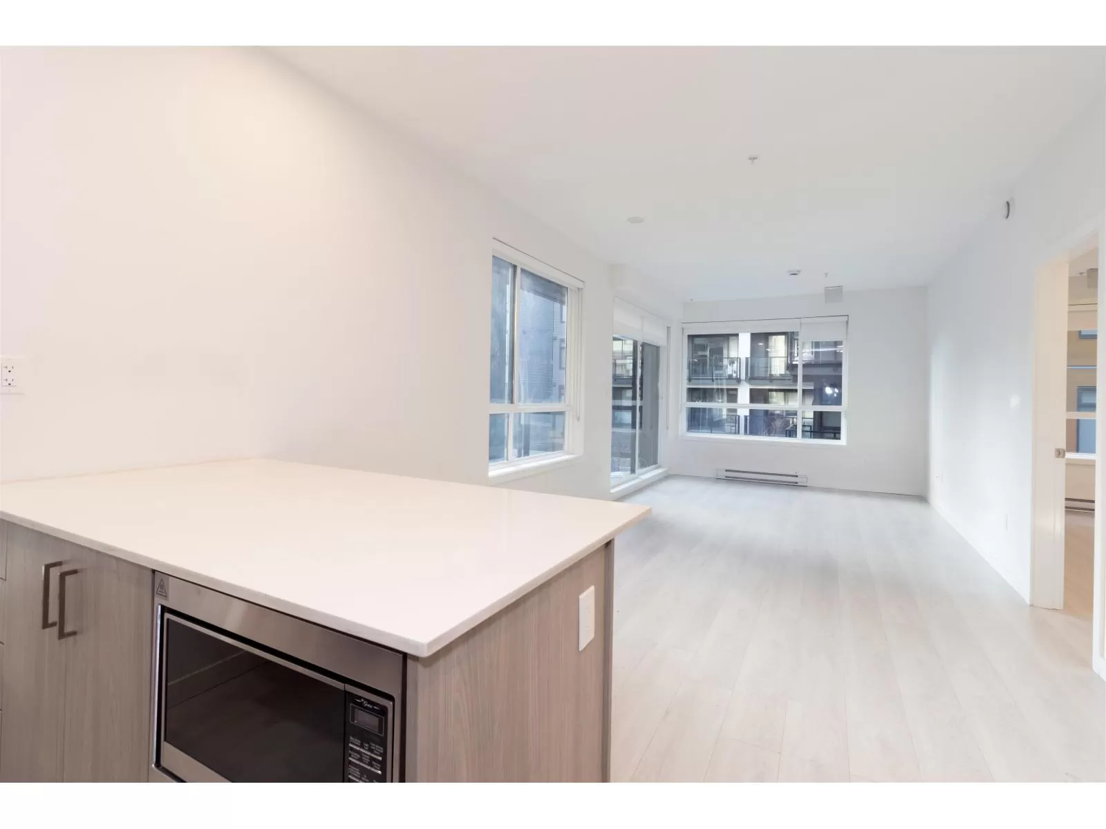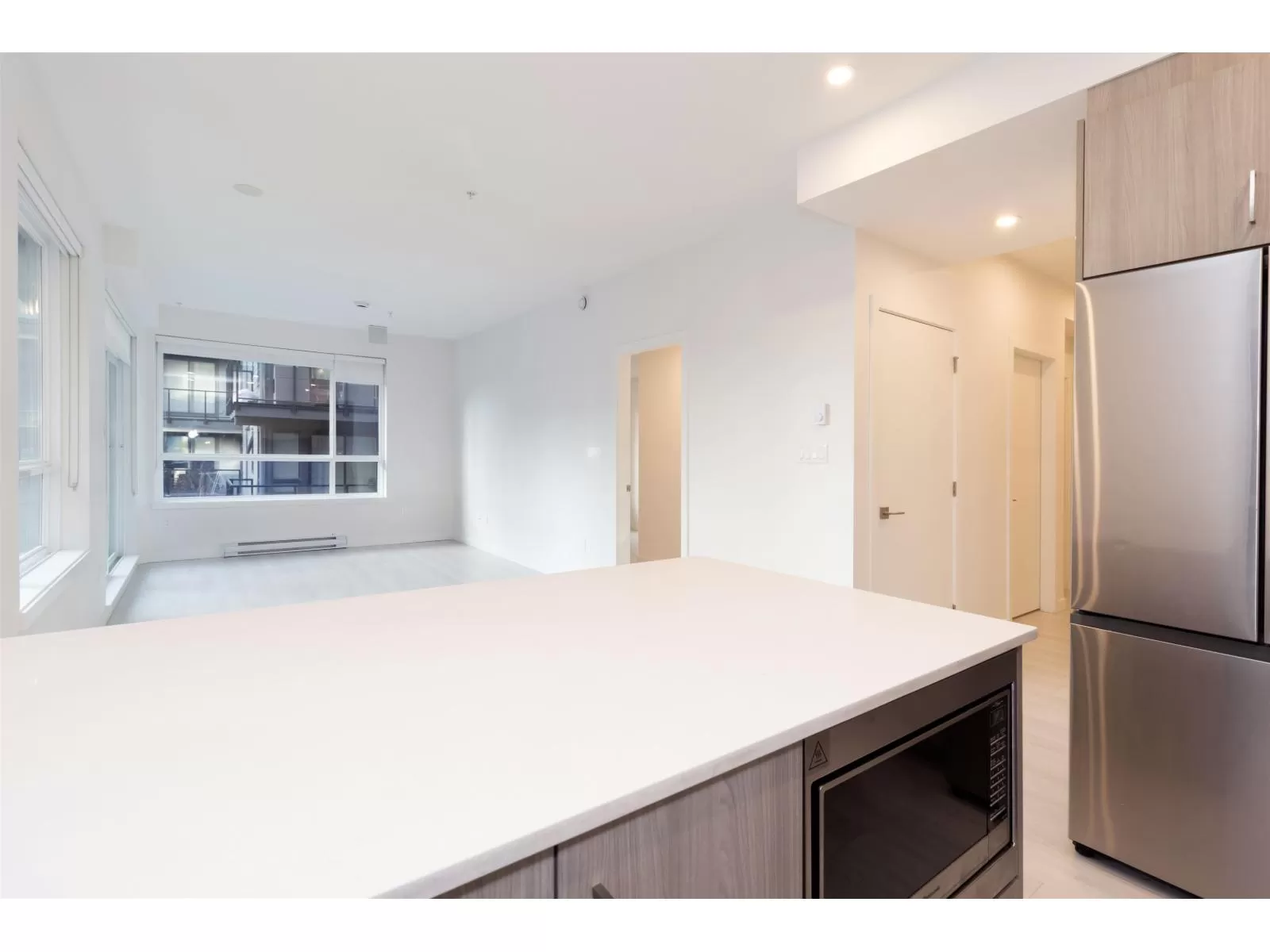 Welcome to Radley, 6 level condo development by West Fraser. This charming home offers 2 BEDROOM & 1 DEN, an open floor plan featuring a LARGE QUARTZ COUNTERTOPS, Samsung SS appliances, including an ICE MAKER FRIDGE. Laminate flooring throughout, West-facing covered deck, primary bedroom spacious walk-in closets, bedrooms CUSTOM-BUILT CLOSETS ORGANIZER, soft-close drawer, baseboard heating. With in-suite laundry, 1 parking spot, and 1 storage unit, convenience is at your fingertips. Just steps from the bus stop, Surrey Central SkyTrain, and SFU Surrey campus, everything you need is close by. The building offers fantastic amenities, including a fully-equipped BBQ area, lounge seating, entertainment rooms, a fireside lounge with kitchen, fitness center, and yoga studio. (id:27476)