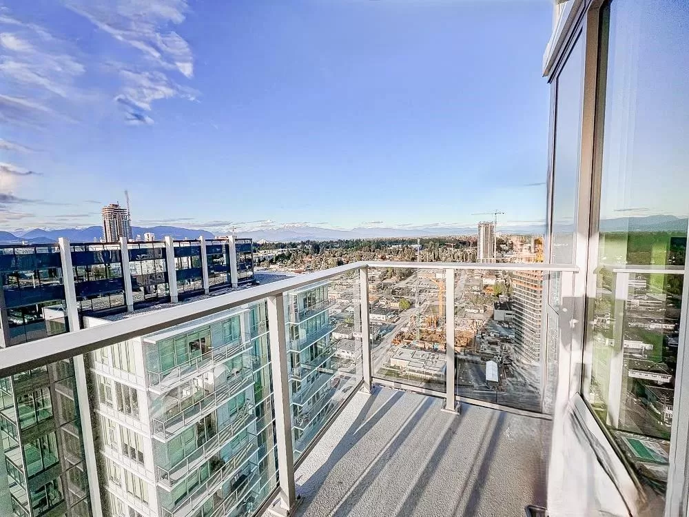 Welcome to this bright and spacious 2-bedroom corner unit on the 31st floor of a 38-storey high-rise in the heart of Surrey. Enjoy stunning city views, abundant natural light, and a large balcony. This home features central A/C, an open-concept living and dining area, a modern chef's kitchen with quartz countertops, one secured parking stall, and a large storage locker. The building offers over 23,000 sq. ft. of premium amenities including fitness and yoga rooms, indoor/outdoor kids' play areas, lounges, dining kitchen, business center, games room, outdoor pool, BBQ area, bike storage, parcel lockers, and visitor parking. Just steps to transit, SFU, shopping, and more. Motivated seller - try your offer! (id:27476)