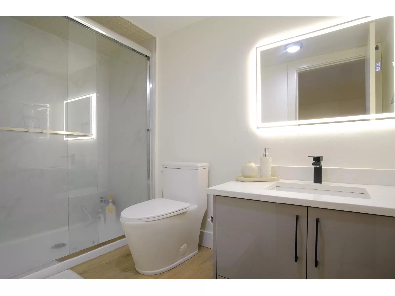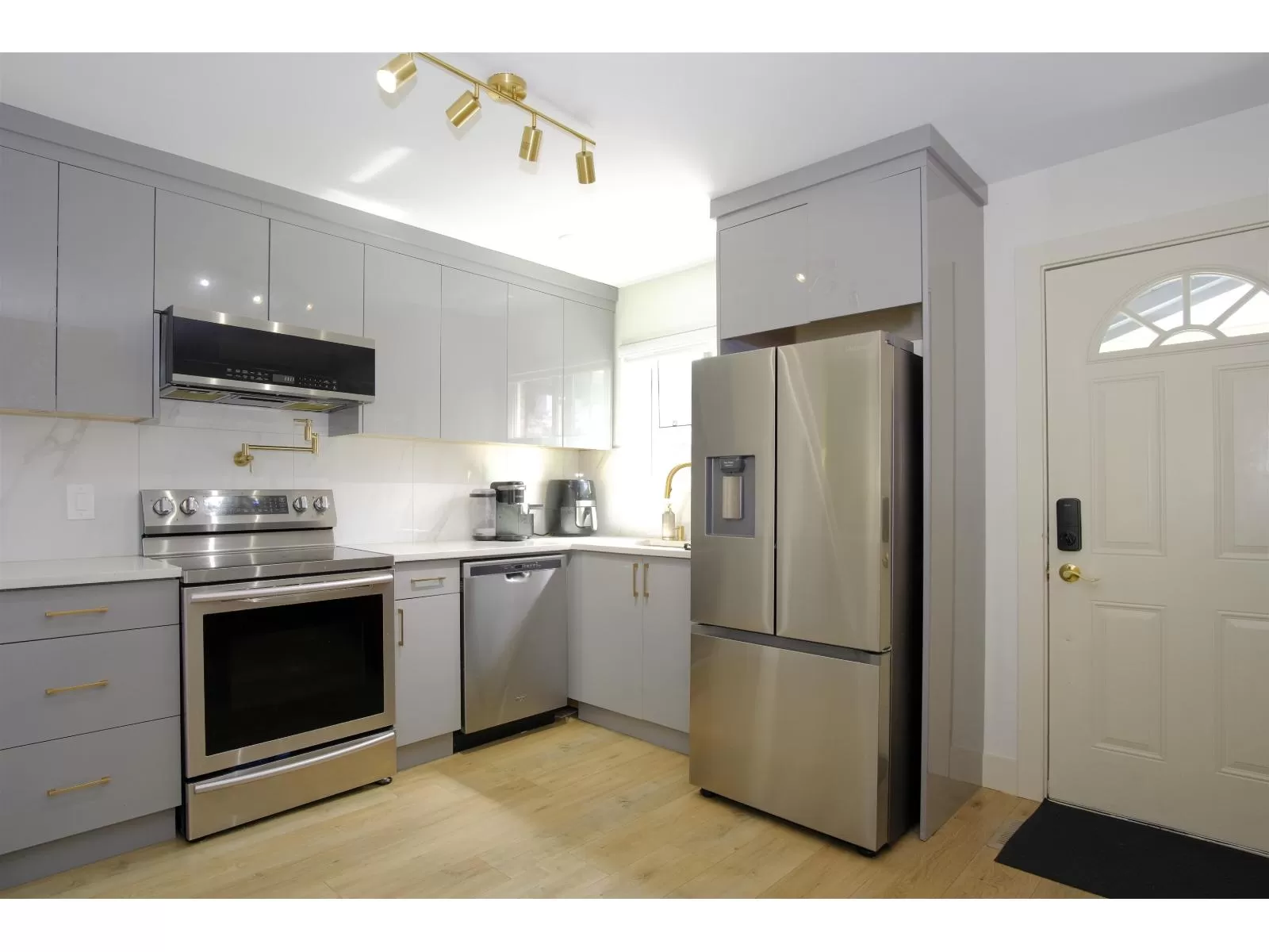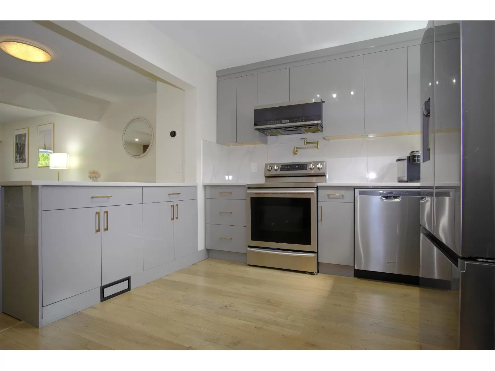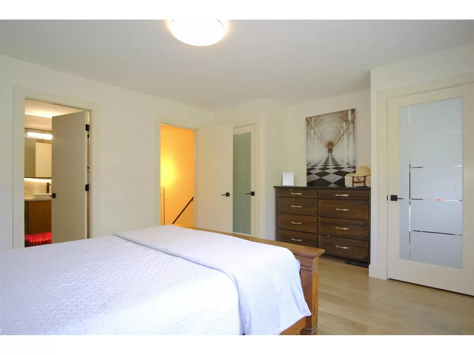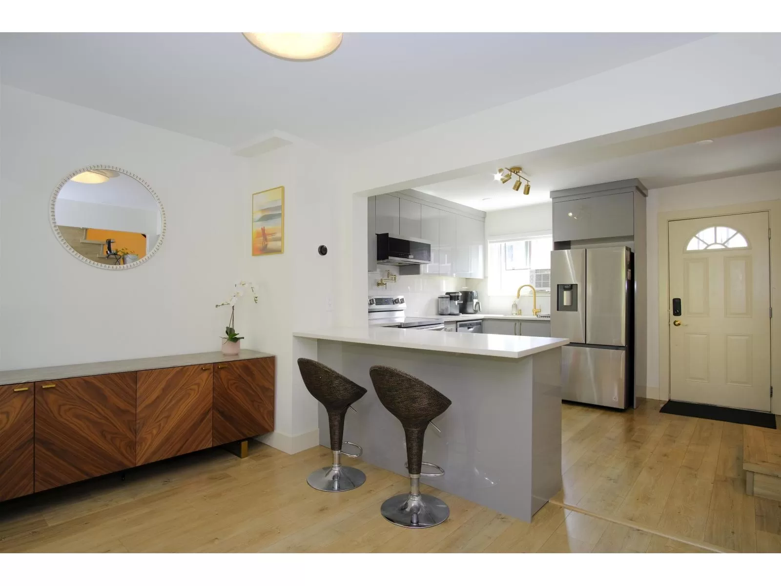 Luxuriously renovated townhouse with premium finishes and all-new interiors, including brand-new PEX plumbing, tiled feature walls, pot filler, cascade shower, custom millwork, and sleek glass railing. Upstairs offers 2 king-size bedrooms with a spa-inspired king bath; downstairs features a fully finished basement with 1 bedroom, 1 bath, separate laundry area + bar area, and storage. Quartz kitchen, RGB pot modern lighting, and a private covered patio with fenced backyard. New roof and siding. Located just seconds from Hwy 1 and walking distance to Guildford Mall, transit, rec centre, and all amenities. No rental or age restrictions. Strata actively exploring high-rise redevelopment under the approved zoning, presenting a strong wind-up opportunity and excellent investment potential. (id:27476)