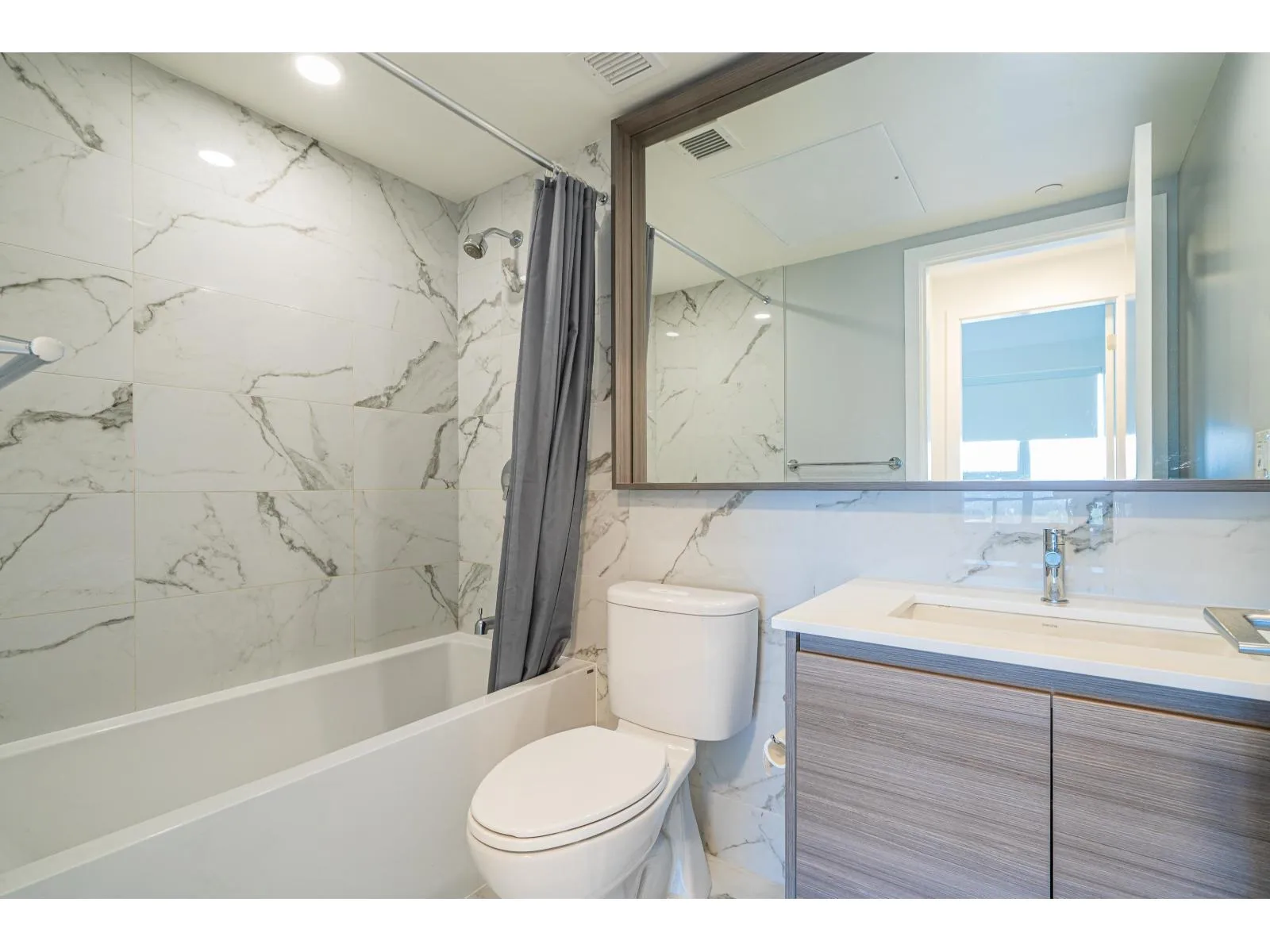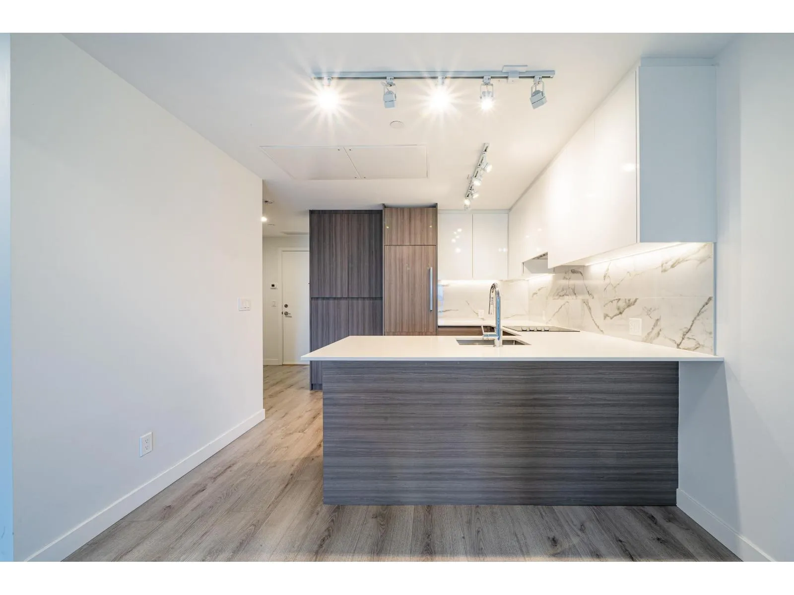 Welcome to Parc Centrale! This exquisite two-bedroom apartment in a concrete high-rise building offers a unique layout and appears nearly new. Built-in sliding doors convert the living room into a second bedroom, and the apartment features Bosch stainless steel appliances, laminate flooring, and 9-feet ceilings. Additionally, the apartment boasts a large, north-facing 135 Sqft balcony with stunning mountain, river, and city skyline views. Amenities include a rooftop terrace, a spacious fitness center, and a conference room. Located in the heart of Surrey, this apartment is within walking distance of restaurants, supermarkets, Simon Fraser University, Kwantlen Polytechnic University, and the Skytrain. One EV parking stall is included. (id:27476)