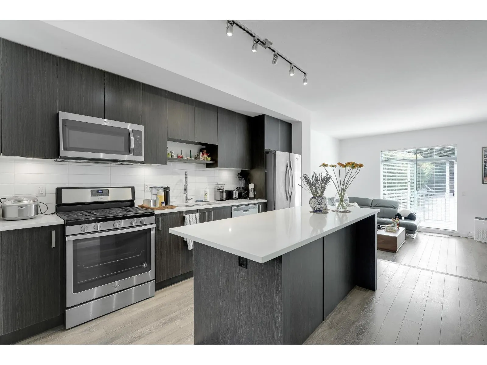Meticulously maintained like-new 3-bdrm, 3.5-bath townhome at Old School by Dawson Sawyer. Contemporary open-concept living spaces w/ durable laminate flooring throughout main & lower living levels. The expansive main floor combines large dining rm, centre island kitchen & sunken living rm. Entertainment sized kitchen comes w/ quartz countertop, under cabinet task lighting, gas range & under mount double bowl sink. Master bedrm is king-sized with walk-in closet. Large ensuite w/ his+hers sink & oversized shower w/ ceramic tile & modern fixtures. Well-designed ground floor incl. a spacious bedrm, full bathrm & a side-by-side garage. Walking distance to everything & centrally located on major transit routes. Ideally situated near the best golf courses & beautiful White Rock Beach. Jessie Lee Elementary, Earl Marriott Secondary, Southridge Private School. A MUST SEE! (id:27476)