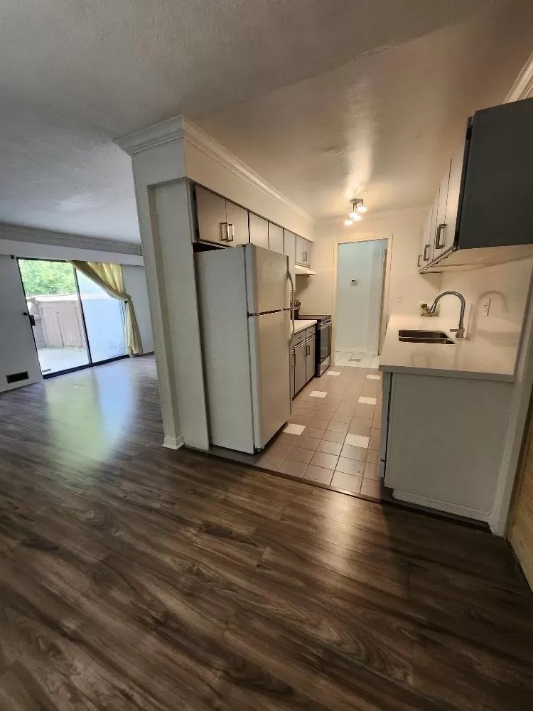 Welcome to this spacious & cozy 3 Bedrm corner unit townhouse facing greenbelt in popular Hawthorne Park in family oriented well run strata. On main lvl, a large living rm greets you leading to ample dining rm area & NEWLY RENOVATED galley kitchen w/ new stove, quartz countertops, backsplash. A powder rm & large shoe/jacket closet & laundry closet rounds out 1st flr. Upstrs has 3 good sized bedrms w greenbelt views, full bathrm & BRAND NEW Laminate flrs. For outdr entertainment, step into huge private fenced concrete patio/yard,perfect for kids/pets to play in. The strata has a beautiful outdr pool, playground/park setting, newer roofs. Very close to the asian grocery mart Hen Long, express bus, elem./high schools. Excellent redevelopment potential. This is the home you have been seeking! (id:27476)