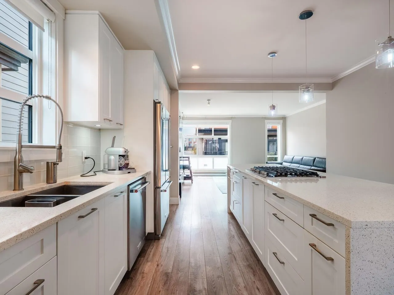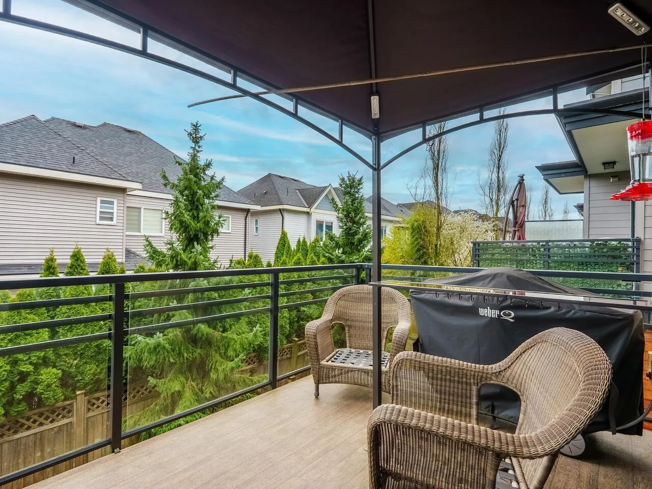 Imagine this Fantastic corner unit, 3 large bedroom, 3 bathroom + den/office!The over sized windows,9-foot ceilings on the main floor and 14-foot celling in the Master Bedroom, generating a cozy atmosphere.The kitchen comes with stainless steel appliances, a wall oven, quartz counters, a huge waterfall island with a gas cooktop. Outside on the main floor you'll find a large patio with a natural gas connection for your BBQ. The big backyard providing space for growing vegetables and flowers or offering recreational space. Property also offers an alarm system, upgraded appliances, central vacuum,oversized tandem garage, waterless tank garburator. Bose farm forest across from the complex, close to Cloverdale Athletic Park, Northview Golf Course, McLellan Elementary Schl. OP Oct 4, 2-4 pm (id:27476)