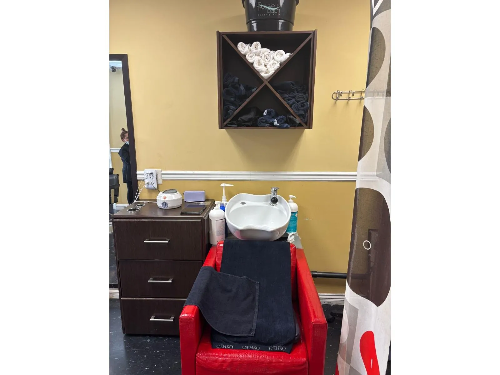 Turnkey hair salon business for sale in a high-exposure, ground-floor location with approximately 900 sq. ft. of space. This well-established salon has been operating for the past 10 years and is fully equipped with 3 hair stations, 1 waxing room, 1 facial room, 1 nail table, and 1 pedicure chair. The space also includes a private kitchen and bathroom for staff convenience. The monthly gross rent is $4,000, subject to a new lease agreement with the landlord. The sale includes all furniture, fixtures, and tenant improvements, making it a ready-to-operate opportunity for salon professionals or investors. Please note that the client list and business name are not included in the sale. This is a great chance to step into a functioning salon in a prime location. (id:27476)