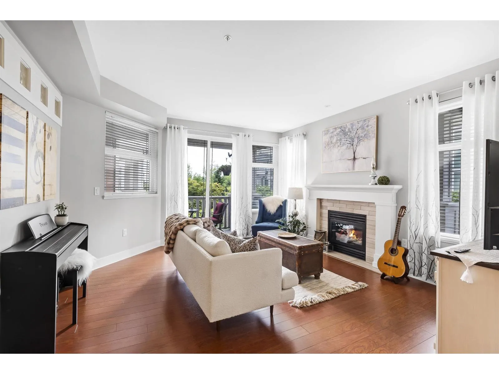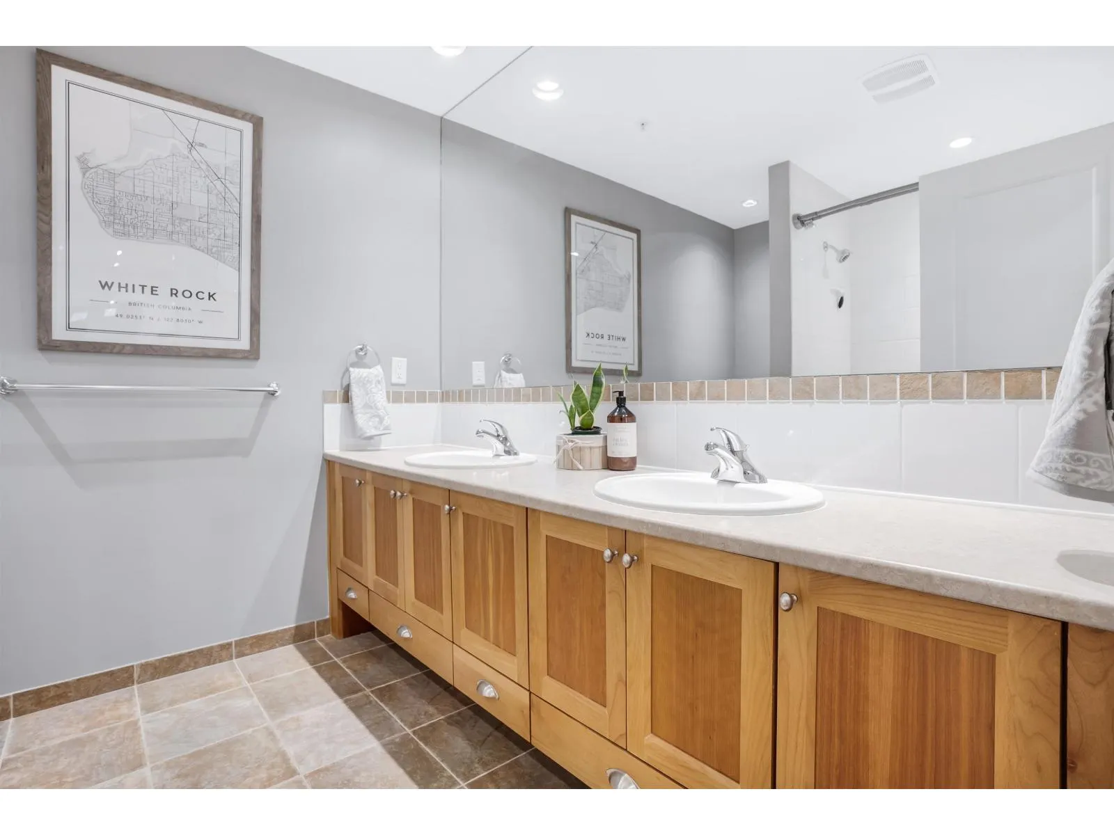 Welcome to Ocean Bay Villas - a rare southwest-facing 2 bed, 3 bath home filled with natural light. The open-concept living area features a cozy fireplace and a 103 sq. ft. balcony overlooking a peaceful courtyard. Both bedrooms offer private ensuites, with a stylish powder room off the foyer. The spacious primary includes a walk-through closet and dual sinks for added comfort. In a well-maintained, sought-after building, this home is steps to restaurants, parks, transit, and Peace Arch Hospital, and just 5 minutes to White Rock Beach and the U.S. border. Seller will pay 50% of the current monthly maintenance fee for 3 months reducing buyer's cost to only $360/month - an exceptional blend of lifestyle, location, and value. OPEN HOUSE - SAT & SUN 2-4PM (id:27476)