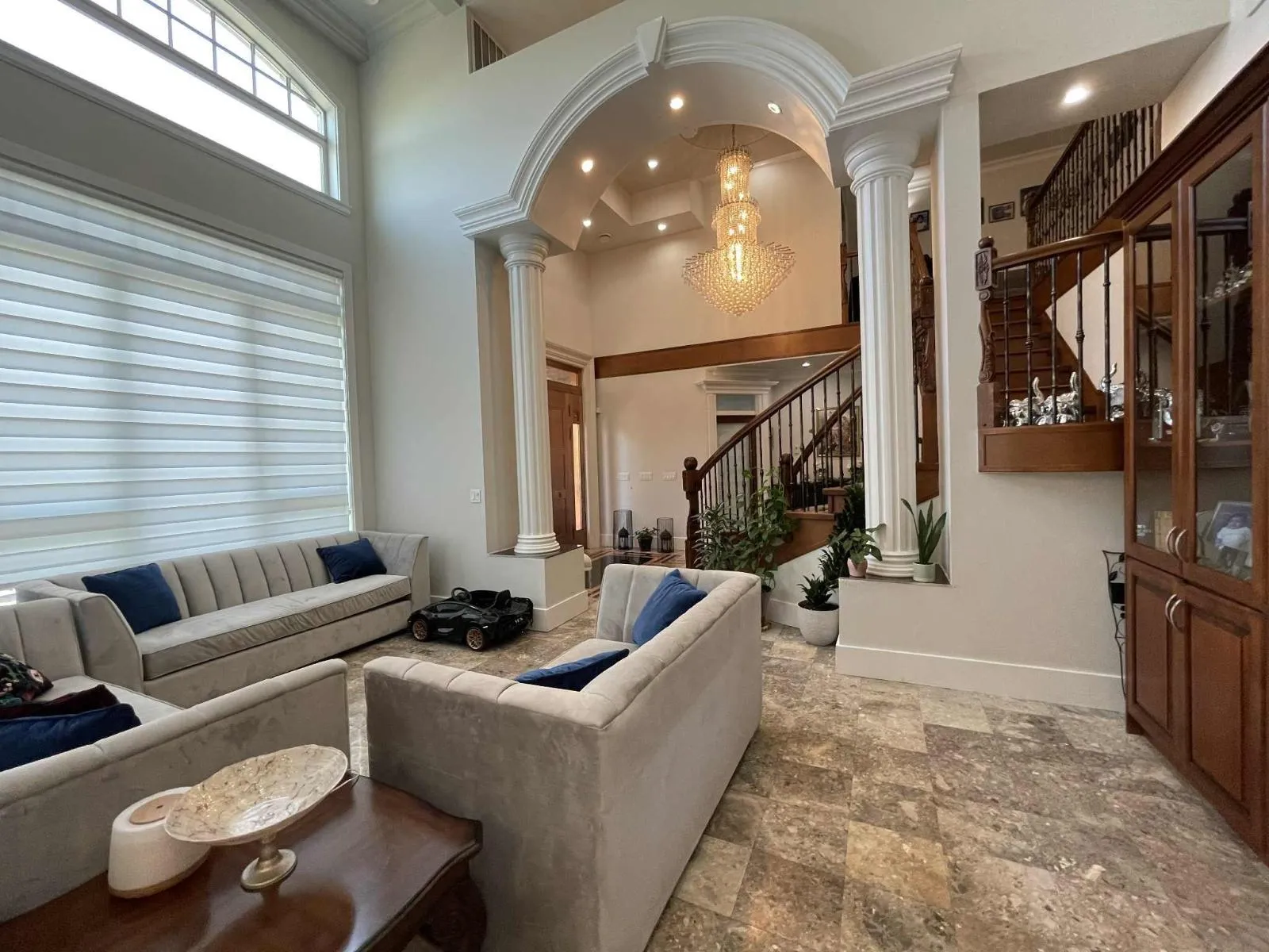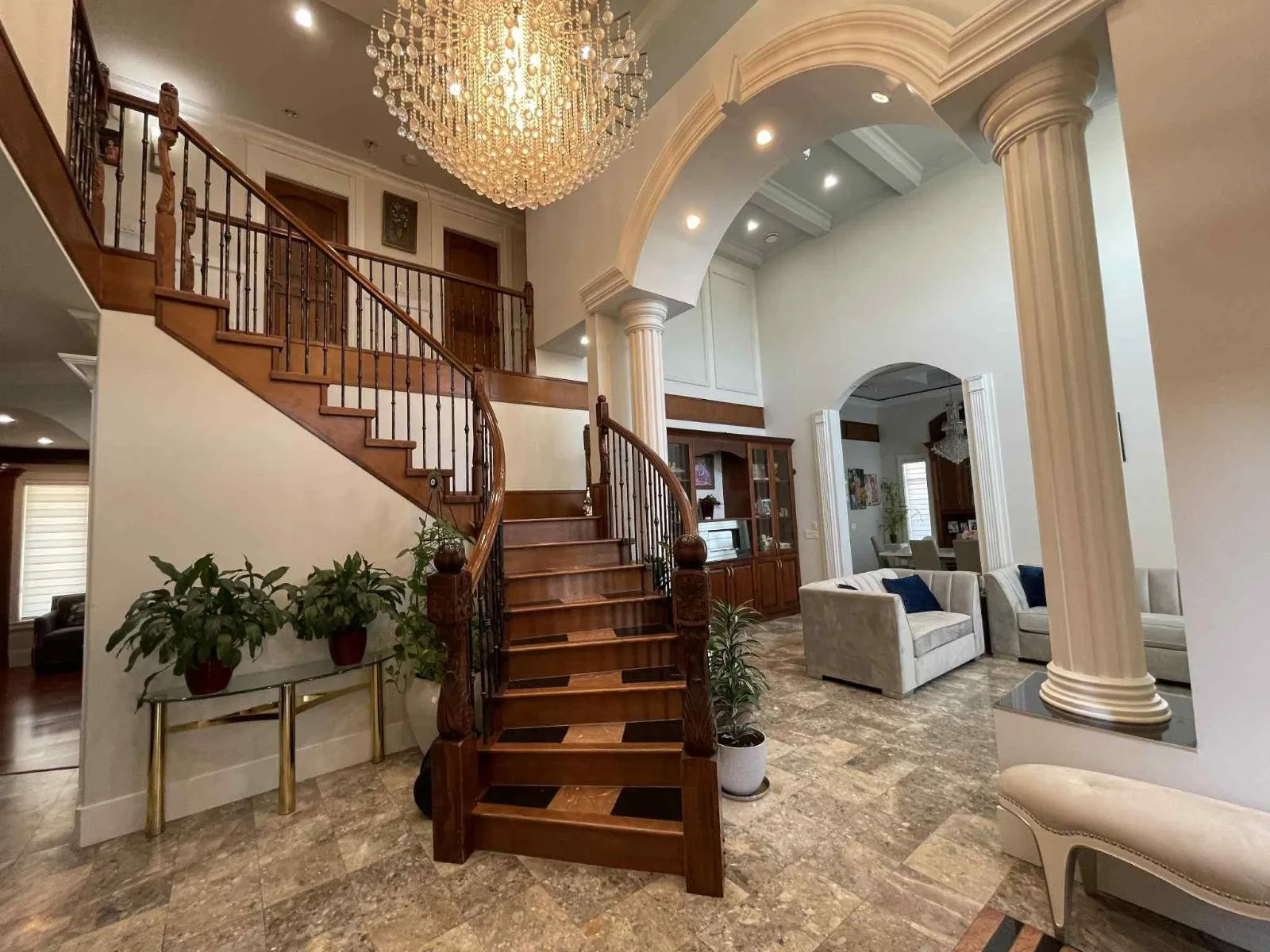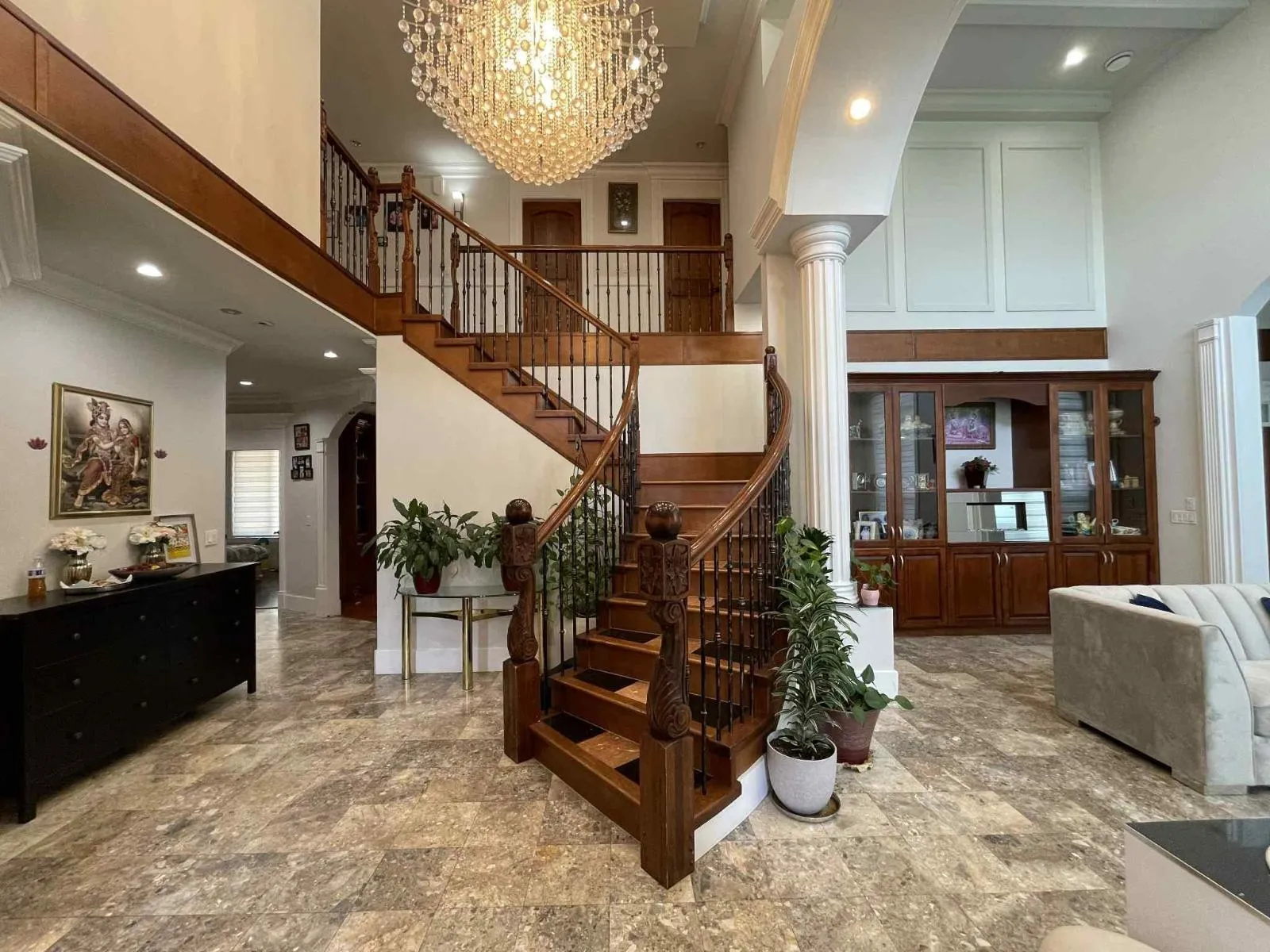 This custom-built, 5161 sqft home offers luxurious living with its spacious design, featuring 8 bedrooms and 6 bathrooms, perfect for a large family or hosting guests. The main floor includes a bedroom with a full bathroom, complemented by a large kitchen and a practical spice kitchen. Upstairs, you'll find four bedrooms and three bathrooms. The basement is designed for entertainment, complete with a theatre room, bar, and rec room, plus three additional bedrooms and two bathrooms, offering the potential for two suites. A triple car garage adds convenience, and custom features throughout the home provide a unique, personalized touch. (id:27476)