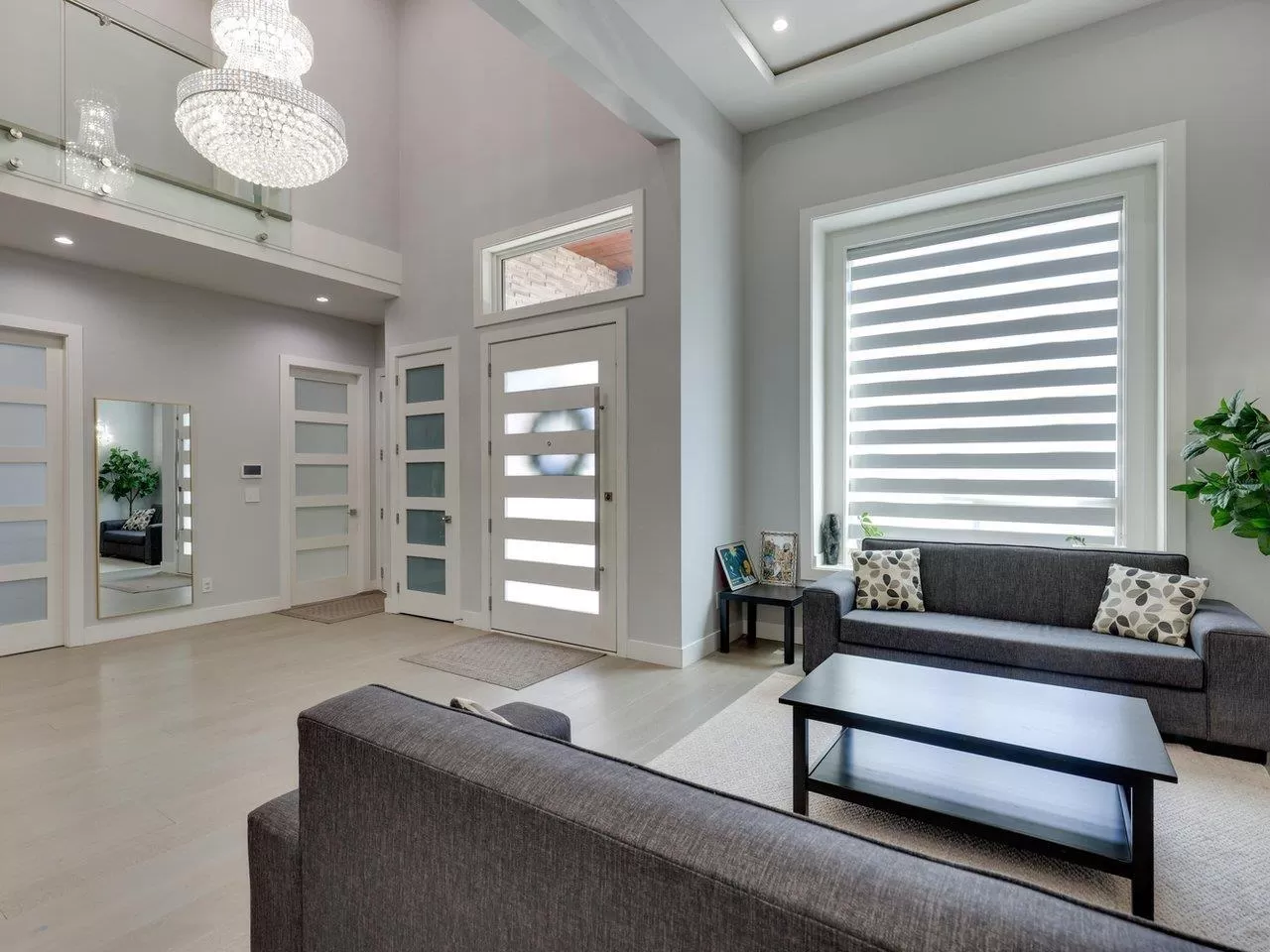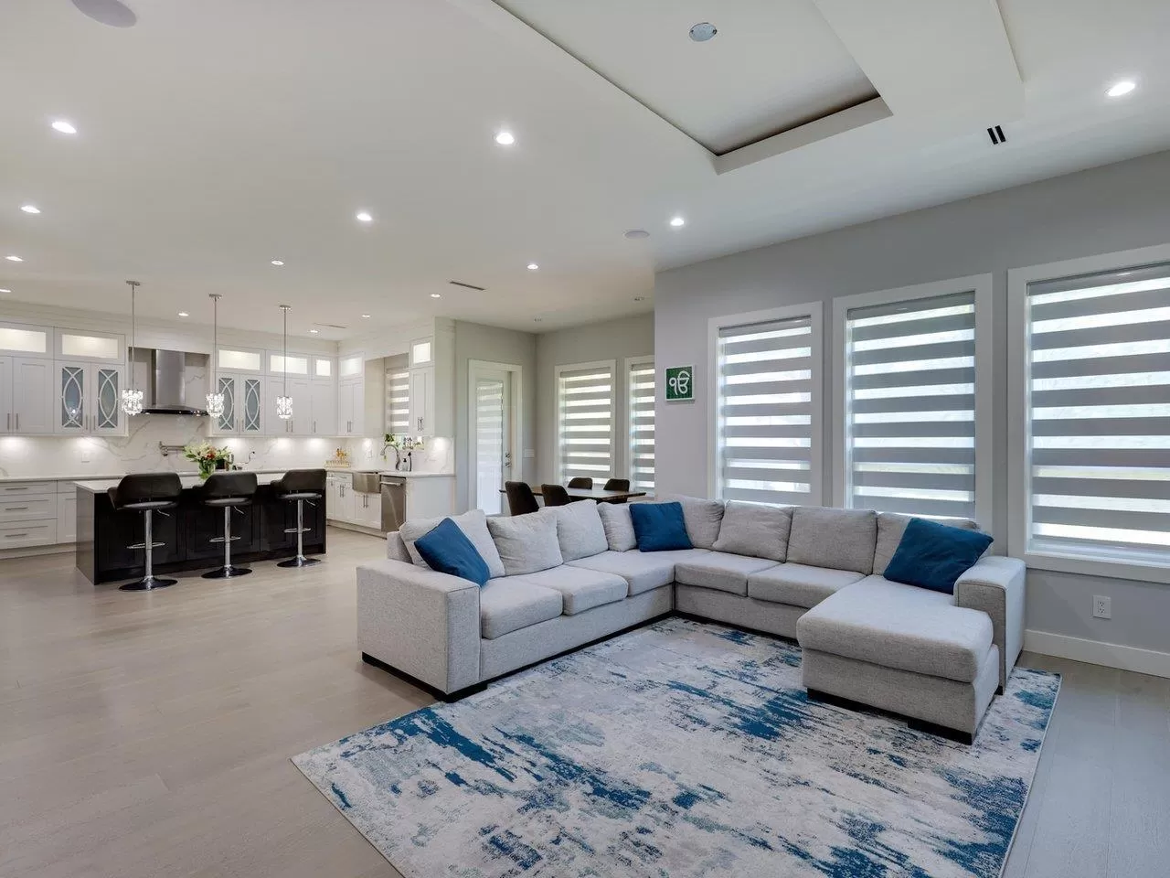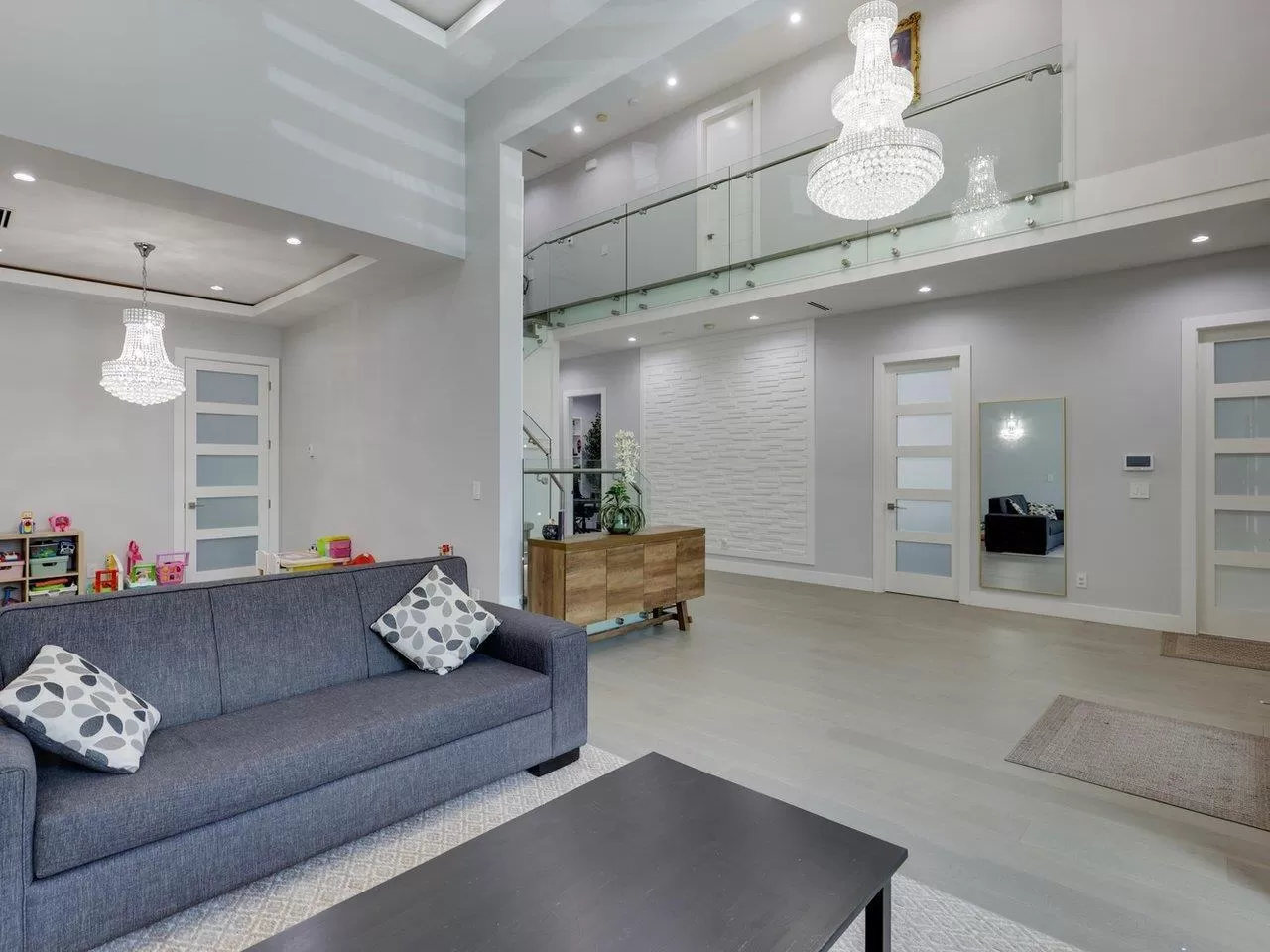 Breathtaking home in South Surrey's King George Corridor! This nearly 6,200+ sq ft, 8-bed, 8.5 bath masterpiece sits on a 9,700+ sq ft lot just minutes from White Rock Beach, top schools, and shopping. Features include a chef's kitchen with JennAir & Samsung appliances, wok kitchen, main-floor guest suite, office, and formal living/dining. Upstairs offers 4 bedrooms with ensuite and 1 bed with Ensuite on Main Level which is separate from the home office. The basement boasts a home theatre, wet bar, steam shower, rec room, and a 2-bed legal suite and a bonus separate 1 bed suite. Extras: radiant heat, A/C, smart home system, EV plug, and room for a backyard pool. Luxury, comfort, and income potential in one exceptional home! (id:27476)