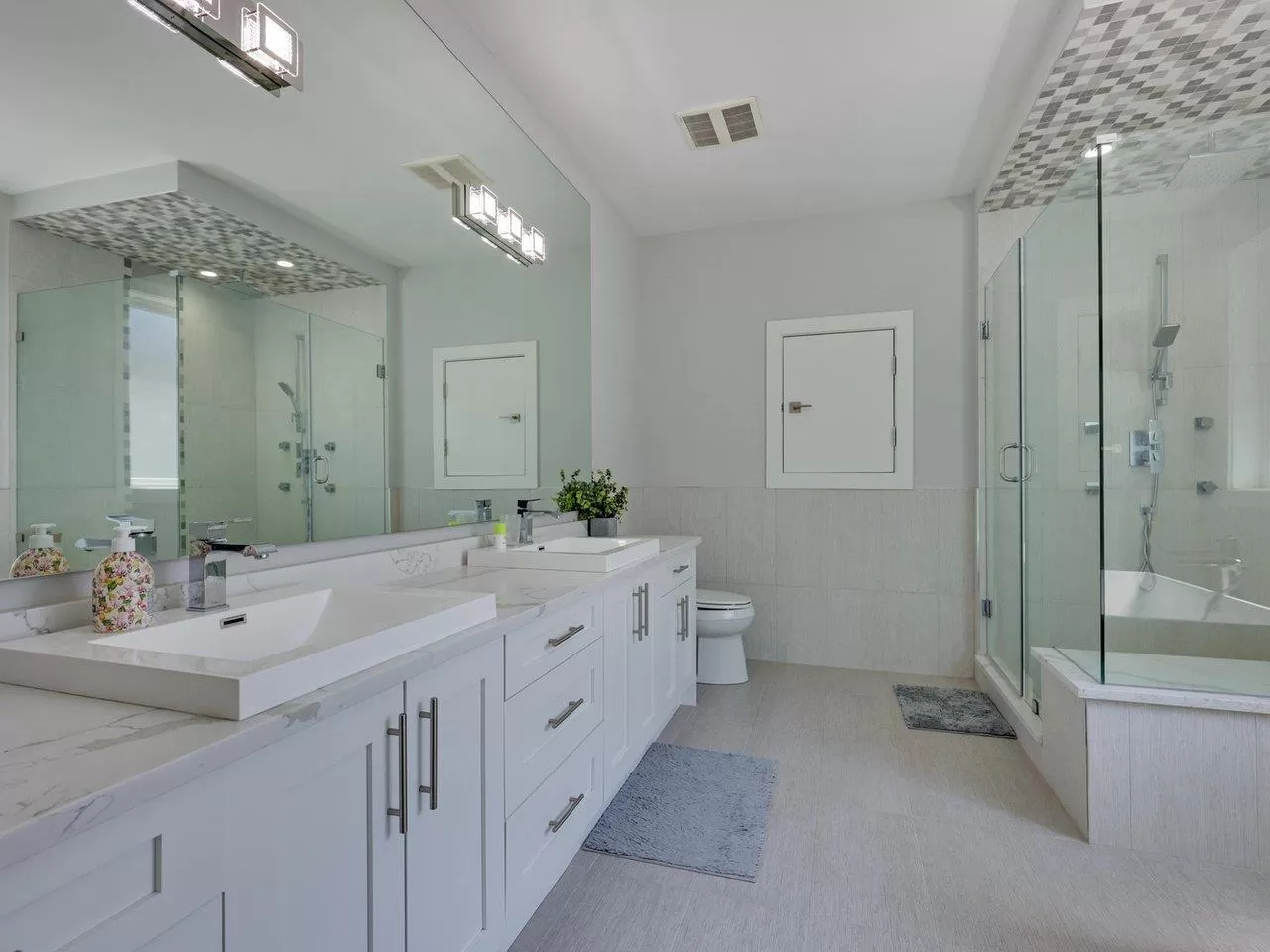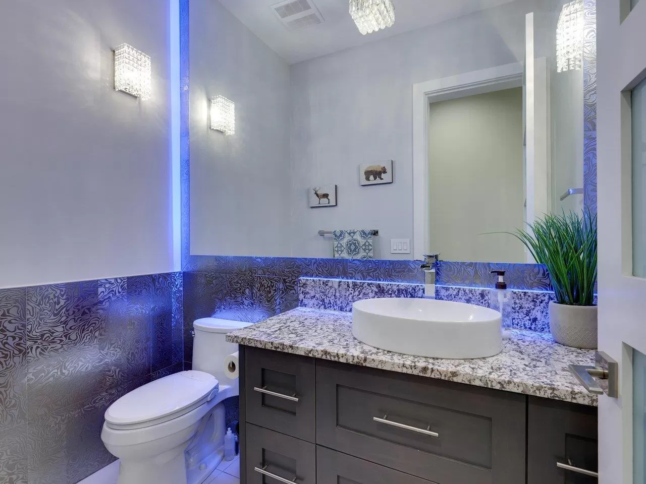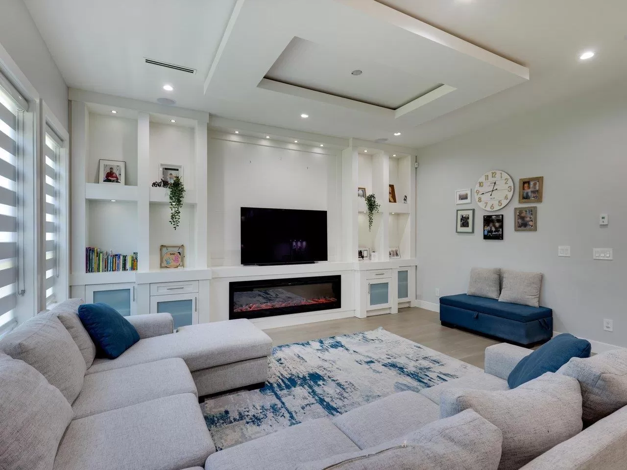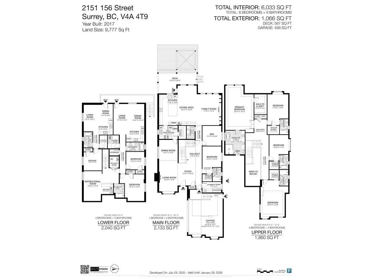Breathtaking home in South Surrey's King George Corridor! This nearly 6,200+ sq ft, 8-bed, 8.5 bath masterpiece sits on a 9,700+ sq ft lot just minutes from White Rock Beach, top schools, and shopping. Features include a chef's kitchen with JennAir & Samsung appliances, wok kitchen, main-floor guest suite, office, and formal living/dining. Upstairs offers 4 bedrooms with ensuite and 1 bed with Ensuite on Main Level which is separate from the home office. The basement boasts a home theatre, wet bar, steam shower, rec room, and a 2-bed legal suite and a bonus separate 1 bed suite. Extras: radiant heat, A/C, smart home system, EV plug, and room for a backyard pool. Luxury, comfort, and income potential in one exceptional home! (id:27476)