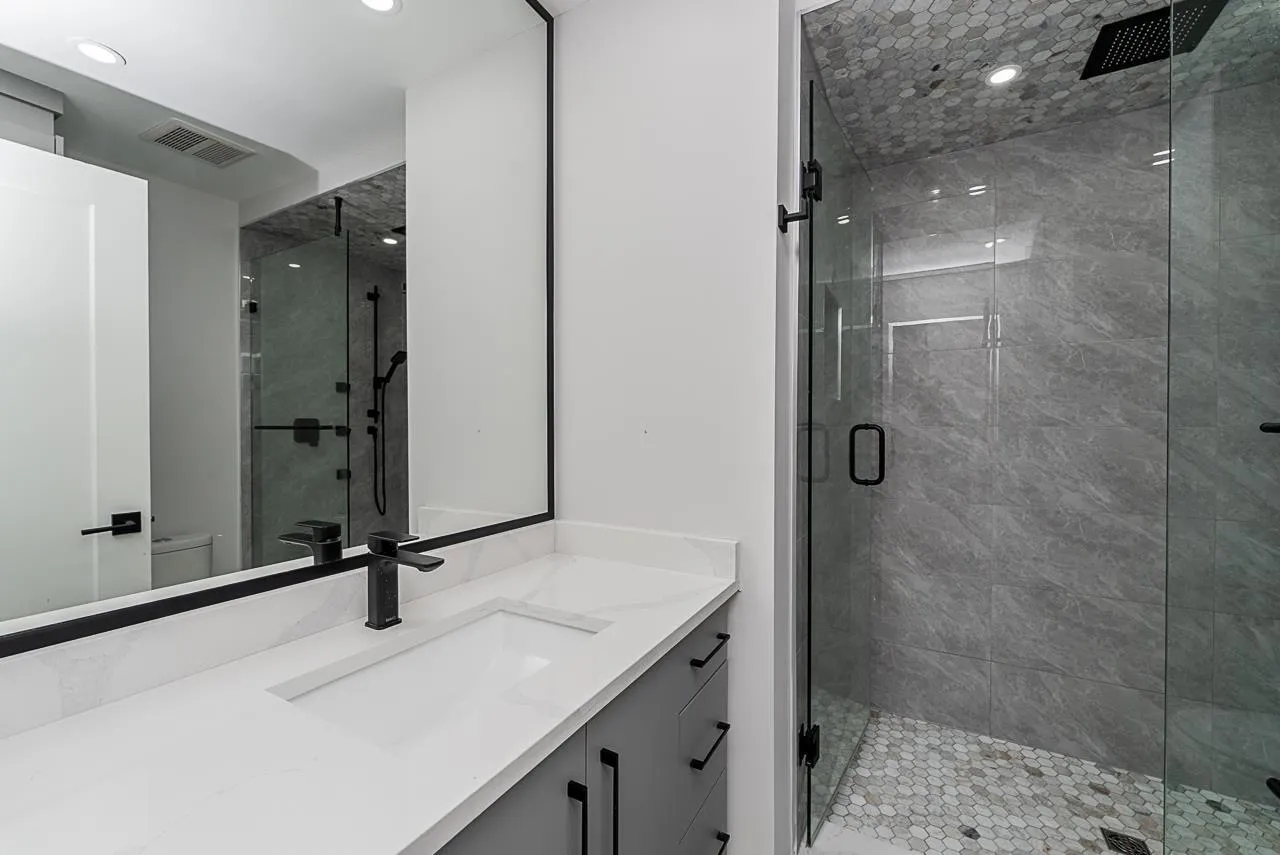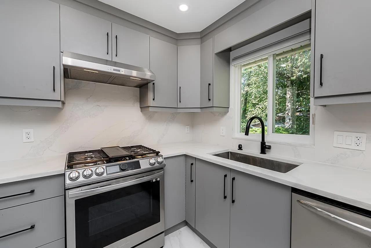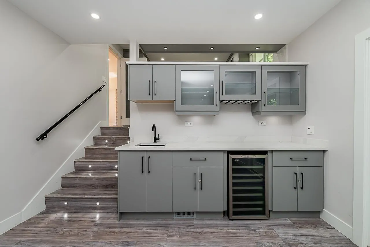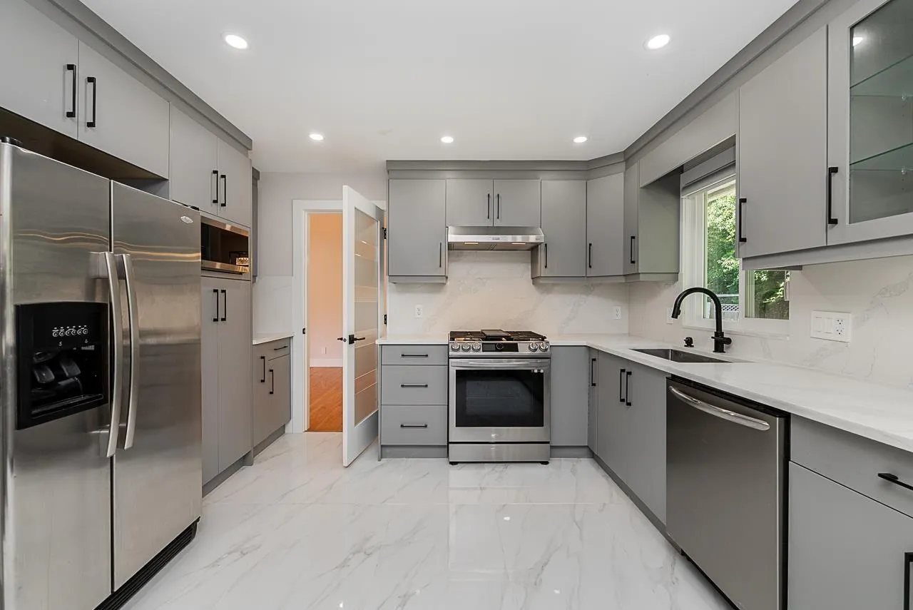 A fully renovated 4-level split home tucked away in a quiet cul-de-sac in the prestigious Panorama neighbourhood. Walking distance to Panorama Ridge Secondary, Panorama Park Elementary, transit, shopping, parks and more. This 2,555sqft 5 bed, 3 bath home sits on a spacious 7753 SF lot. Featuring a stunning new kitchen with a massive built-in island overlooking the family room, a bright living room with a custom coffee bar, spacious rooms throughout, a main floor den, and fully renovated washrooms with designer tile and custom showers. Enjoy solid hardwood on the main, exterior cameras for extra security, energy efficient furnace with AIR CONDITIONING, hot water tank, plus a walk-out yard with patio gas line. Ample parking with 2-car garage and 4 driveway spots. (id:27476)