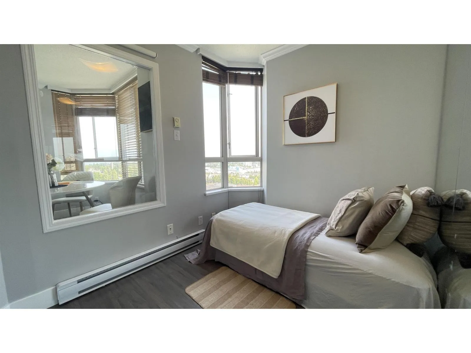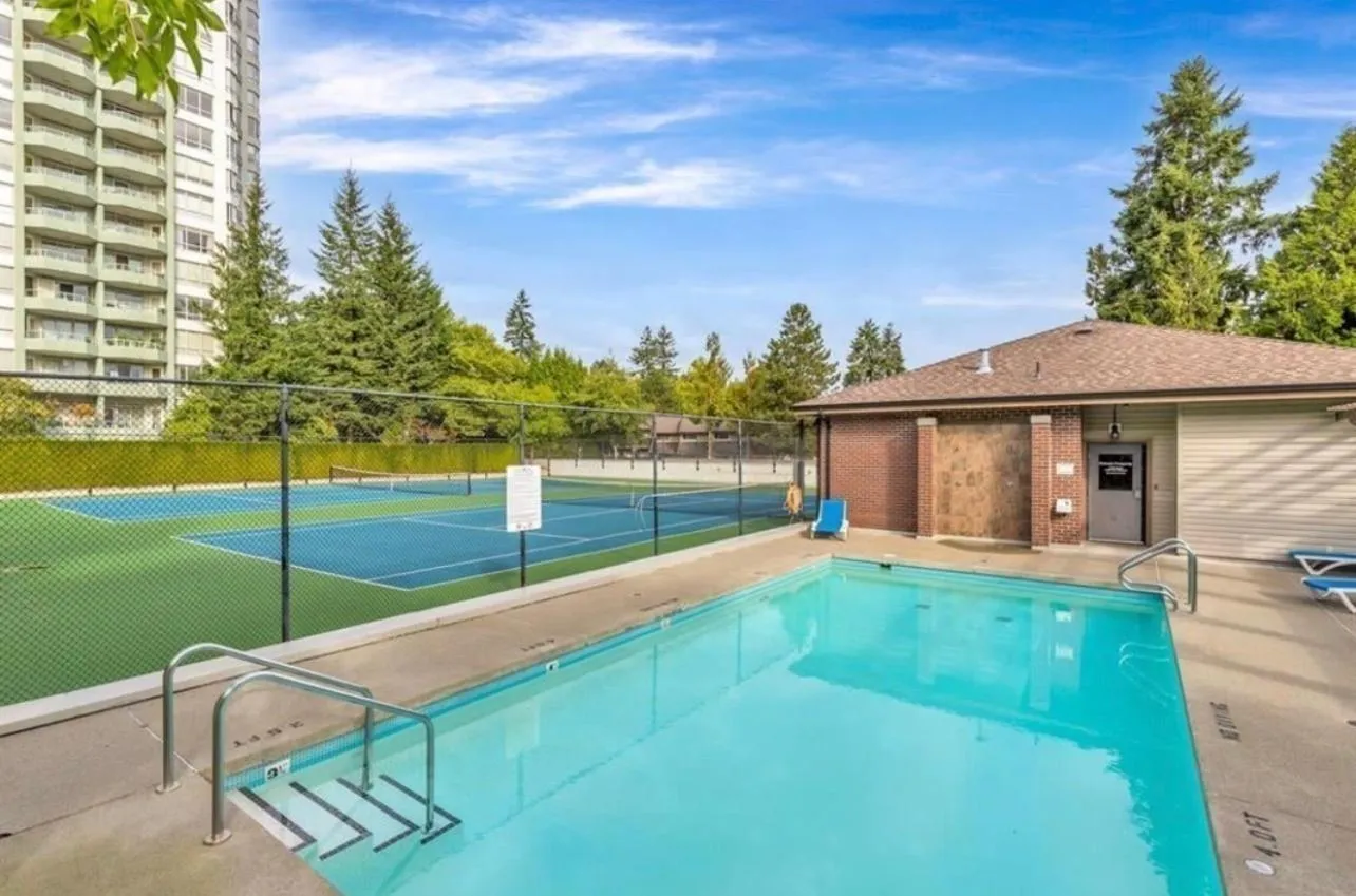THERE IS NOTHING QUITE LIKE THIS UNIT! 2 BD (second bedroom doesn't have a closet) w/2 full bath. This CONCRETE CORNER unit has unobstructed mountain & city views to the NE which is great to watch from the large balcony. Unit is very bright, with an abundance of large floor-to-ceiling windows. Recent renovations include new flooring, paint, and moulding, unit also features a gas fireplace. Well-managed complex w/ resort like amenities, two swimming pools, two gyms, tennis courts, hot tub, sauna, and party rooms. 1 Storage locker & 1 Parking Stall & there's plenty of visitor parking available. Walk to Guildford mall, all levels of school, Superstore, T&T, etc. This well-managed building has a Contingency Reserve Fund of over $2 MILLION! Best Value! (id:27476)