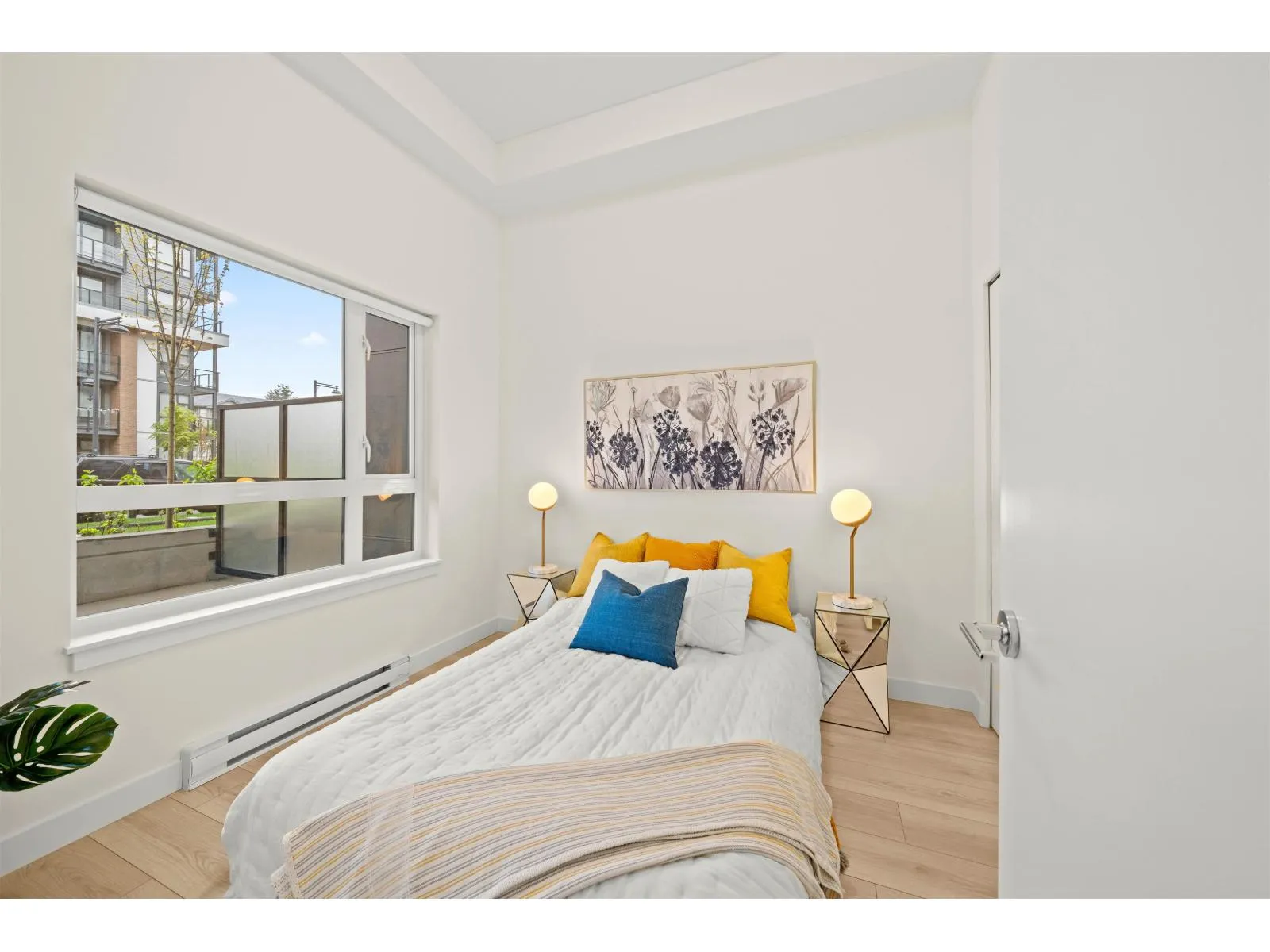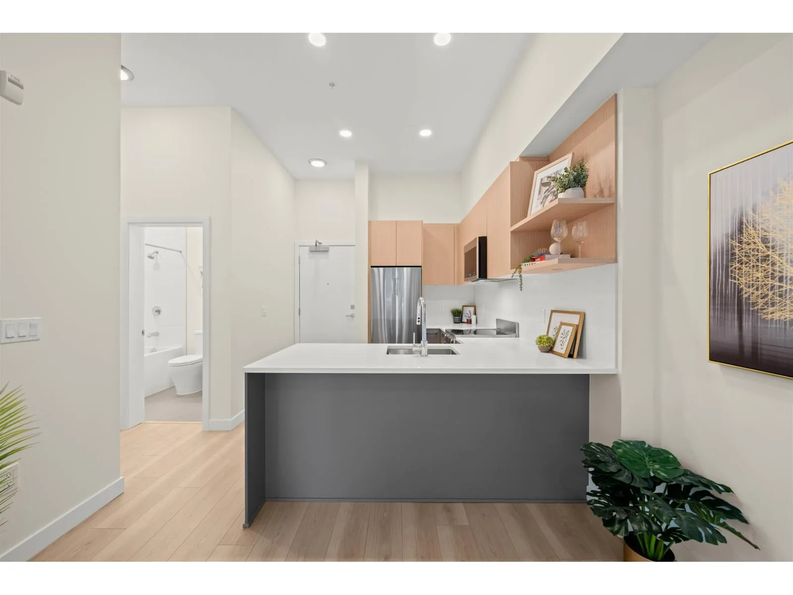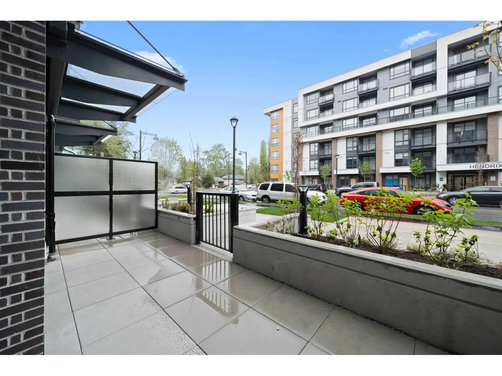Virtually brand new! Phenomenal garden level home with SOARING high 10'7ft ceilings, a HUGE 170 sq.ft. private gated patio with additional SEPERATE entrance! Open concept 1 bedroom unit features an extremely efficient floorplan and high-end finishes throughout including beautiful quartz counter tops, engineered wide plan flooring, Energy Recovery Ventilation (ERV) for year round comfort/ air quality and MUCH, MUCH MORE! Q5 built by reputable developer Tien Sher features resort like amenities including a FULLY equipped gym, business centre, games room, shared garden space entertainment lounge, outdoor bbq area children's play zone and more. Centrally located close to shopping, amenities and steps to Gateway Skytrain, SFU. 1 parking and 1 storage. (id:27476)