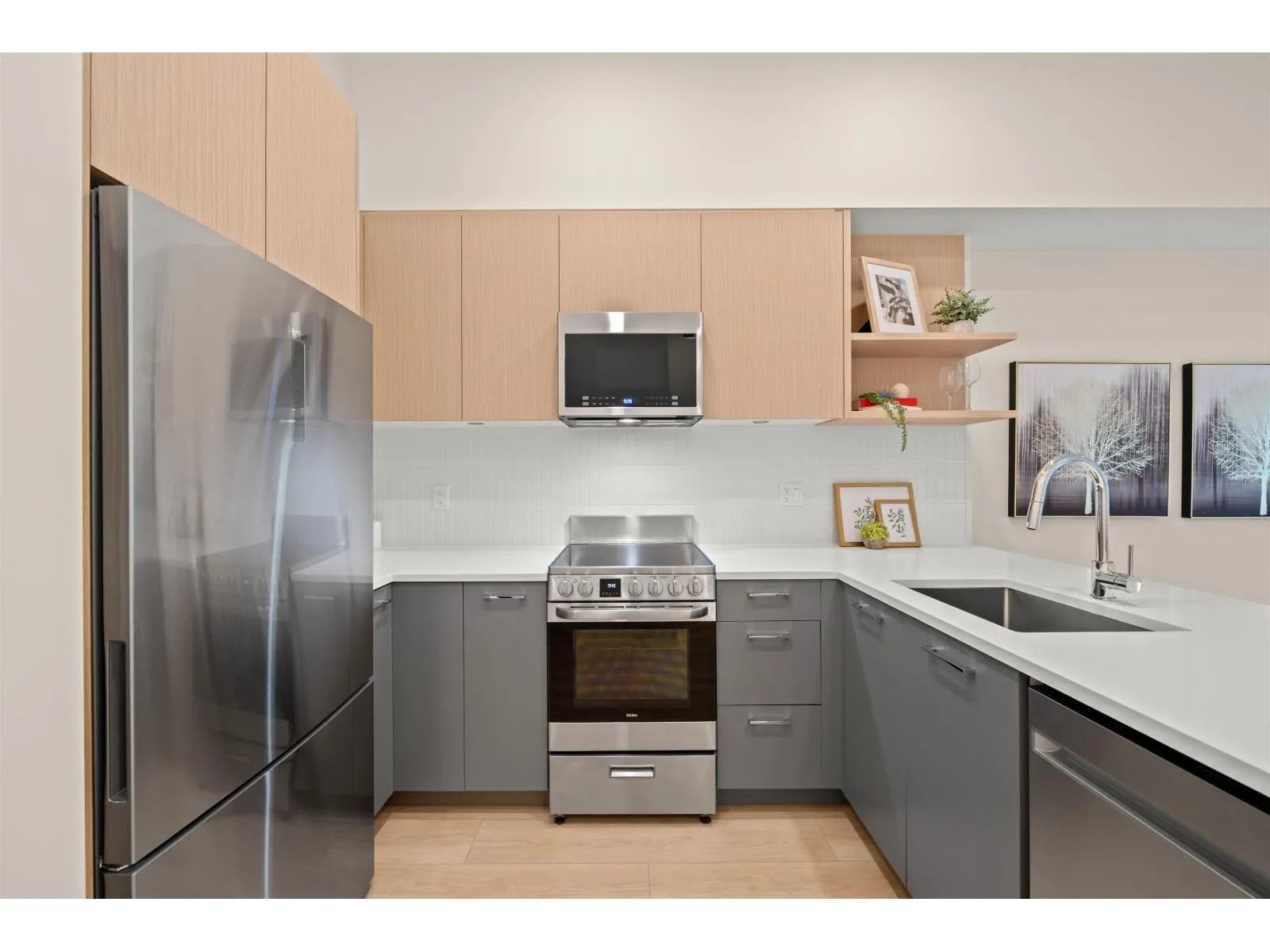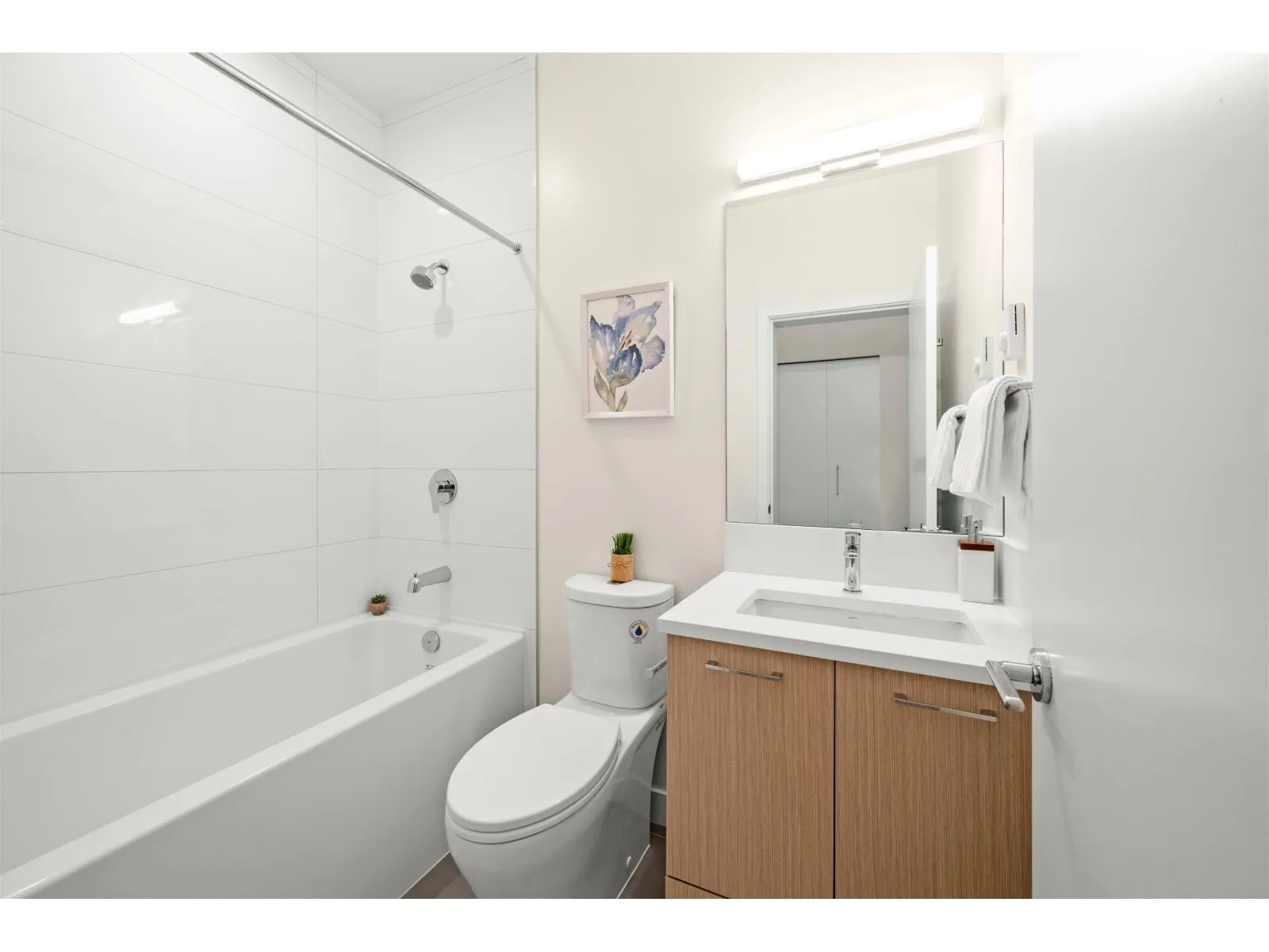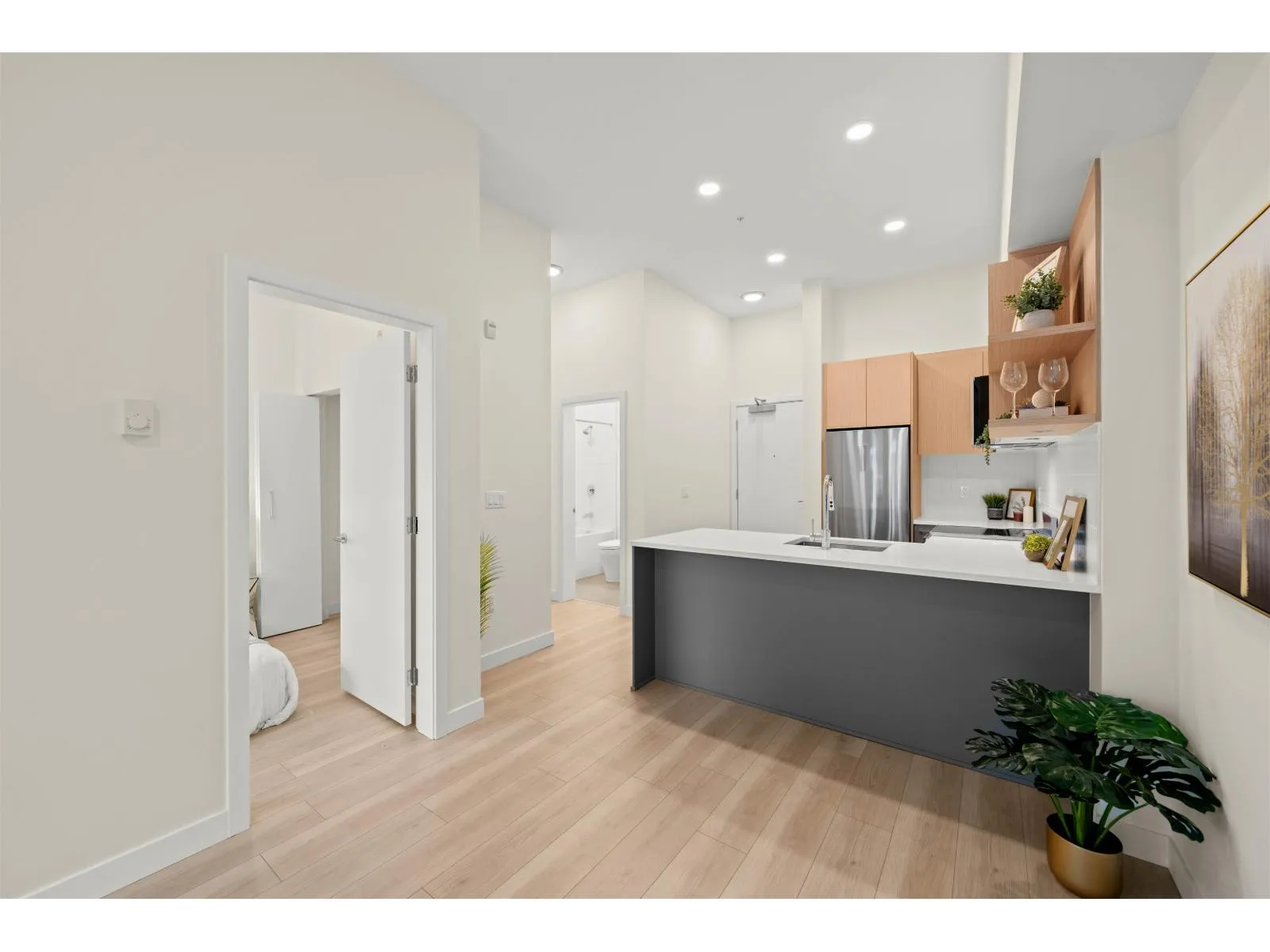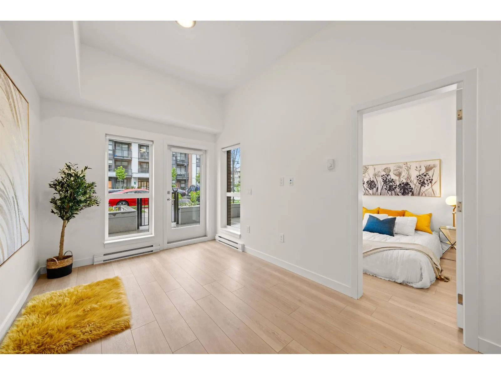 Virtually brand new! Phenomenal garden level home with SOARING high 10'7ft ceilings, a HUGE 170 sq.ft. private gated patio with additional SEPERATE entrance! Open concept 1 bedroom unit features an extremely efficient floorplan and high-end finishes throughout including beautiful quartz counter tops, engineered wide plan flooring, Energy Recovery Ventilation (ERV) for year round comfort/ air quality and MUCH, MUCH MORE! Q5 built by reputable developer Tien Sher features resort like amenities including a FULLY equipped gym, business centre, games room, shared garden space entertainment lounge, outdoor bbq area children's play zone and more. Centrally located close to shopping, amenities and steps to Gateway Skytrain, SFU. 1 parking and 1 storage. (id:27476)
