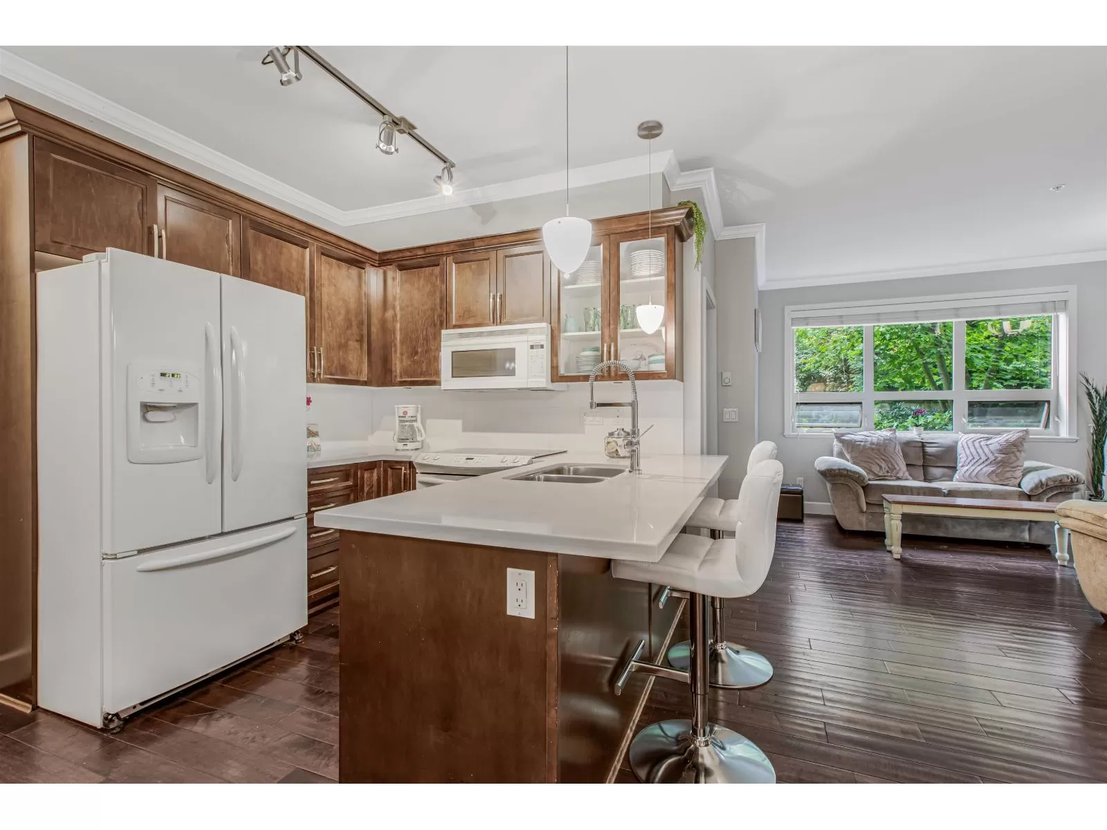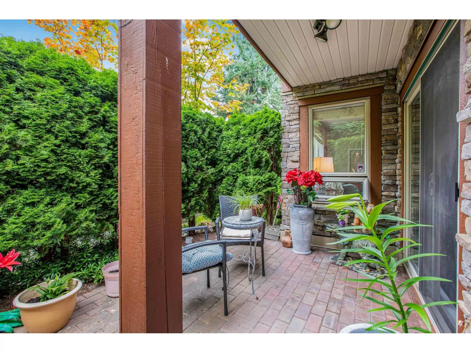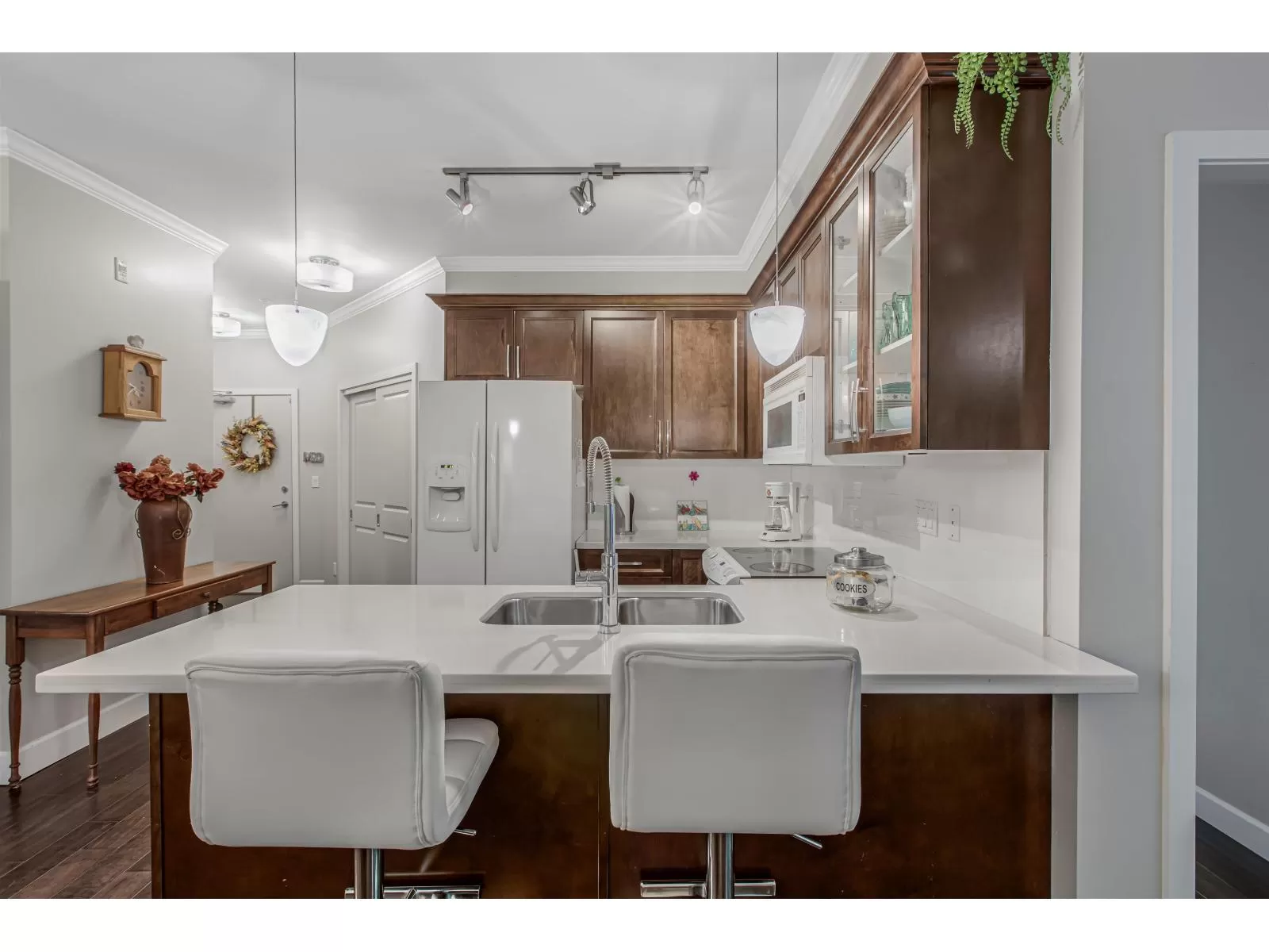 PRIME LOCATION in the heart of White Rock/South Surrey! This bright, contemporary, ground-level unit boasts 2 spacious bedrooms, each with their own en-suite and walk-in closet and a sizable south facing patio with a tranquil private garden oasis. An ideal corner-unit floor plan provides for bright open concept living that is made for entertaining, complemented by an abundance of windows, 9 ft ceilings with crown moulding and rich hardwood floors throughout. A rooftop garden deck & community/amenity room compliment your living enjoyment and lifestyle. All this just steps to Bakerview Park, Starbucks, Shopping, the library and transit. Book your private showing and make all this yours! (id:27476)
