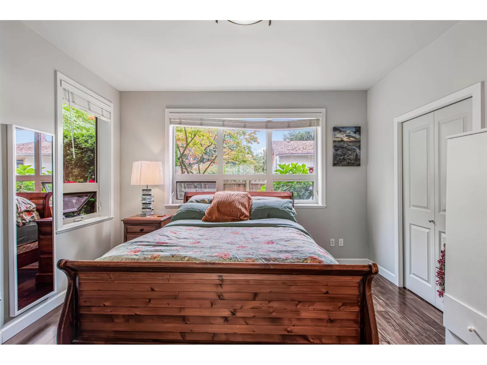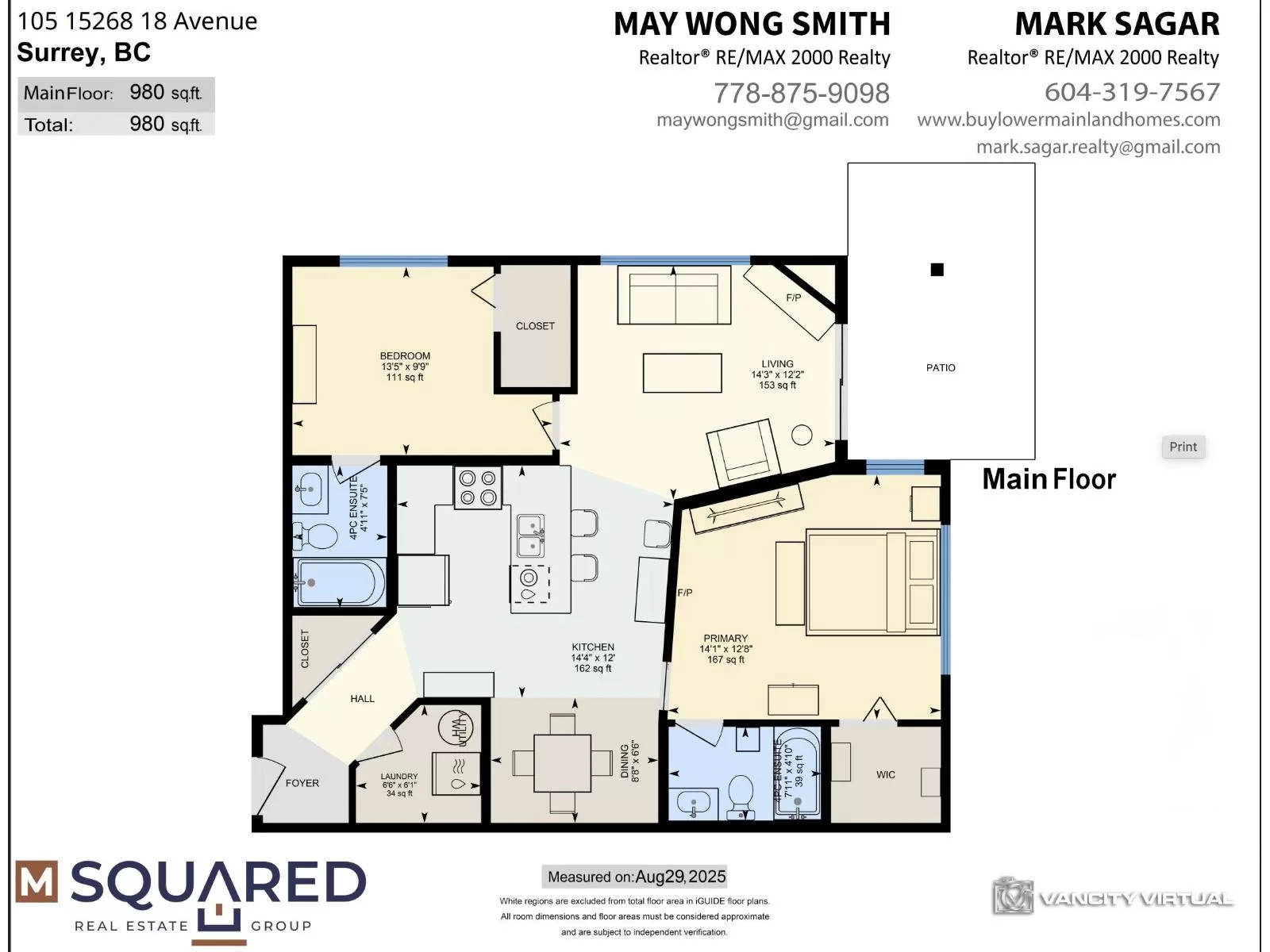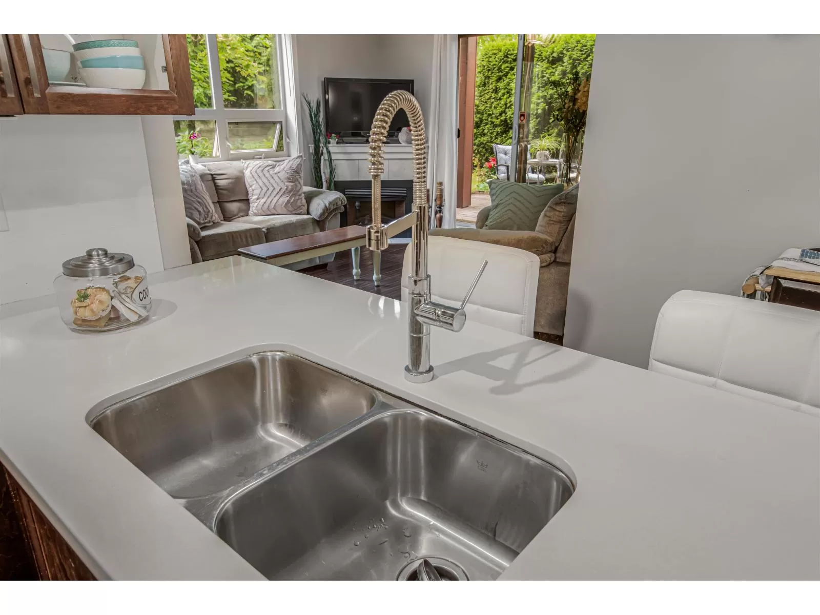 PRIME LOCATION in the heart of White Rock/South Surrey! This bright, contemporary, ground-level unit boasts 2 spacious bedrooms, each with their own en-suite and walk-in closet and a sizable south facing patio with a tranquil private garden oasis. An ideal corner-unit floor plan provides for bright open concept living that is made for entertaining, complemented by an abundance of windows, 9 ft ceilings with crown moulding and rich hardwood floors throughout. A rooftop garden deck & community/amenity room compliment your living enjoyment and lifestyle. All this just steps to Bakerview Park, Starbucks, Shopping, the library and transit. Book your private showing and make all this yours! (id:27476)