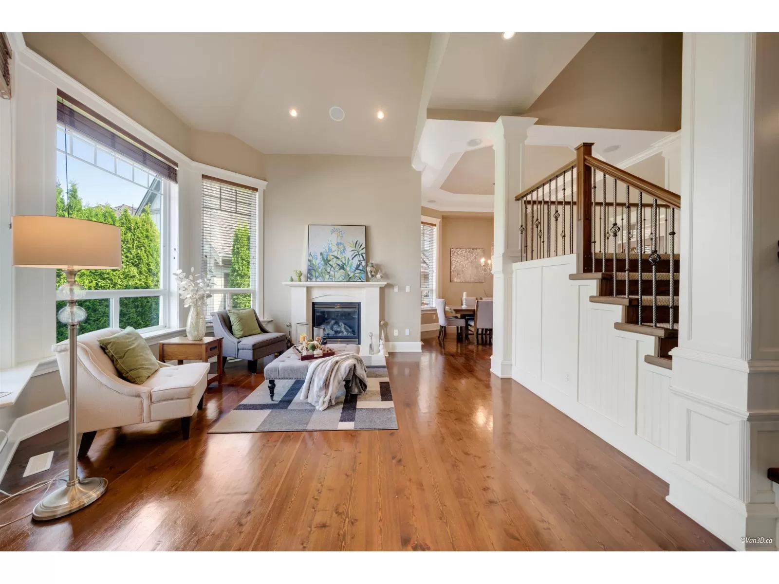 Nestled in a quiet cul-de-sac, this stunning home sits on a massive 11,717sqft lot with a beautifully landscaped, south-facing backyard. Quality built with an exceptional layout, it boasts 10-ft ceilings on the main floor and 14-ft vaulted ceilings in the living room, complemented by classic 7-inch wide plank flooring. The gourmet kitchen features granite countertops, high-end stainless steel appliances, and a built-in pantry. Offering two master bedrooms-one conveniently located on the main floor-all upstairs bedrooms come complete with walk-in closets and ensuites. Enjoy premium amenities including a games room, media room, gym, home sound system, and full house A/C. Located in a highly desirable South Surrey neighborhood, close to Southridge private school, shopping, recreation (id:27476)