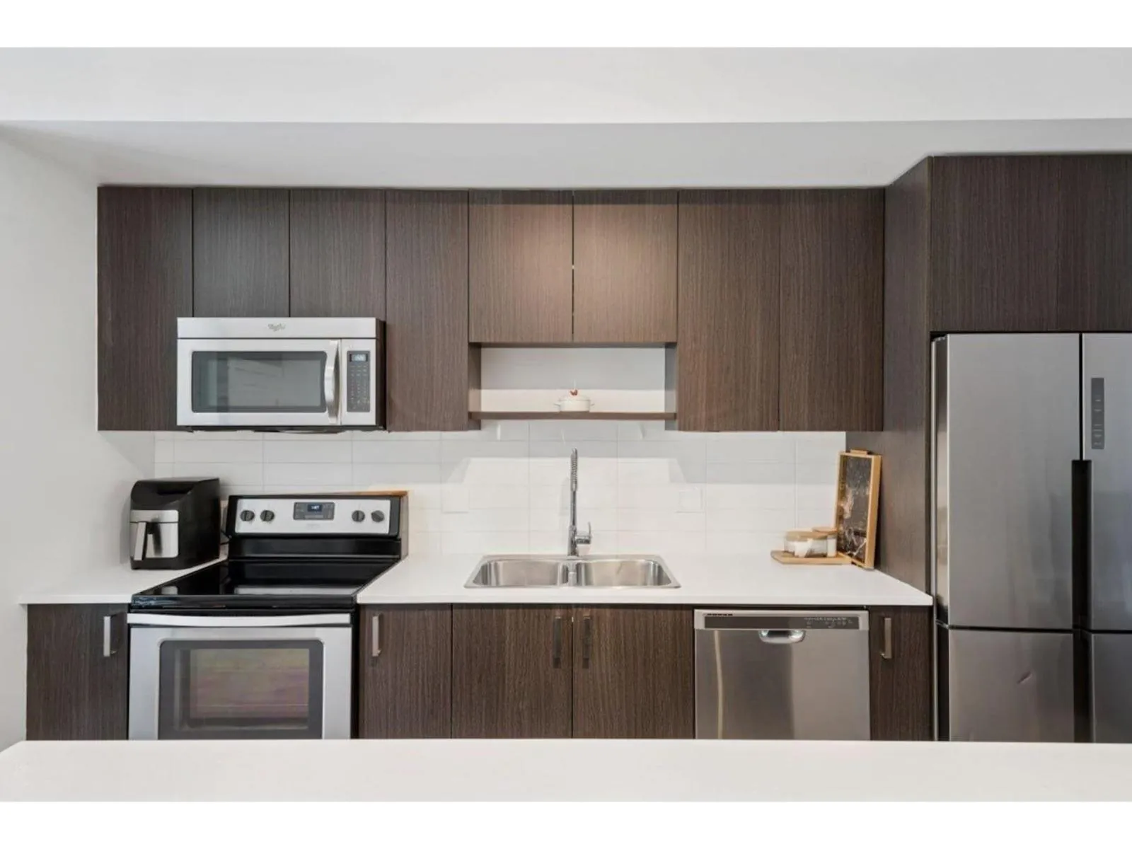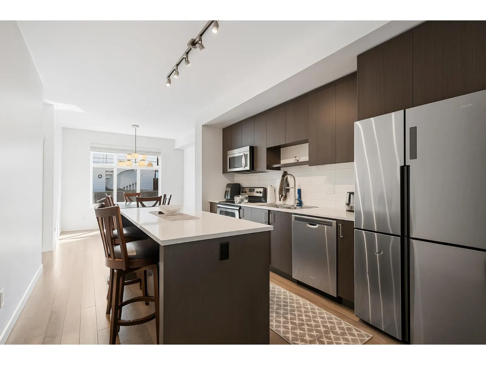 Welcome to this beautifully maintained townhome by Dawson & Sawyer, a trusted builder with 50+ years of expertise. Prime Guildford location-minutes to Guildford Town Centre, library, aquatic centre, transit & Hwy 1. Features a tandem 2-car garage with storage & potential to add another bedroom / office which could potentially increase the value & usuable square footage. Bright main floor w/ open layout, quartz kitchen, tiled blacksplace, s/s appliances including new Haier fridge w/ french doors, & a powder room on the main floor. Upstairs offers 3 bedrooms, primary with a walk-in closet & double vanity, plus laundry. Enjoy a private tree-lined backyard & private upper patio-perfect for relaxing or entertaining. Don't miss this fantastic opportunity! Book your private appointment today. (id:27476)