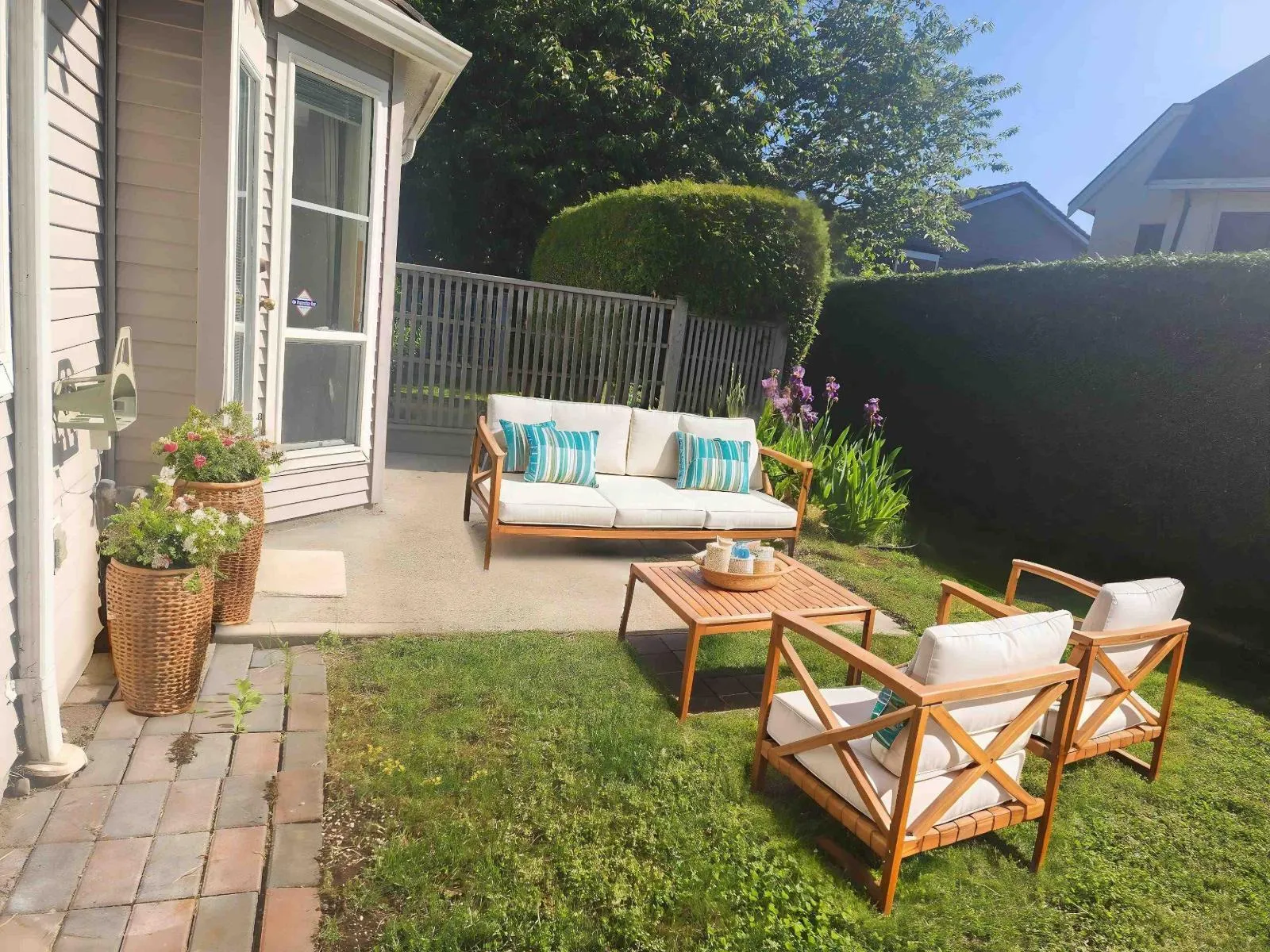 Camellia Wynde Rancher Townhome: 1048 sq ft.,2 bedroom, 2 bath, single garage with access to above walking attic storage, plus 1 extra parking spot in front of unit (strata owned). Large great room (24 x 12) and 2nd bedroom both have new carpet and paint. Large master bedroom (16 x 11) has 3 closets and a 4 piece ensuite bathroom. The hot water tank is 2 years old, while dishwasher is 1 year old. The garage door motor was replaced in 2017. Kitchen and both bathrooms were remodeled in 2011 including the appliances and plumbing,(toilets are wheelchair height and new sinks and faucets.) 2 pets allowed, (2 dogs no size restrictions) or (2 cats) or (1 dog and 1 Cat) 2 caged birds. Home staged with virtual AI photos (id:27476)