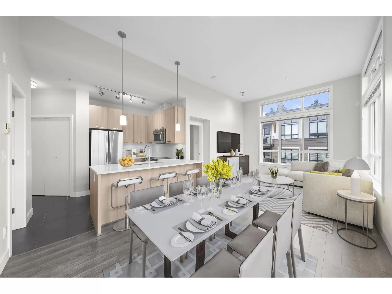 Welcome to G3 Residences in the heart of Guildford! This top-floor corner unit features 2 beds, 2 baths, and a bright open layout with 11 ft ceilings and large windows. The modern kitchen includes quartz countertops and stainless steel appliances. Comes with 2 oversized side-by-side parking stalls and 1 large storage locker. Just steps to Guildford Mall, Rec Centre, parks, schools, and transit, with easy access to Highway 1. Rentals and pets allowed-perfect for first-time buyers or investors. Amenities include a gym, lounge, games room, and more. Don't miss out-book your showing today! (id:27476)