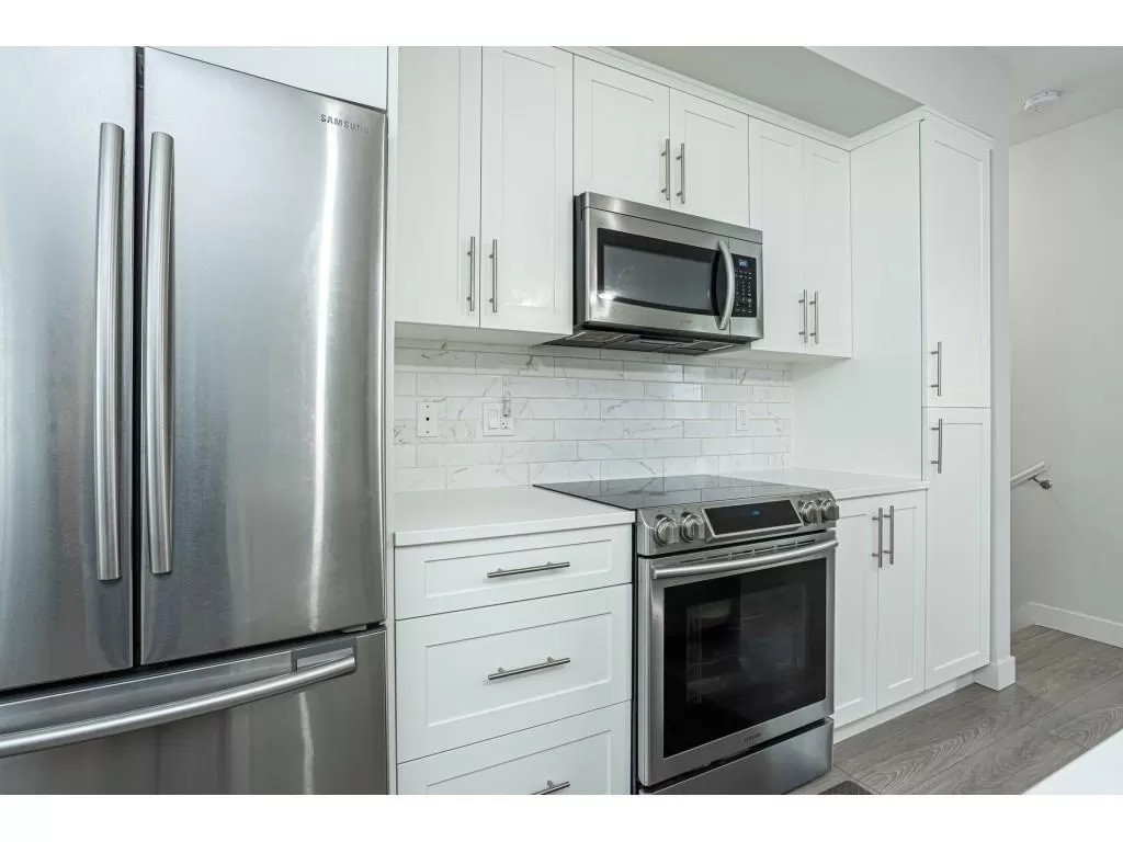 Welcome to Blackberry Walk 3-a contemporary craftsman-style corner unit townhome with 3 bedrooms, 2.5 baths, massive backyard & a side-by-side oversized double garage. This stylish home features an open-concept layout with Samsung stainless steel appliances, quartz countertops, 9 ft ceilings & large windows that fill the space with natural light. The primary bedroom boasts a vaulted ceiling, walk-in closet, and a spa-inspired ensuite with double sinks. Enjoy outdoor living with a private deck with mountain views, lower patio, and an over-extended fenced backyard to enjoy those summer days. Steps from schools, parks, YMCA, Bell Performing Arts Centre & transit. Easy to show with a day's notice, call to book a showing today! Priced approx. $100K under below assessment! (id:27476)