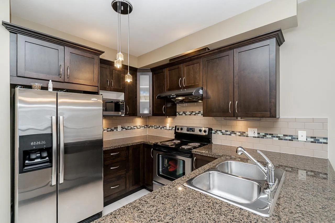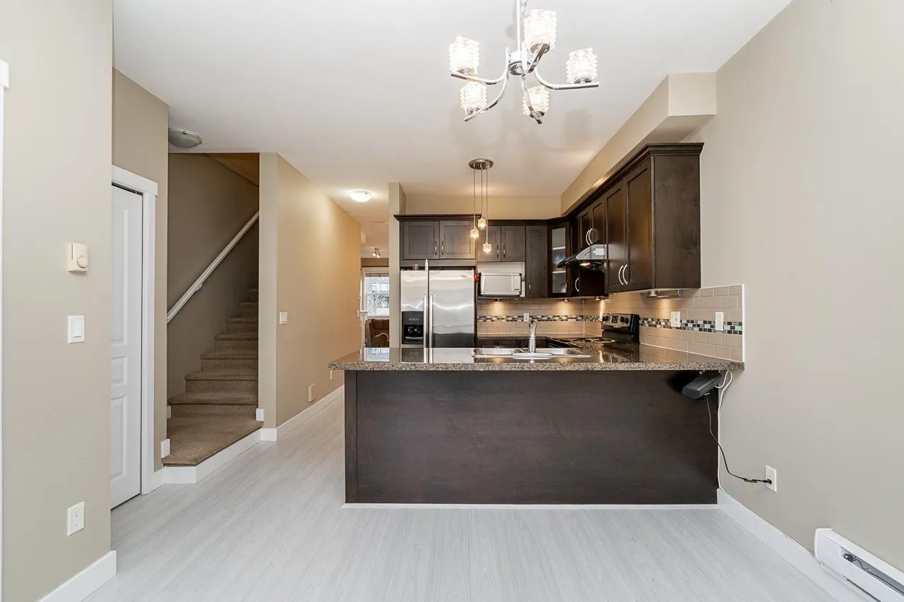 Exceptional Thome w/ 2 Masters bedroom w/ own full baths, Flex room w/ it's own powder room w/ windows and access to yard, perfect as a guest room or den/office. This spacious 1,537 sq ft home offers an open-concept layout w/ a beautiful kitchen showcasing maple cabinets, granite countertops, & stainless steel appliances, overlooking the family room w/ balcony access. The elegant living & dining areas include a cozy fireplace, 9' ceilings, & brand new laminate flooring. Upstairs features 2 generous bedrooms and 2 full bathrooms. Enjoy a private fenced backyard, & quality finishes throughout. Centrally located in Fleetwood, close to schools, parks, shopping, transit, & walking distance to the future SkyTrain station. (id:27476)