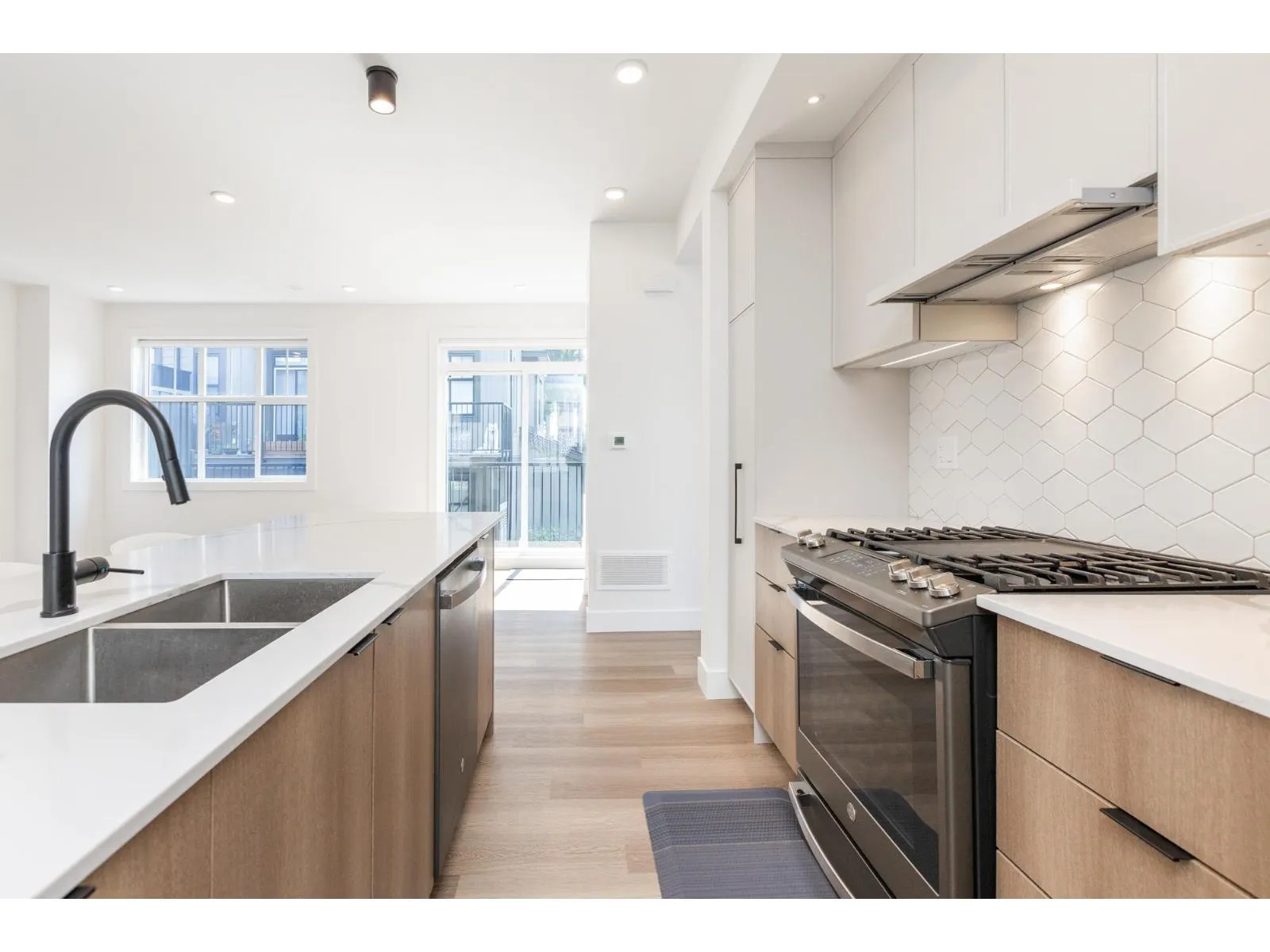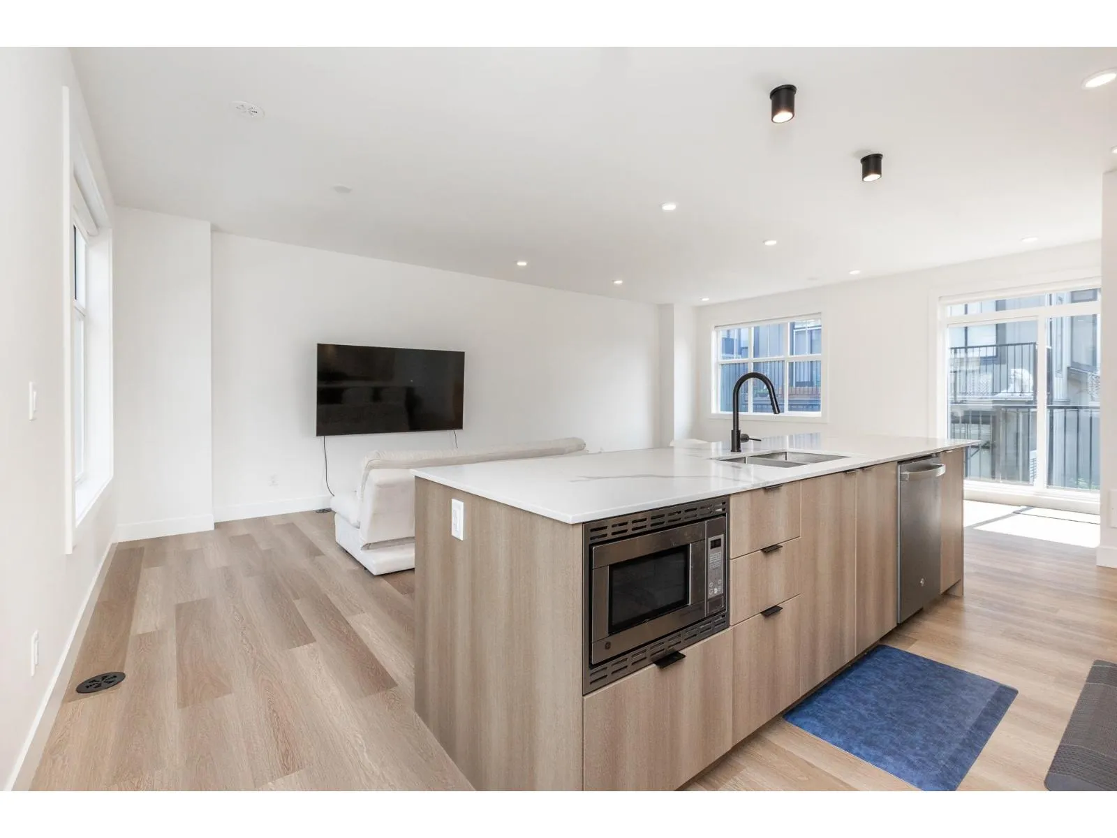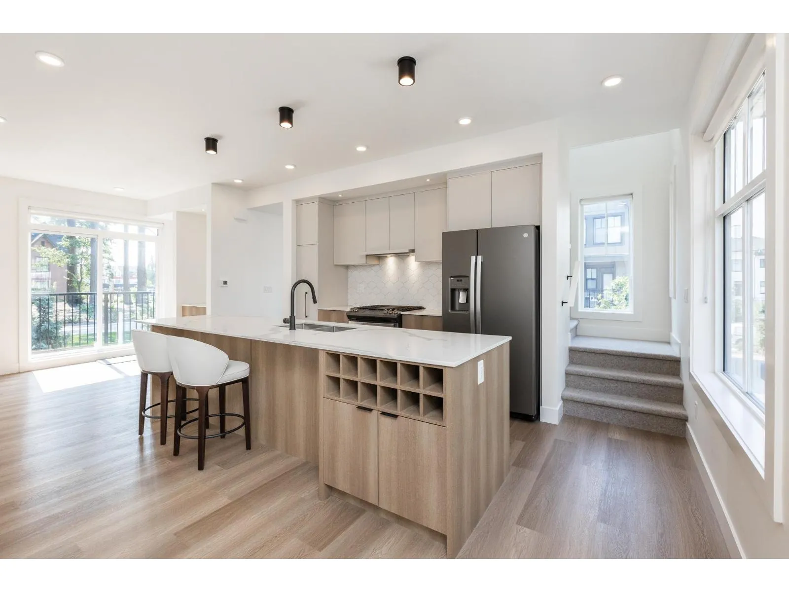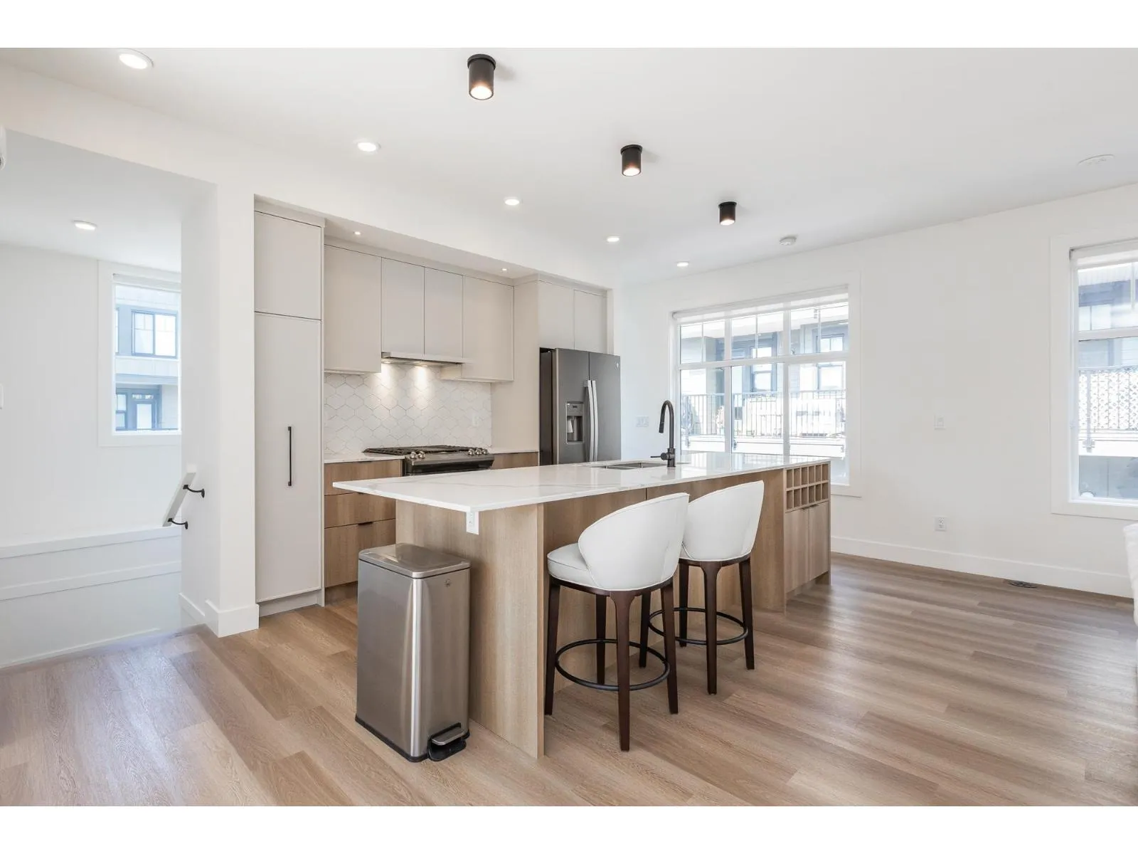 "The Loop" - prime 1-year-old townhome in a sought-after South Surrey community. Bright, functional layout ideal for families, close to schools, shopping, and transit. The lower-level 4th bedroom doubles as a private office or kids' playroom. Modern two-tone kitchen with large island, bar seating, designer lighting, and walk-out deck for summer evenings. Main floor laundry, spacious living area with electric fireplace, laminate throughout main and cozy carpet upstairs. Private primary suite with walk-in closet and spa-inspired ensuite featuring a deep tub and oversized shower. A must-see home. (id:27476)