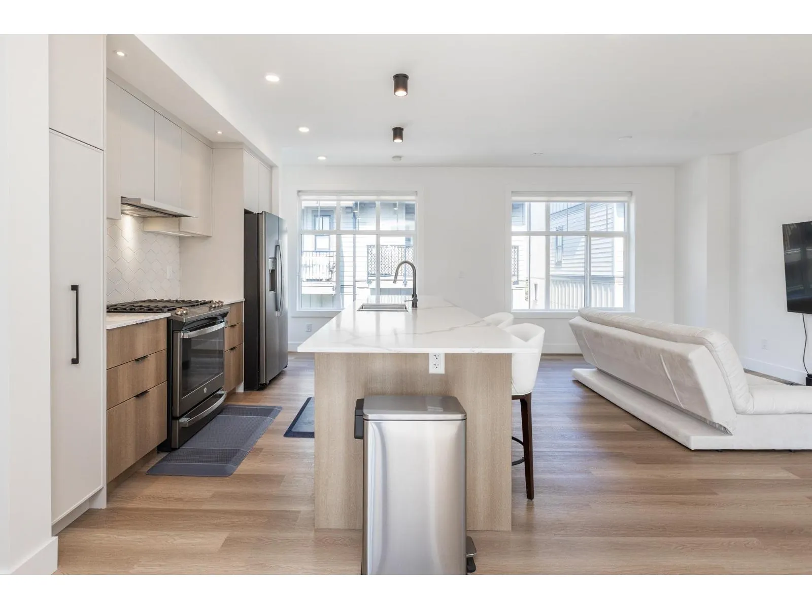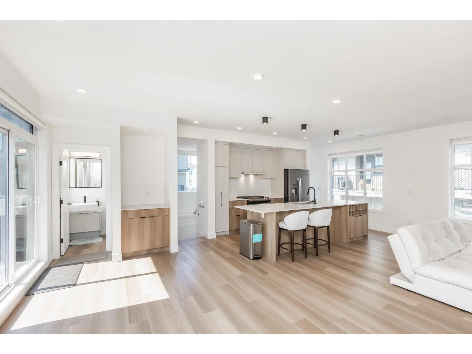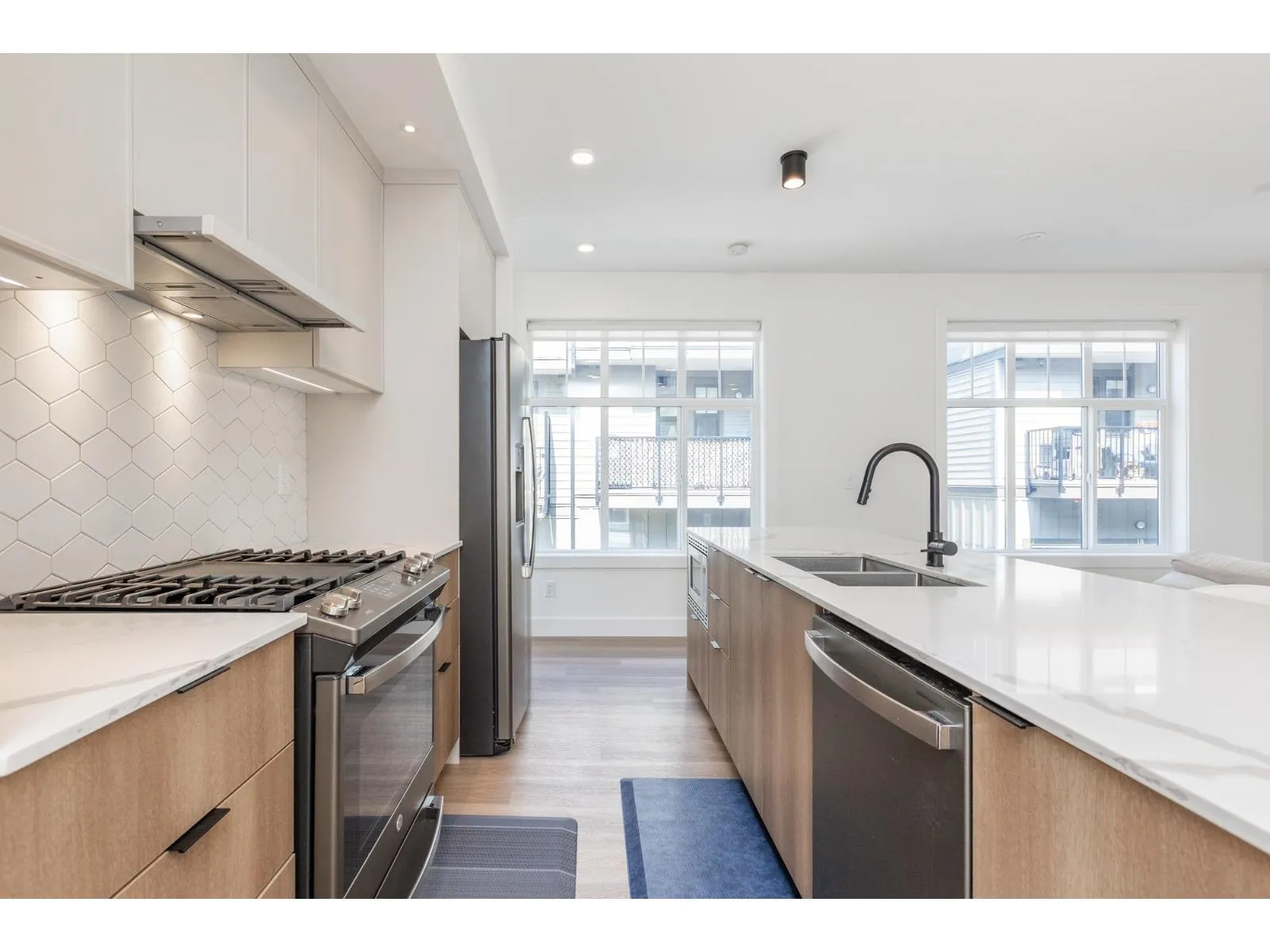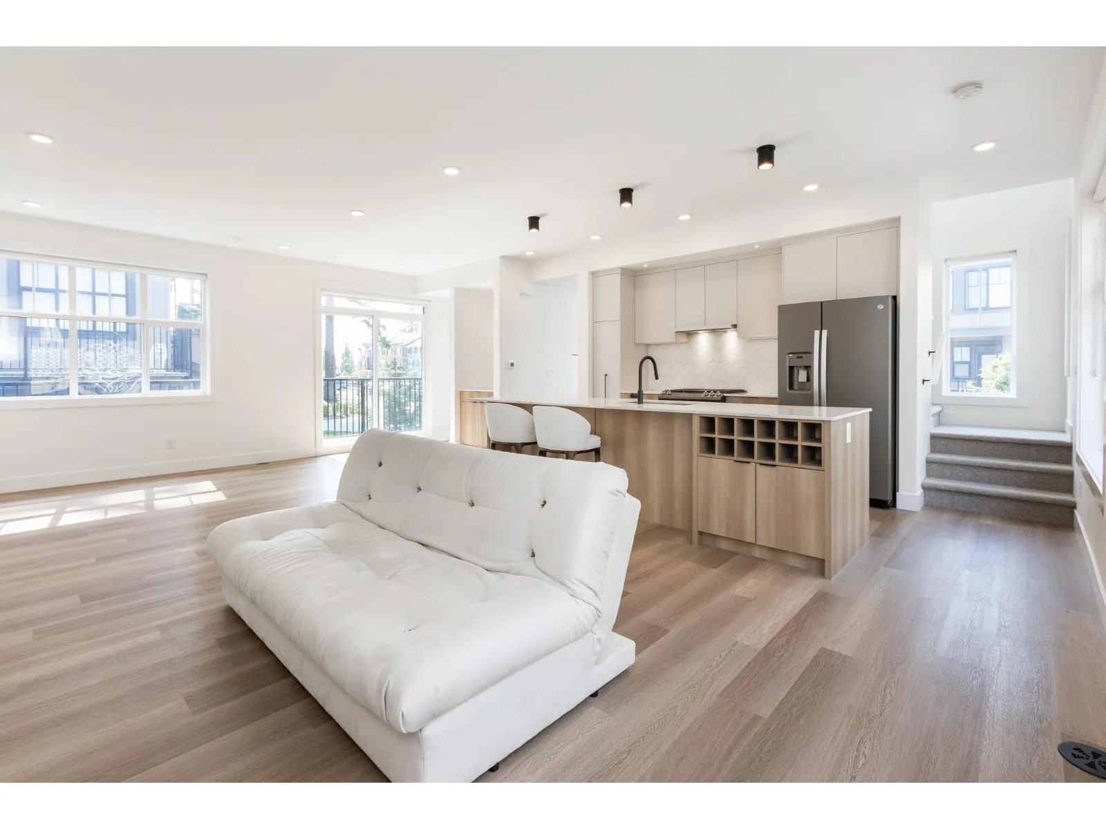 "The Loop" - prime 1-year-old townhome in a sought-after South Surrey community. Bright, functional layout ideal for families, close to schools, shopping, and transit. The lower-level 4th bedroom doubles as a private office or kids' playroom. Modern two-tone kitchen with large island, bar seating, designer lighting, and walk-out deck for summer evenings. Main floor laundry, spacious living area with electric fireplace, laminate throughout main and cozy carpet upstairs. Private primary suite with walk-in closet and spa-inspired ensuite featuring a deep tub and oversized shower. A must-see home. (id:27476)