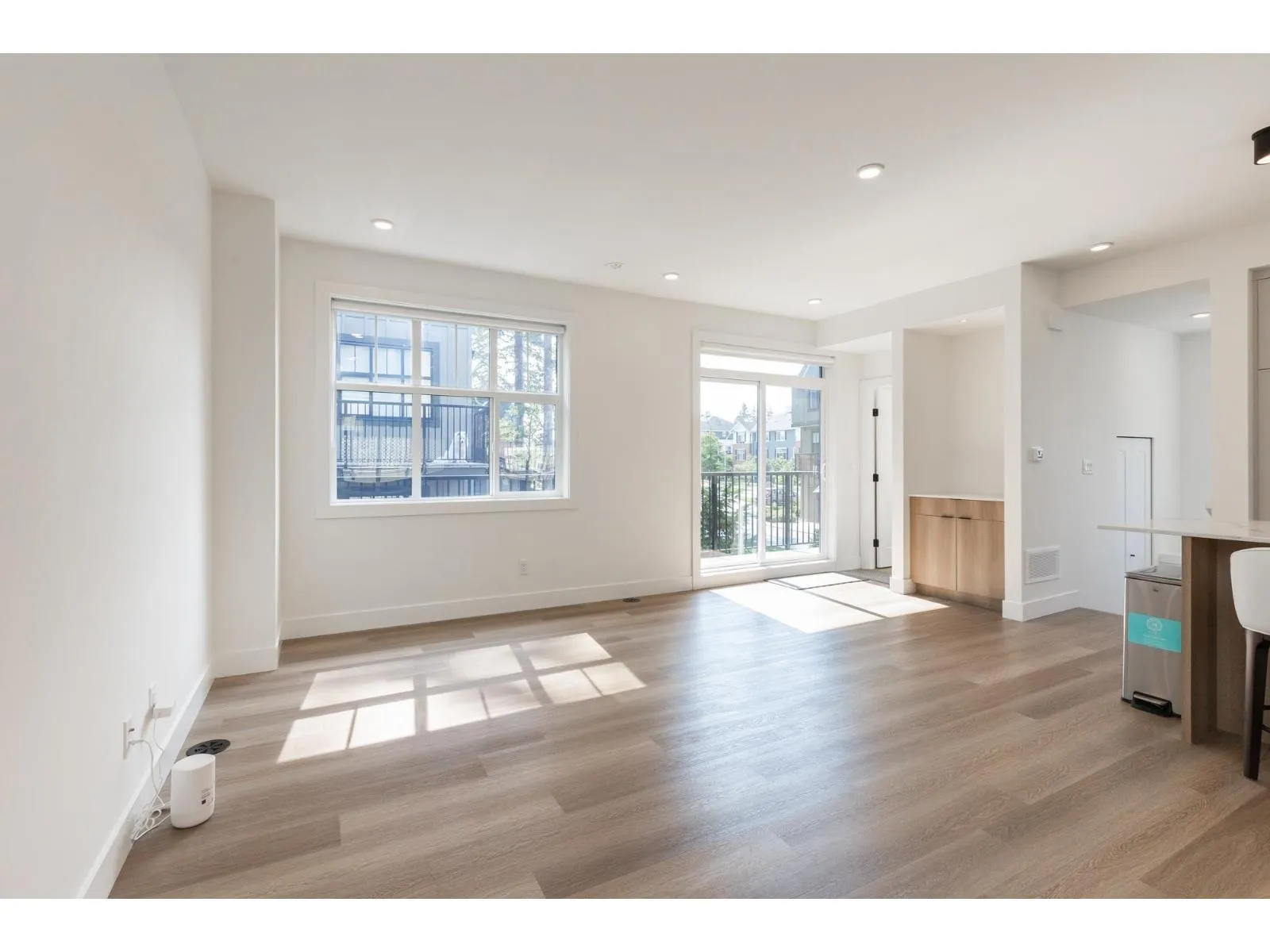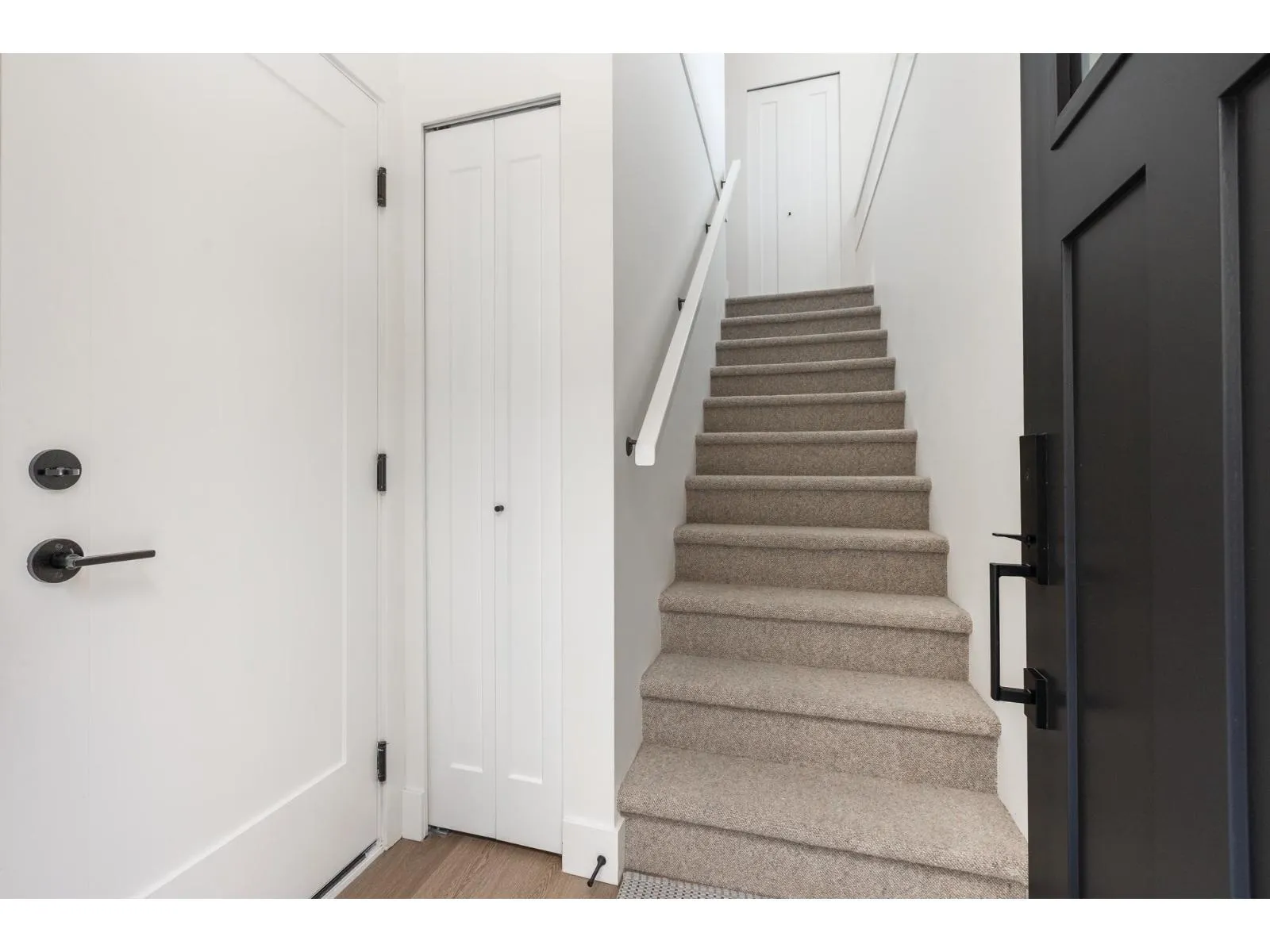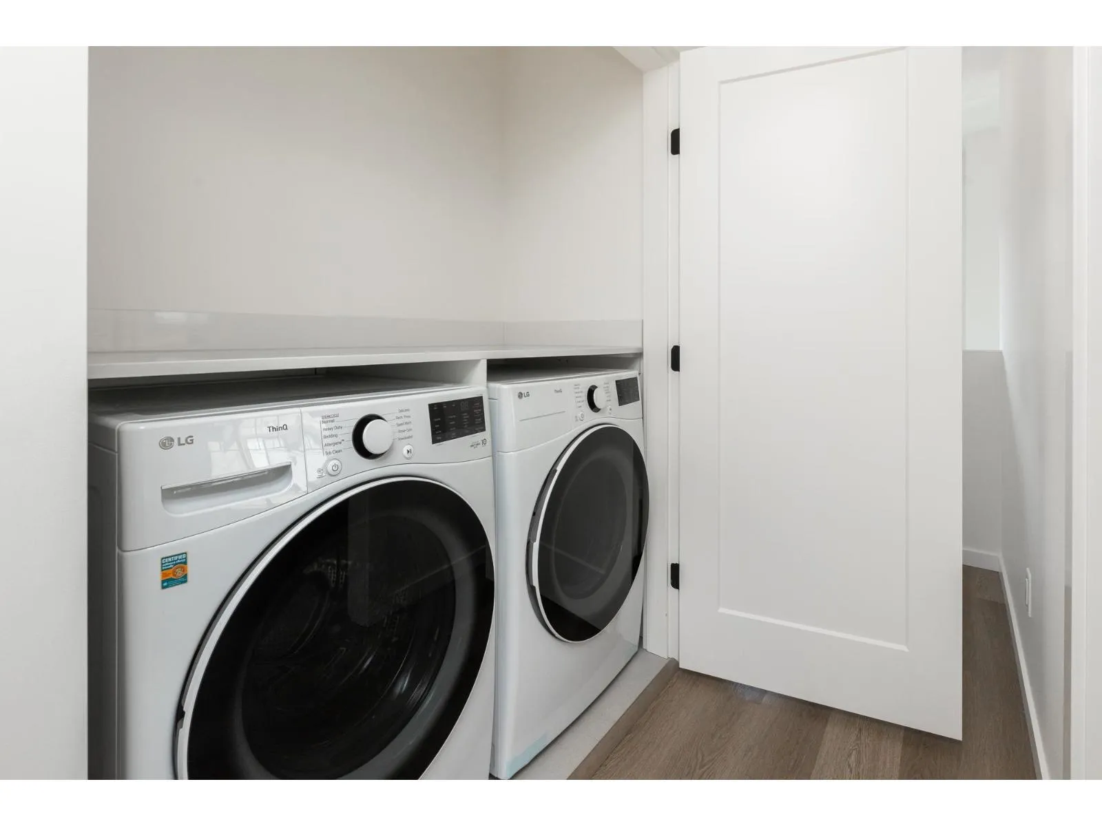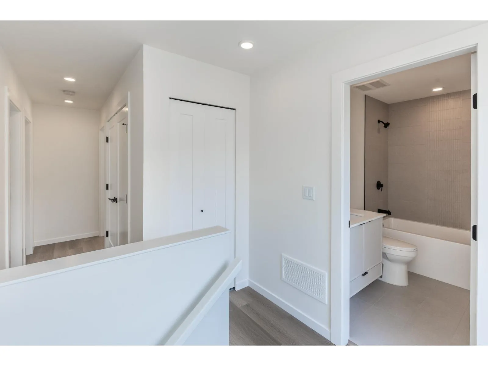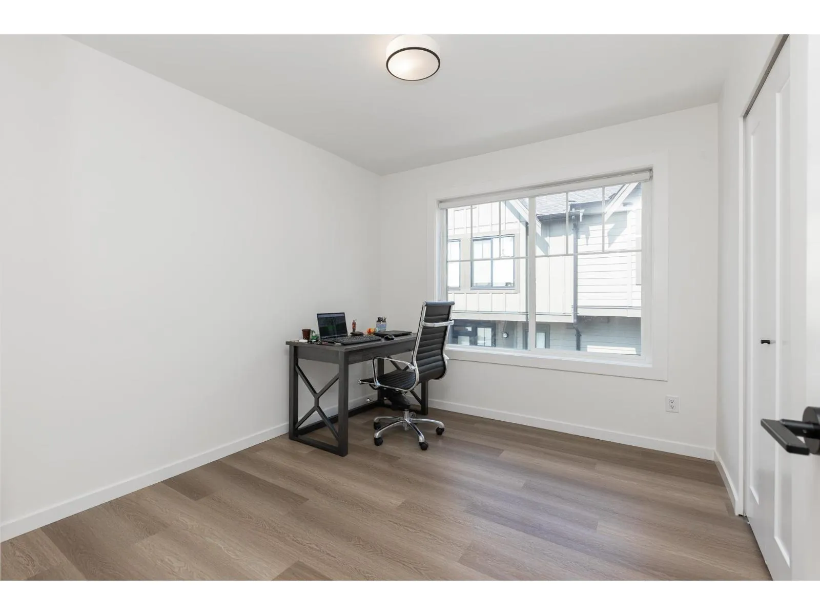 "The Loop" - prime 1-year-old townhome in a sought-after South Surrey community. Bright, functional layout ideal for families, close to schools, shopping, and transit. The lower-level 4th bedroom doubles as a private office or kids' playroom. Modern two-tone kitchen with large island, bar seating, designer lighting, and walk-out deck for summer evenings. Main floor laundry, spacious living area with electric fireplace, laminate throughout main and cozy carpet upstairs. Private primary suite with walk-in closet and spa-inspired ensuite featuring a deep tub and oversized shower. A must-see home. (id:27476)