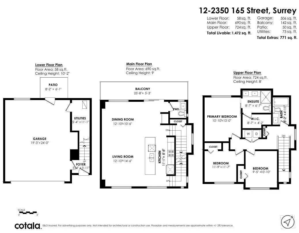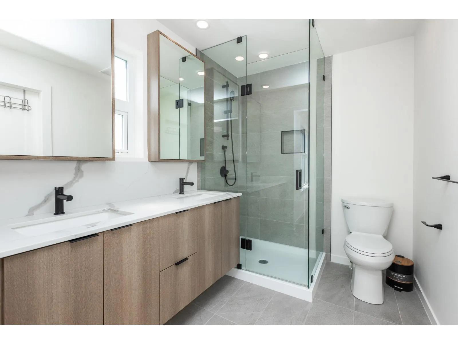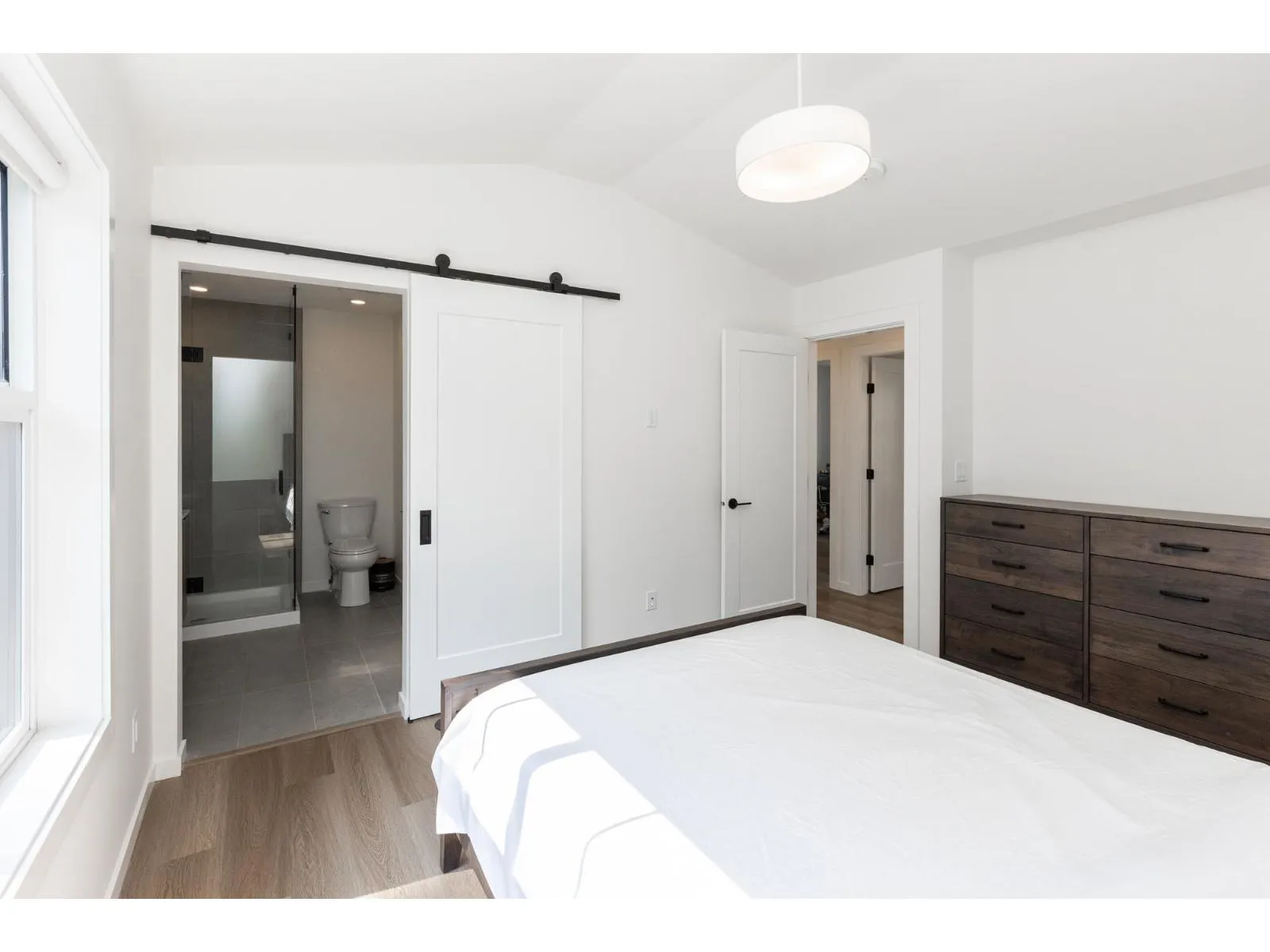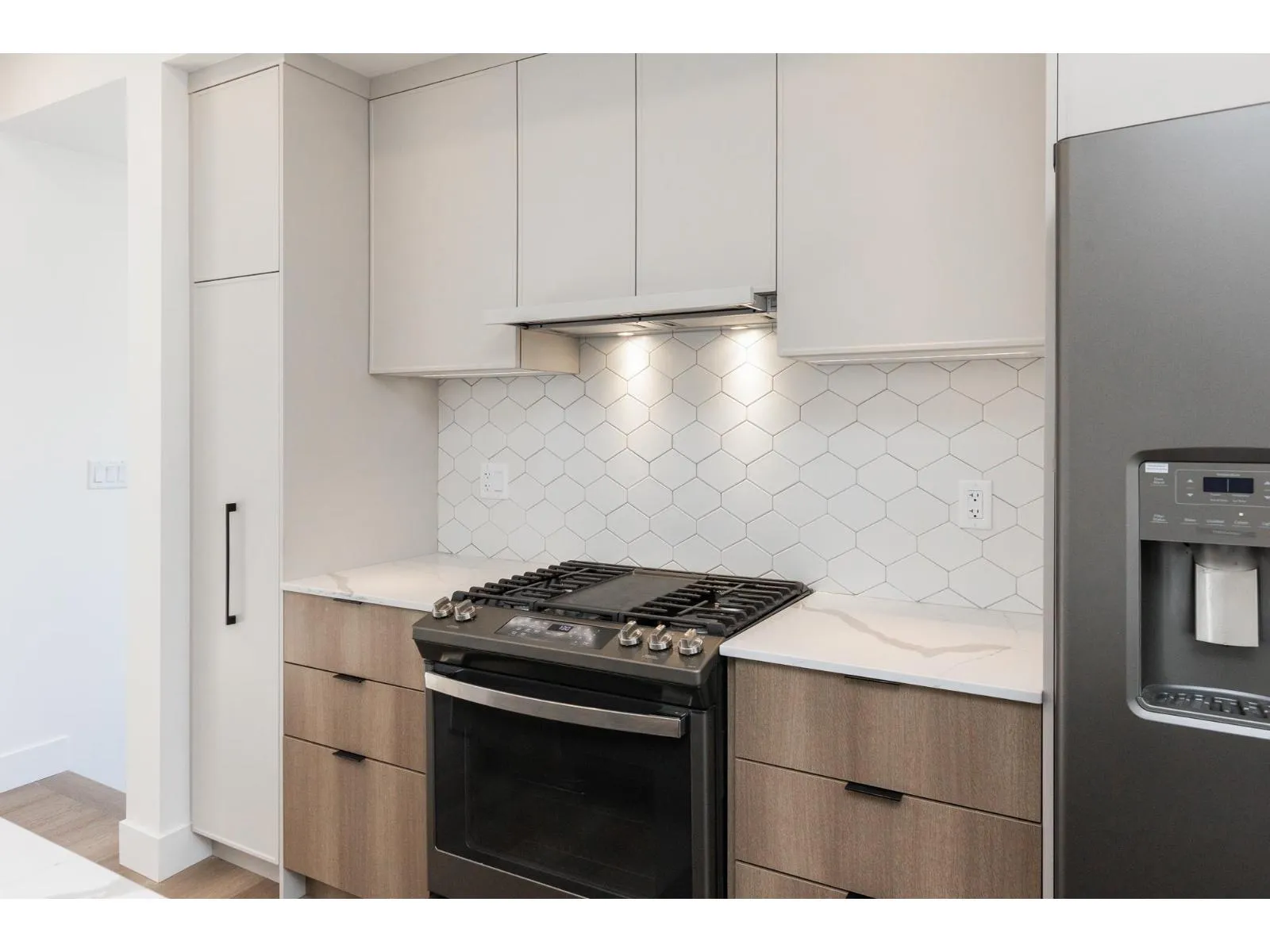 "The Loop" - prime 1-year-old townhome in a sought-after South Surrey community. Bright, functional layout ideal for families, close to schools, shopping, and transit. The lower-level 4th bedroom doubles as a private office or kids' playroom. Modern two-tone kitchen with large island, bar seating, designer lighting, and walk-out deck for summer evenings. Main floor laundry, spacious living area with electric fireplace, laminate throughout main and cozy carpet upstairs. Private primary suite with walk-in closet and spa-inspired ensuite featuring a deep tub and oversized shower. A must-see home. (id:27476)