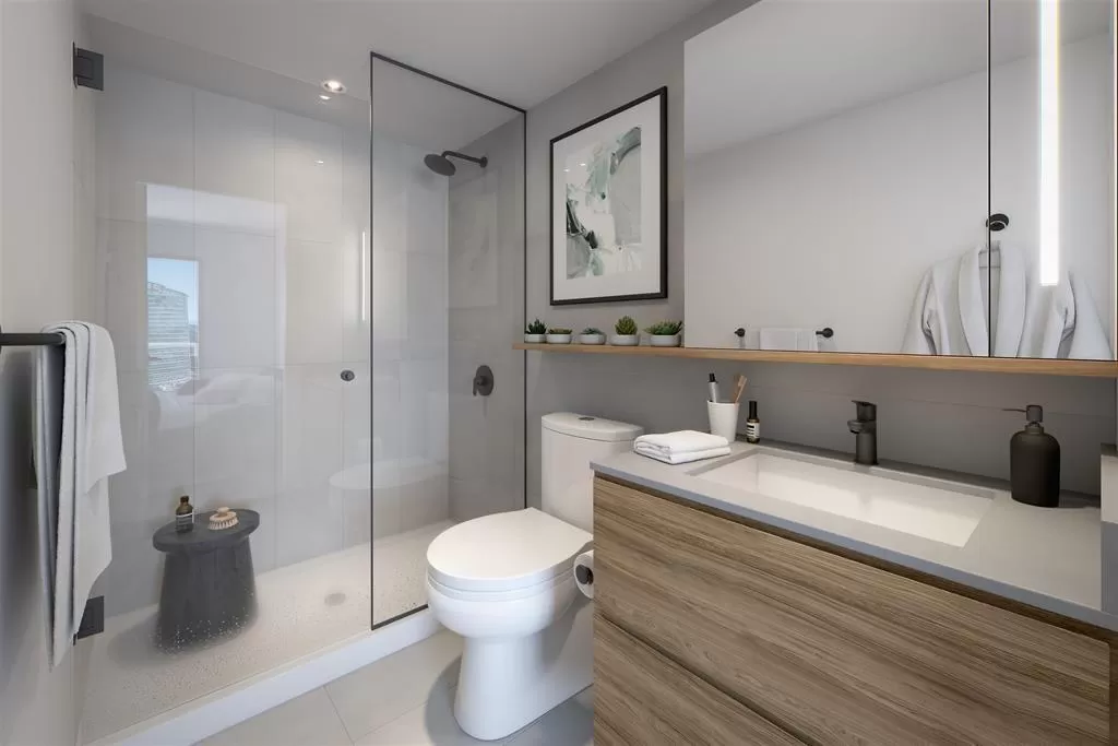 Welcome to University District by BOSA Bluesky Properties. 2 Bed/2 bath Corner unit on 22nd FLOOR. Lots of natural light from East and West. Strategically planned master community in Surrey Central, situated steps from Skytrain Station and short walking distance from post-secondary institutions, SFU Surrey and Kwantlen Polytechnic University. Multiple Community Parks and Chuck Bailey Rec. Centre. Italian kitchen featuring contemporary wood-grain finish, premium appliance package with ExtenTABLE. Offering top notch private amenities: a 23,000 SF Building, including a heated outdoor swimming pool, yoga studio, fitness center, spin room, study rooms, kids playroom, concierge and enormous entertainment areas and lounges. Built-in AC and a large balcony facing Southeast with West views. (id:27476)