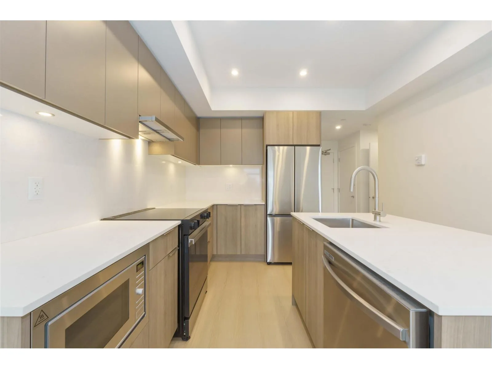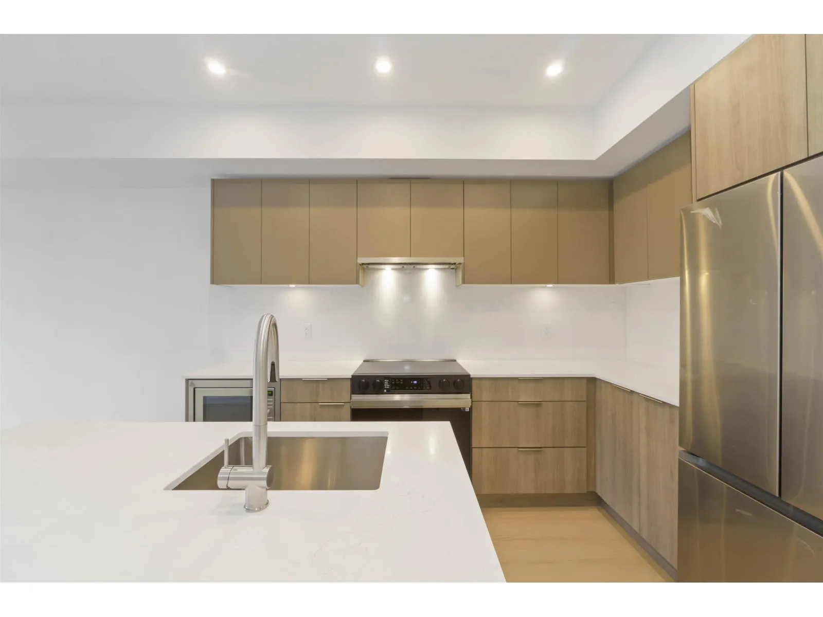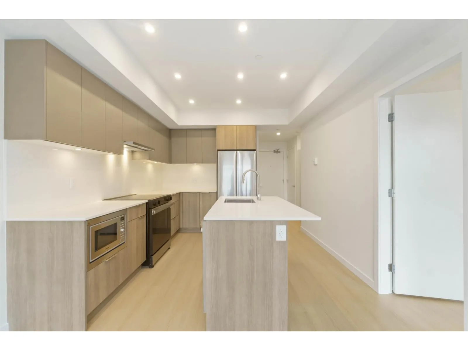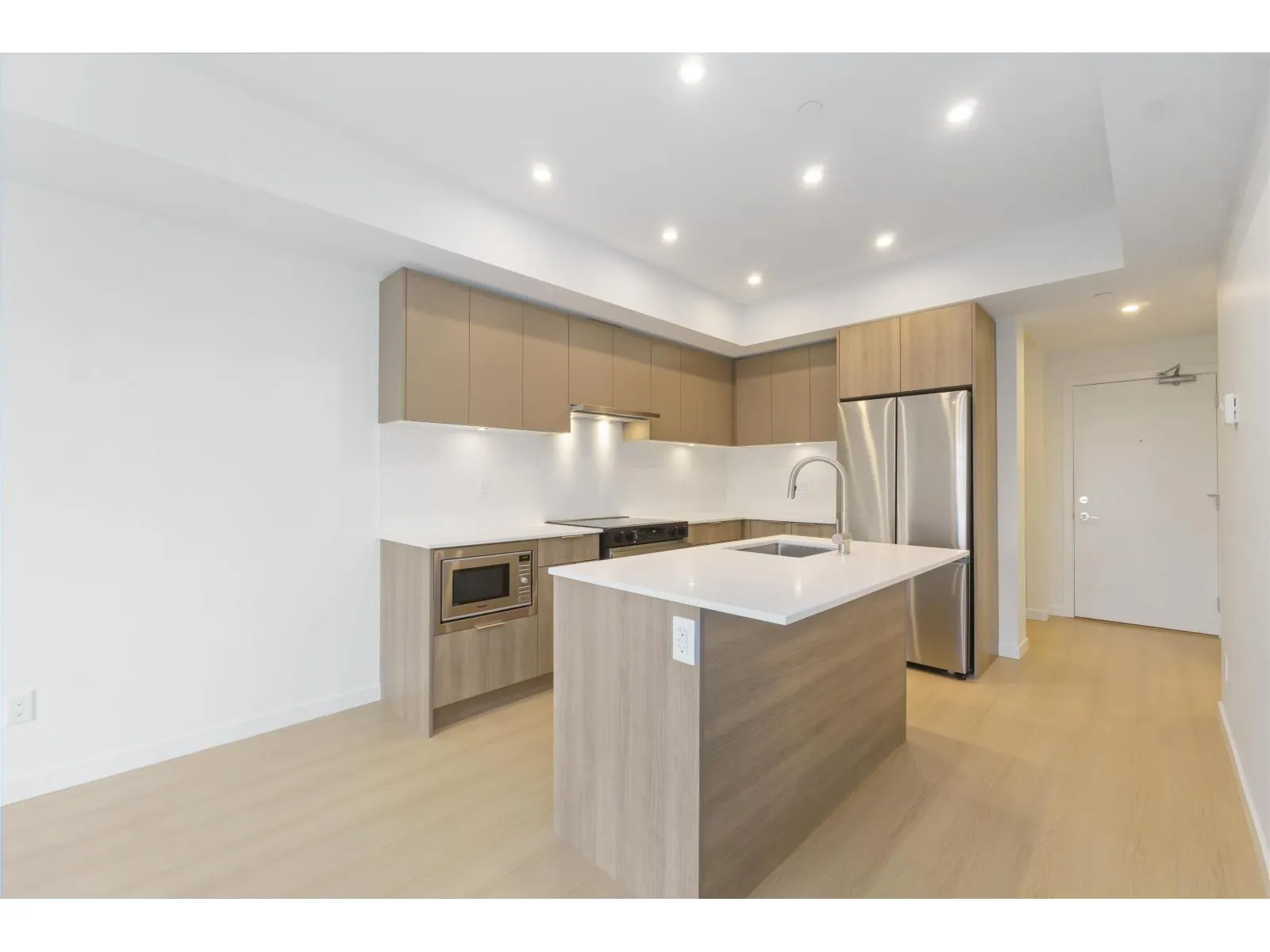 This modern 1-bedroom + den condo offers approximately 600 sqft of stylish living space, perfect for first-time buyers or savvy investors. Step into an open-concept layout with expansive windows that fill the unit with natural light and showcase city views. The kitchen features sleek cabinetry, quartz countertops, and stainless steel appliances - ideal for cooking and entertaining! The primary bedroom offers ample closet space, while the versatile den makes a perfect home office or guest space. Amenities include a well-equipped gym, a social lounge, and secure underground parking. Located in the heart of Surrey, you'll be steps away from Central City shopping, parks, and transit, offering an easy commute to downtown Vancouver. Don't miss out on this fantastic opportunity! (id:27476)