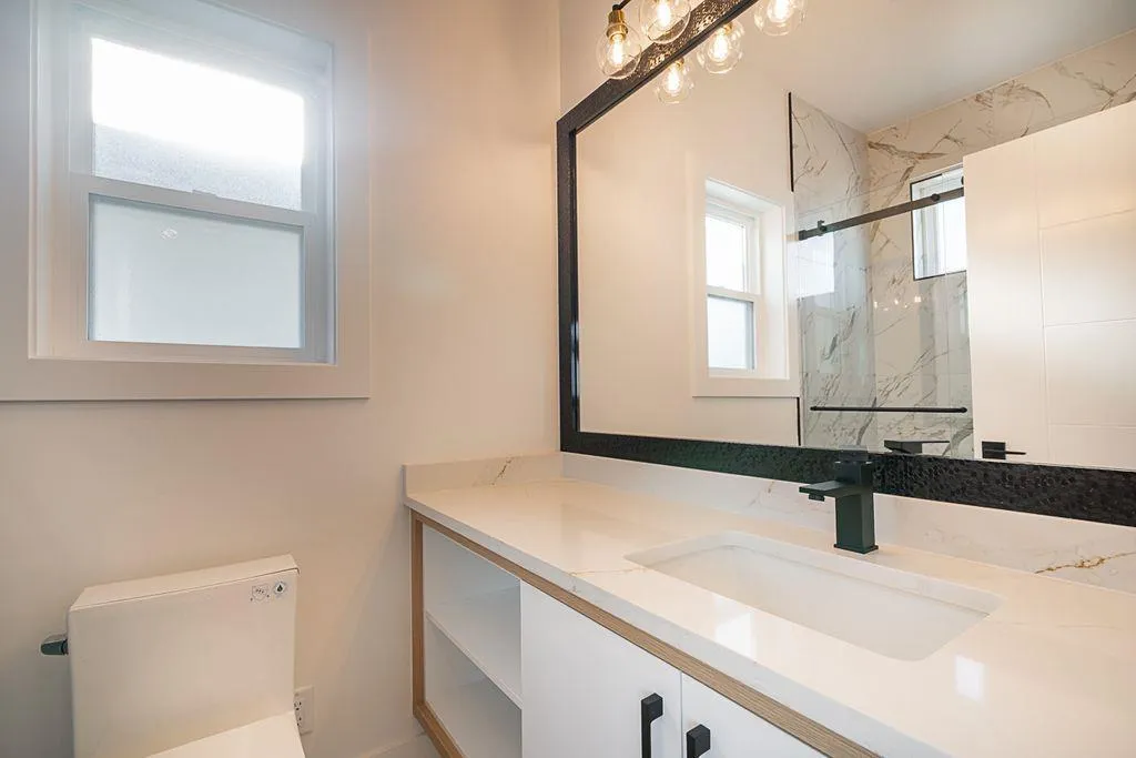 Presenting ALARA II by Symbolic Constructions Group. This exclusive collection of front and back duplex homes offers luxury living without the burden of STRATA FEES. Each front unit is a 4 bed, 4 bath residence, thoughtfully crafted w/high end finishes, featuring 9ft ceiling through out, expansive windows for abundant natural light, quartz countertops, premium appliances, built-in entertainment unit & security. A/C & energy efficient natural gas heating, built with STEP CODE 4 in mind. Tiled baths & elegant accent walls and a sophisticated modern touch. Enjoy 3 spacious levels of living, complete w/a large recreation room, a full bathroom, & an additional bedroom perfect as a mortgage helper! The detached garage is equipped w/220 volt power. Don't miss the chance to secure your dream home. (id:27476)