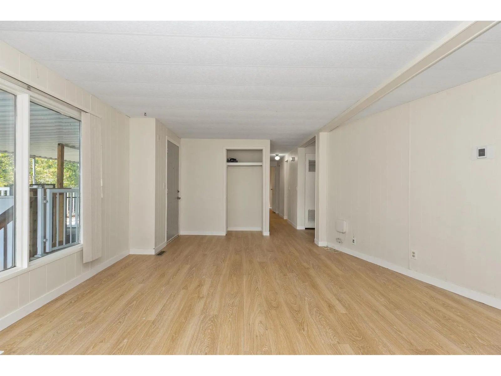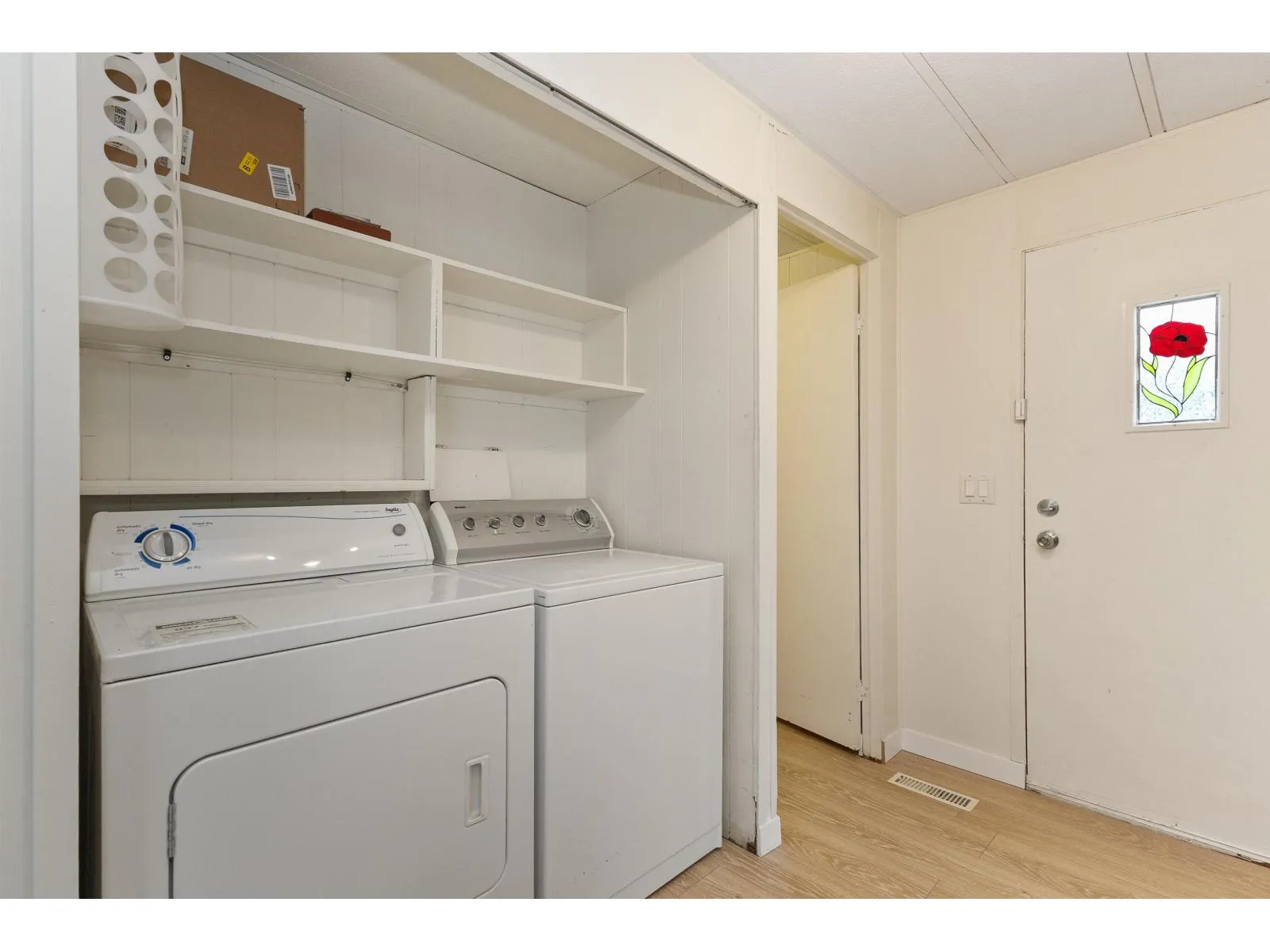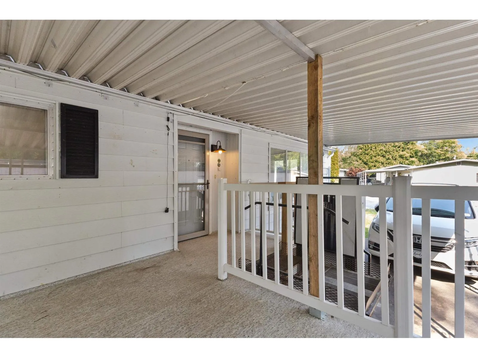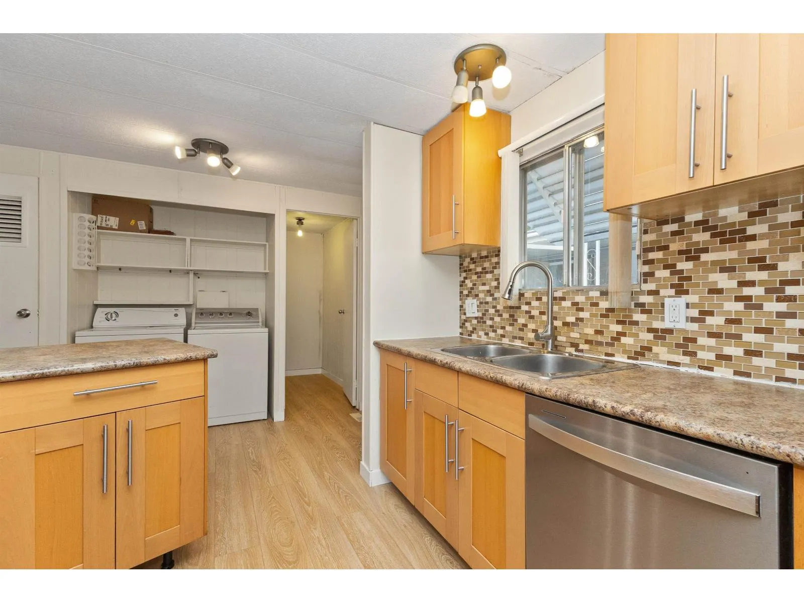 Move-in ready! This lovely & bright 1,149 sq.ft double-wide home is located on the quiet street in the popular family-oriented Crestway Bays park. It features 3 large bdrs, 2 baths, grand living/family room, designated dining area, beautiful kitchen with SS appliances, walk-in pantry/storage & in-suite laundry. Upgrades include brand new laminate floors throughout, fresh touch -up paint, 2023 furnace, hot water tank & 2024 SS dishwasher. It has a large 15x13 covered deck w/double stairs, backing onto the forest-like green space, wheelchair lift, a metal storage shed, 3 car parking spaces & 2025 silver label. Conveniently located minutes to shopping, schools, hospital, King George skytrain station, close to Crescent Beach & White Rock, this home is a great choice for anyone. (id:27476)