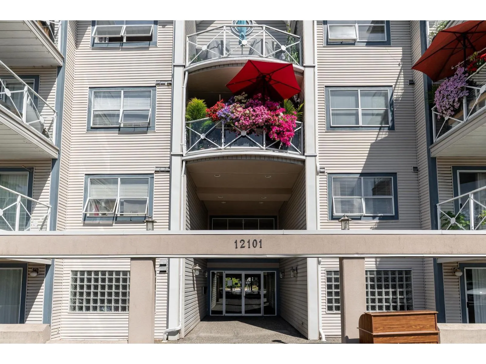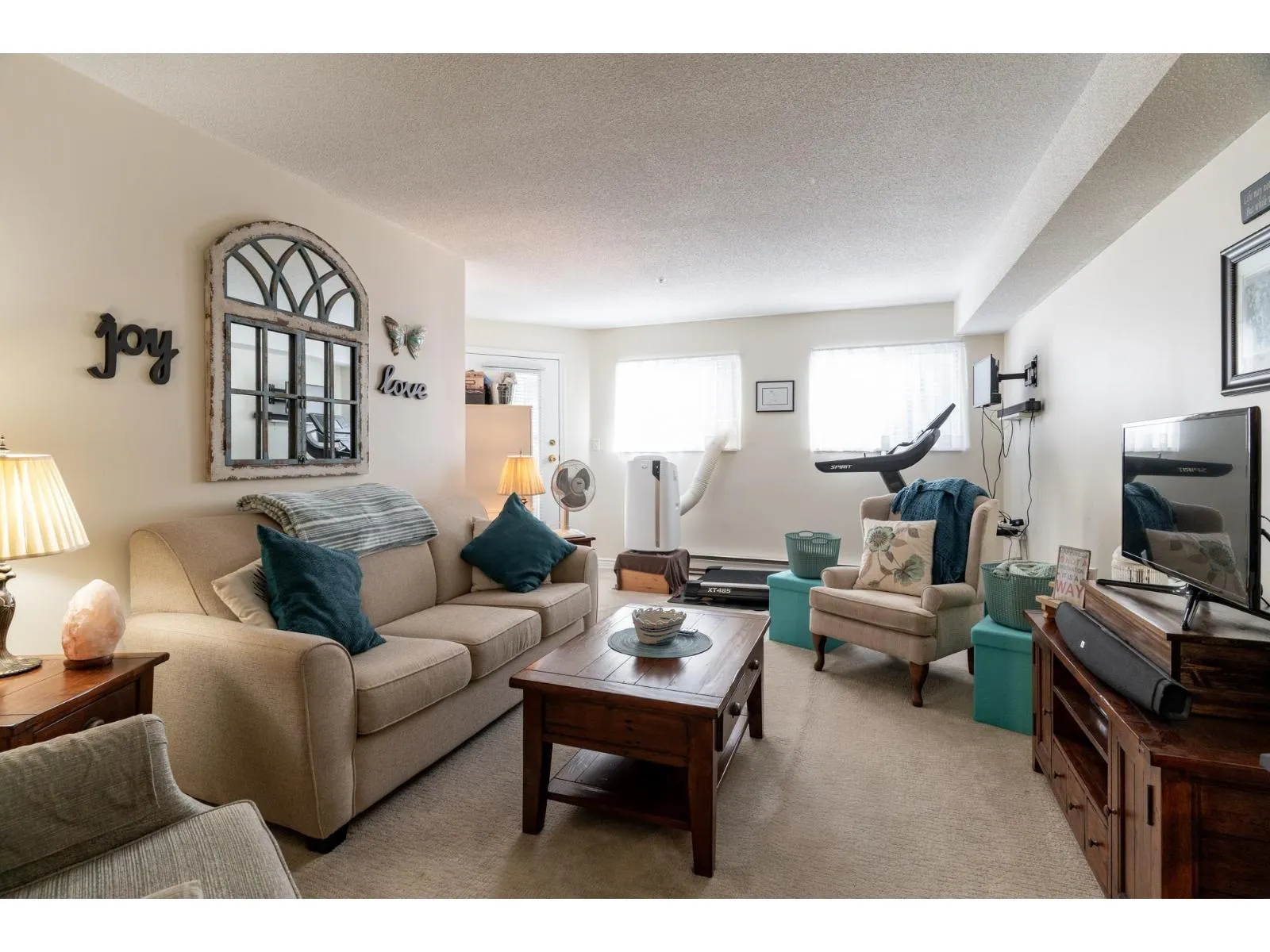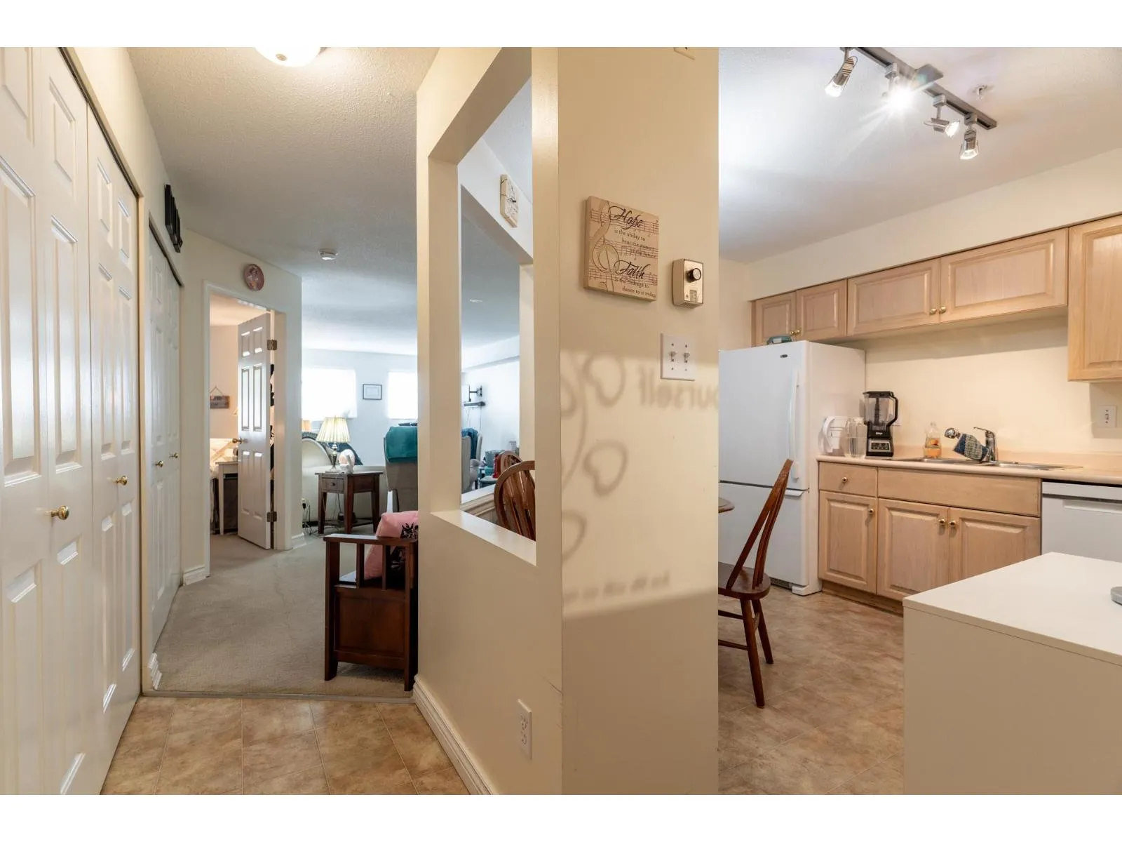 Extremely well maintained huge one bedroom unit on the ground floor of Surrey Town Manor. With almost 900sqft of living area, you feel like you're living in a house. Large kitchen with eating area opens onto a real dining room leaving ample space for full size furniture in the living room. Large 100sqft patio faces the interior of the courtyard. Primary bedroom is the largest you will see in a one bedroom with double walkthrough closets and an ensuite bathroom. Low maintenance fees of $312. 1 Underground parking spot. Close to shopping, restaurants and bus. (id:27476)