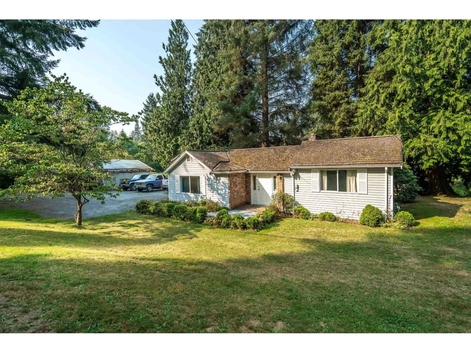 Gorgeous rare 5.07 acres in an up and coming area of Port Kells. Large flat rectangular lot. Latimer Creek runs thru as per pictures but provides a picturesque atmosphere! Rancher w/unfinished basement, main floor features your kitchen w/eating area. 3 bdrms (1 with a wi closet) lvg rm w/wood f/p, dining room and a full bathroom. City water. Wheelchair accessible front entrance. Furnace 2021, hot water tank 2013, roof - older. Sump pump approx 4 years old. Some updated flooring. Washer and dryer in the basement. Couple barns, sheds and outbuildings. New bridge leading to the back part of the property. Close to the library and schools! Transit on the street. Peace and quiet in the city! Secluded luxury - opportunity knocking! Build your dream home on this amazing plot of land. (id:27476)
