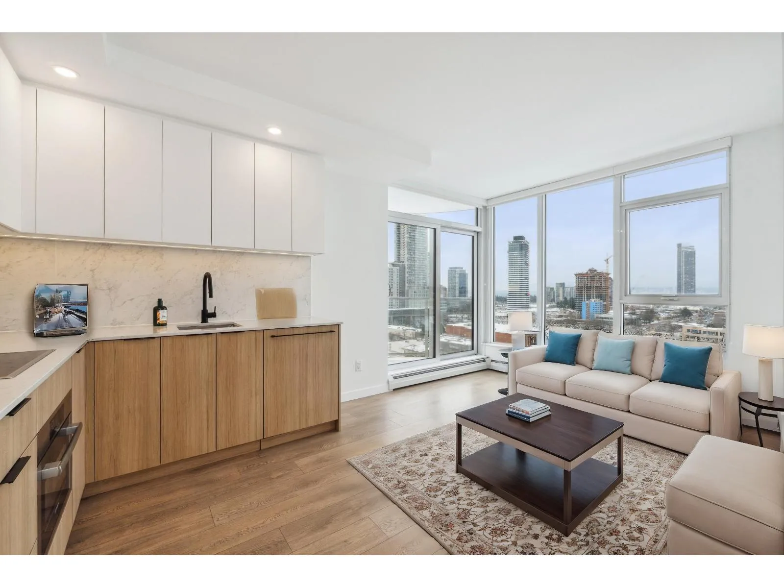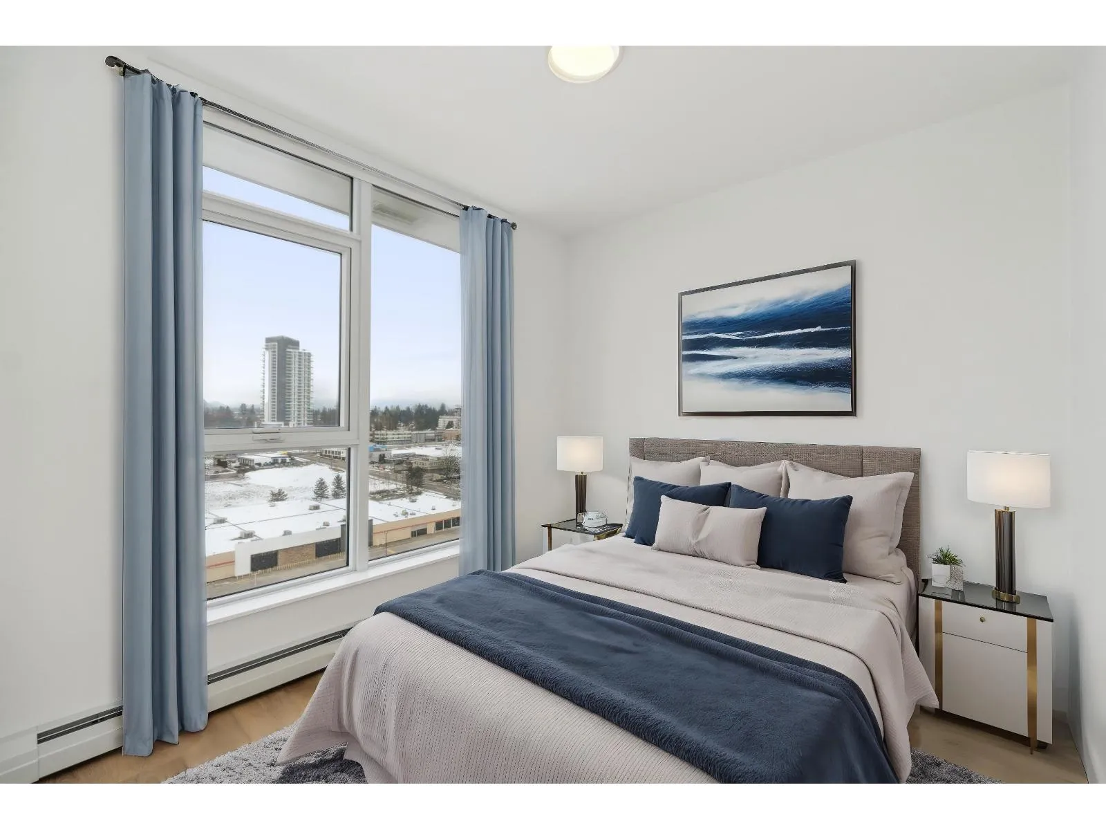 Welcome to Georgetown One by Anthem, a premier master-planned community in Surrey City Centre! This stunning 14th-floor 2 BED + 2 BATH unit boasts a spacious L-shaped kitchen with high-end Bosch & Blomberg appliances, plus a large balcony with breathtaking city views. Thoughtfully designed with bedrooms on opposite sides for added privacy. Enjoy top-tier amenities, including a lounge, outdoor theatre, co-work/study space, pet park, fitness centre & yoga studio. Walking distance to Surrey Central SkyTrain, SFU, KPU, shops & restaurants. Pets & rentals allowed! 1 Parking + 1 Storage incl. (id:27476)