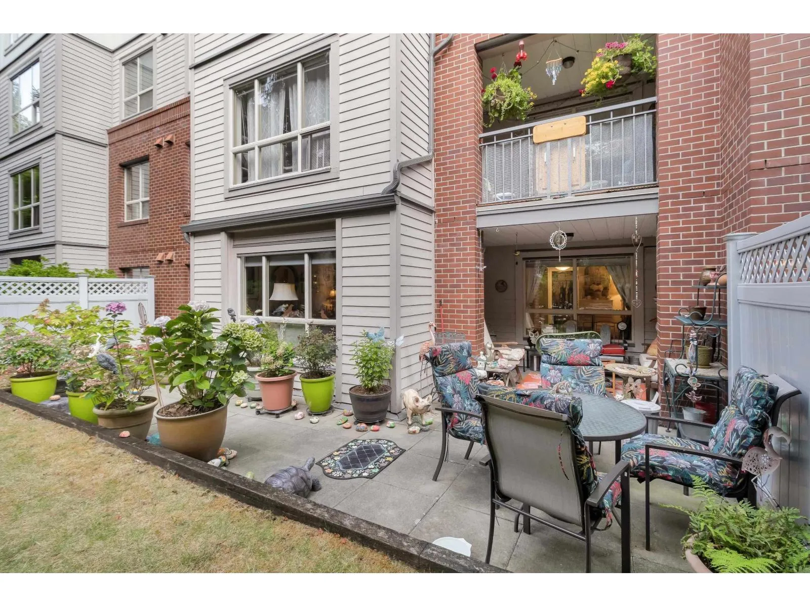 Rarely available 1st floor condo in White Rock with an extra-large patio perfect for gardening, kids, or even a sandbox. Gas is included in the maintenance fee and heats the entire home (home can share low hydro bills). This well-maintained building has a new roof, boiler, and gutters, so no worries about surprise levies. Enjoy 2 parking stalls + storage, with public transit just steps away and Semiahmoo Trail at the end of the cul-de-sac. Walking distance to shops, restaurants, and the beach-- ideal for daily convenience. This property is also pet friendly for your furry friends! (id:27476)