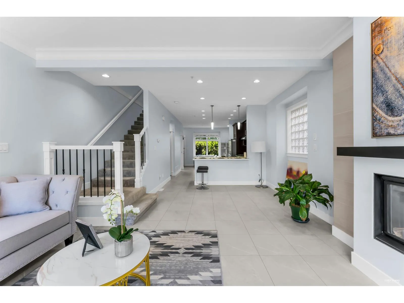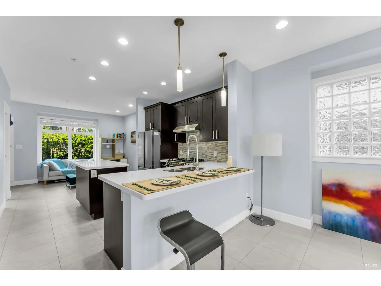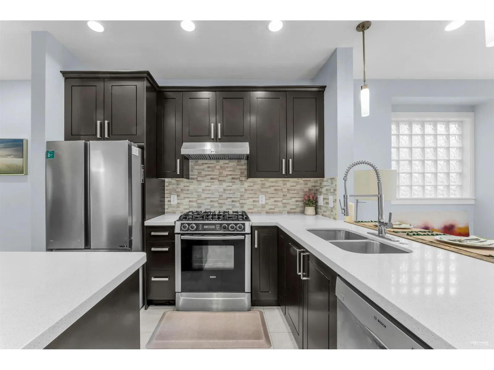 Welcome to Allure-a modern end-unit townhome w/ 1,500+ sf of well-designed space. This 3 bed, 3 bath home is situated 1 Blk from park & school, w/ quick access to transit, shops, hwy & US border. The washer, dryer, range hood and refrigerator have been replaced within the past year, and the garbage disposal is brand new! Fresh new carpet and flooring throughout, plus newly replaced boiler. Main floor features 9' ceilings, crown moldings, thick baseboards & 2" blinds. The kitchen boasts quartz CT, Bosch & Fisher Paykel appliances and large pantry. The master features heated ensuite floor, dual sinks & sleek frameless shower w/ river rock accents. Efficient heating and a gas f/p keep you warm while saving on electricity. Open House: Oct 25 Sat 1-3pm (id:27476)