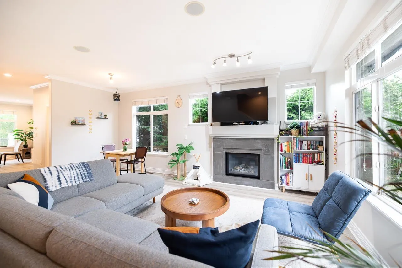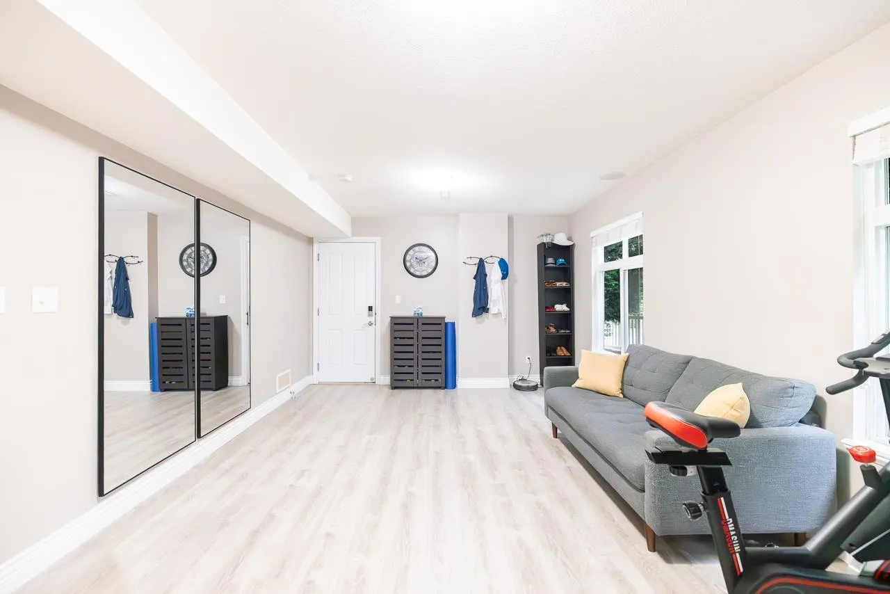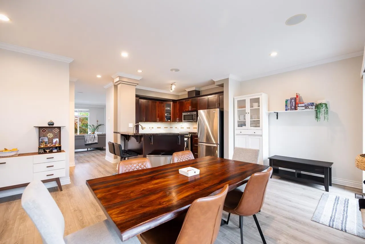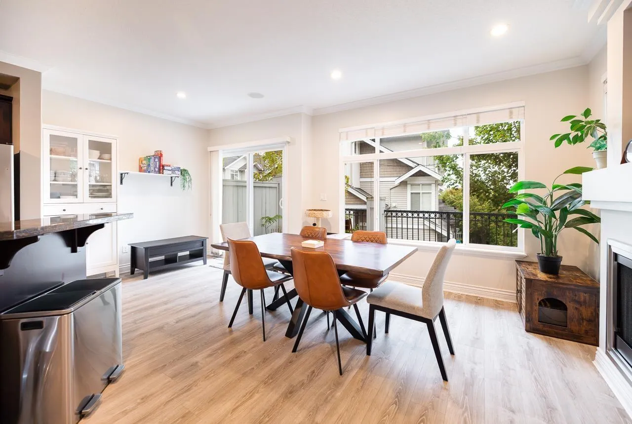 Welcome to this END UNIT townhouse with wrap around private yard in desirable Clayton! This meticulously maintained 2000 sqft corner unit features 9ft ceilings on the main and a very functional layout with a large open living and dining room, family room, a spacious kitchen with S/S appliances including a gas range and large balcony with room to entertain & bbq. Upstairs you have 3 spacious bedrooms and 2 bathrooms and a large Flex/Rec room in the basement perfect for a gym or home office or extra bedroom. Side by side double garage with space for 2 additional vehicles outside. Recent upgrades include a new fence (2025) new furnace (2024) laminate flooring (2023) fresh paint (2022) & Washer and Dryer(2021). Plenty of visitor and street parking available. (id:27476)