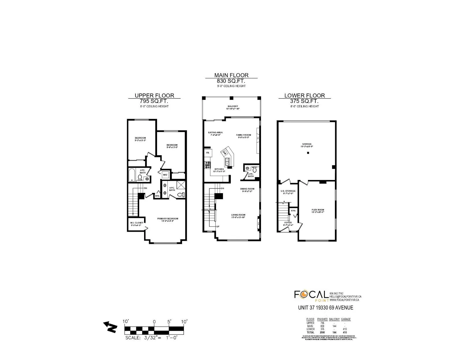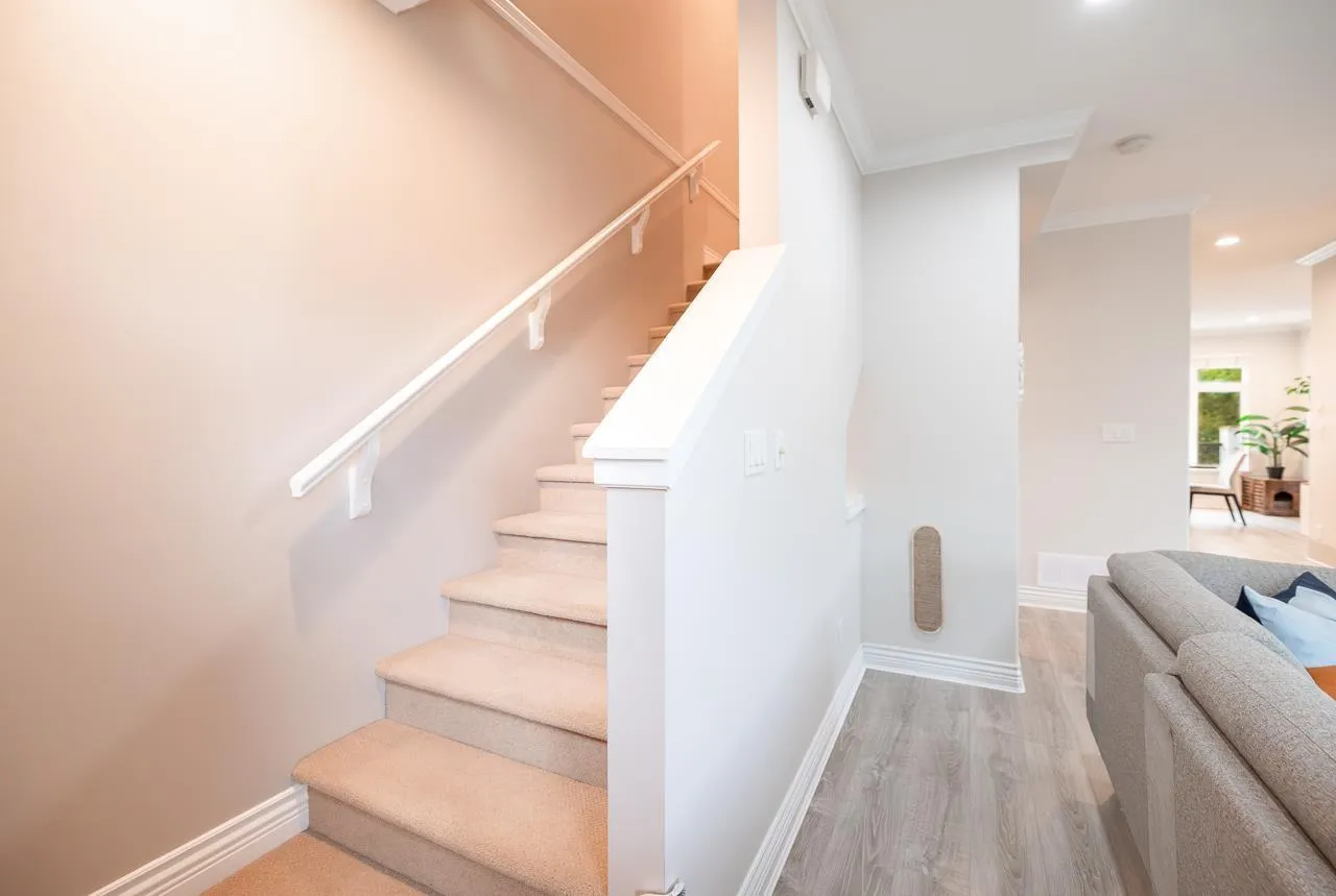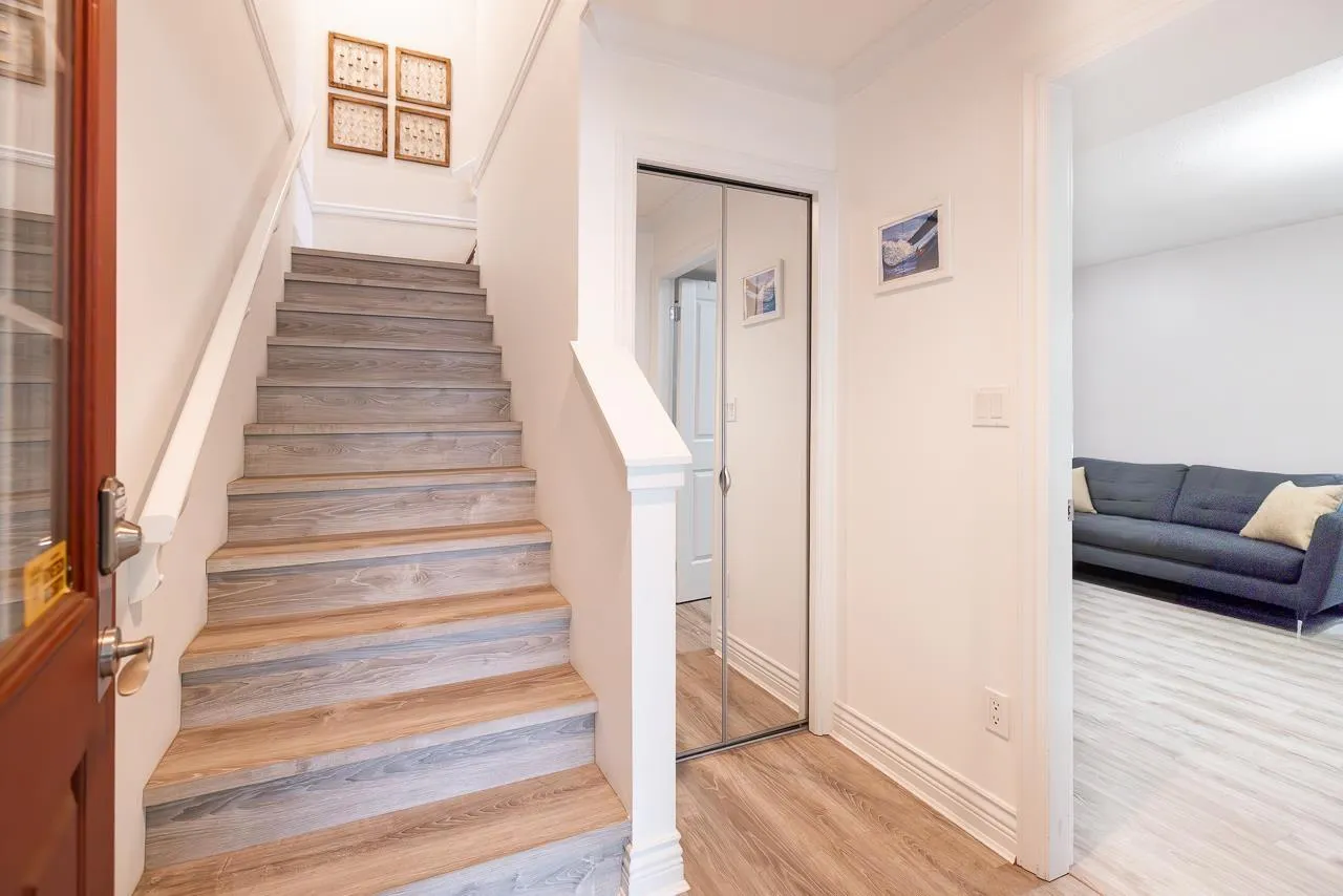 Welcome to this END UNIT townhouse with wrap around private yard in desirable Clayton! This meticulously maintained 2000 sqft corner unit features 9ft ceilings on the main and a very functional layout with a large open living and dining room, family room, a spacious kitchen with S/S appliances including a gas range and large balcony with room to entertain & bbq. Upstairs you have 3 spacious bedrooms and 2 bathrooms and a large Flex/Rec room in the basement perfect for a gym or home office or extra bedroom. Side by side double garage with space for 2 additional vehicles outside. Recent upgrades include a new fence (2025) new furnace (2024) laminate flooring (2023) fresh paint (2022) & Washer and Dryer(2021). Plenty of visitor and street parking available. (id:27476)