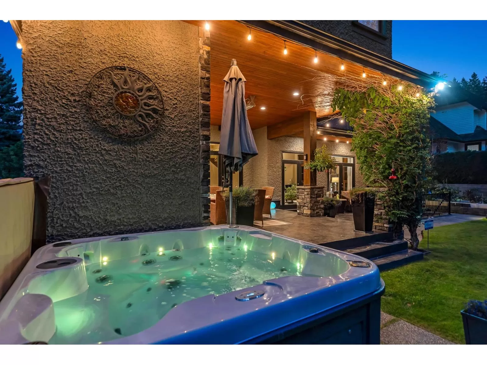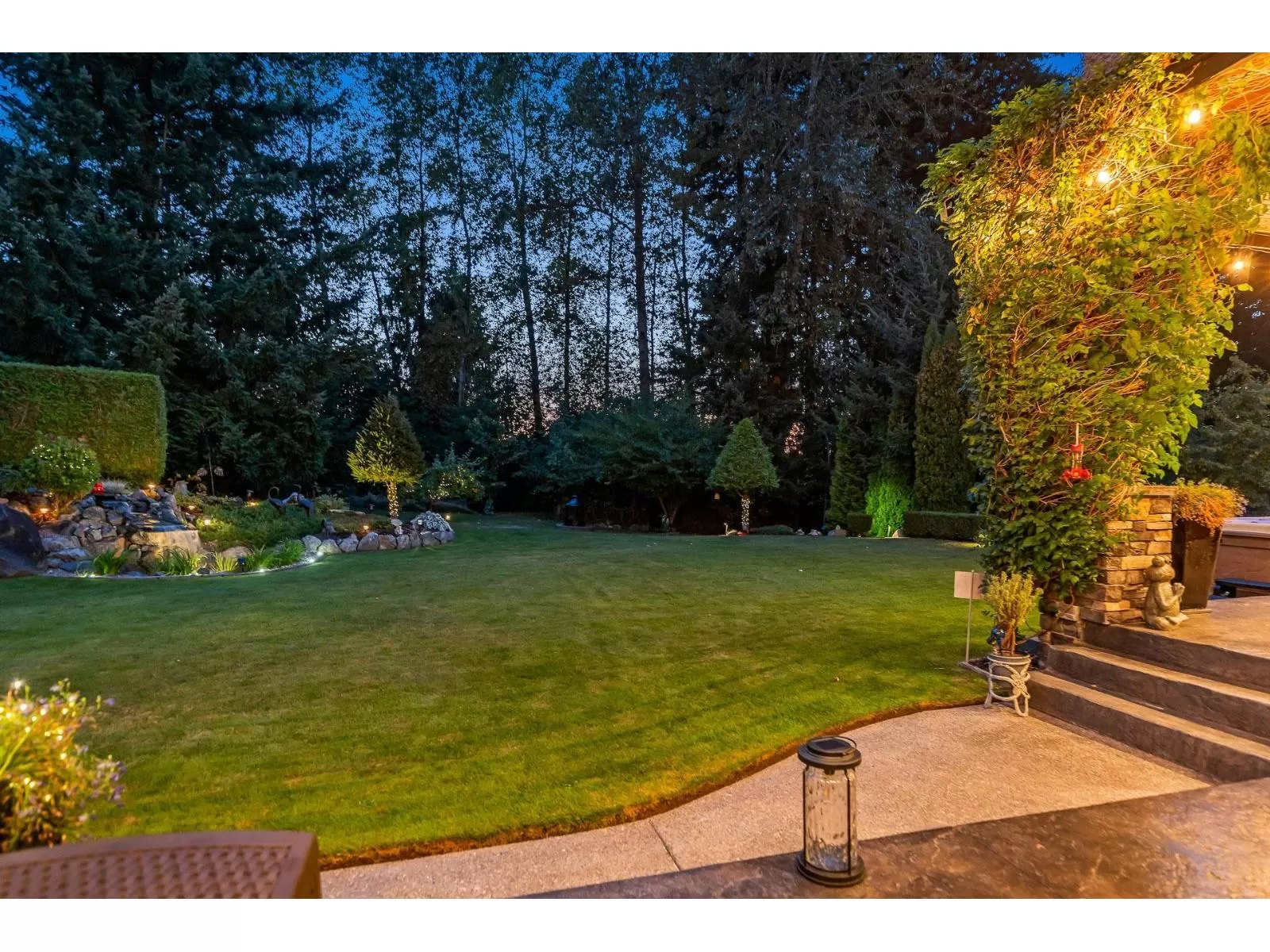 Located minutes away from Semiahmoo Trail Elementary & walking trails in Sunnyside Urban Forest. The home is situated on a no through road, making it a quiet and private neighborhood, a short drive to shopping and restaurants. 12,109 square foot lot has a west facing backyard with a waterfall, a fishpond and a private greenspace with fruit trees. Large covered custom deck equipped with heaters, a gas fireplace, hot tub and an outdoor kitchen, making it a perfect space to entertain. The home was custom built by Cardinal Contracting with beautiful stonework, rich cabinetry and excellent millwork finishing . Family Room has a 20-foot vaulted ceiling with ample natural light. 5 bedrooms and 5 ½ bathrooms. Lower floor would be an ideal space for an in-law suite with a private access. (id:27476)