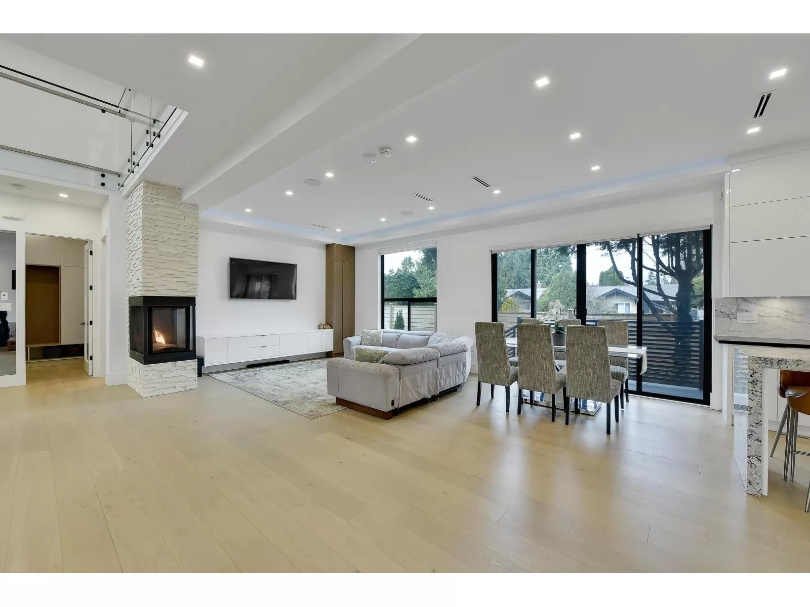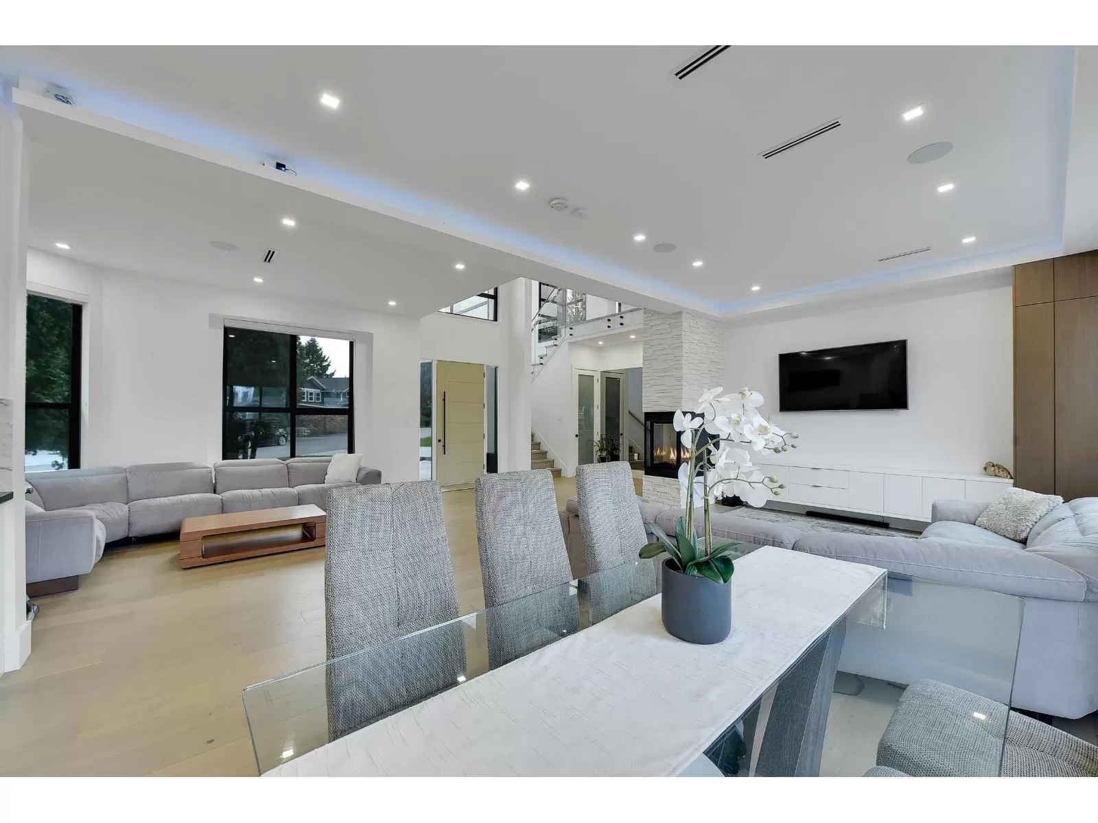 Stunning Custom-Built Corner Home in South Surrey. This exquisite south facing home on a 8,472 sq. ft. lot, blends contemporary elegance with practicality. The grand foyer boasts soaring 20ft ceilings, creating a bright, open ambiance. Features include radiant in-floor heating, security system, central vacuum, and on-demand hot water. A private-entry secondary suite on main floor perfect for rental income. The landscaped lot includes a concrete side yard/basketball court, RV/boat parking and large driveway for five vehicles (+2 in garage). Second floor includes 2 large balconies and a spiral staircase leading up to a bonus 250 sq. ft. home theatre with skylights. Within close proximity to Semiahmoo Mall, Morgan Crossing, top eng/fr schools, South Surrey Athletic park and White Rock Beach. (id:27476)
