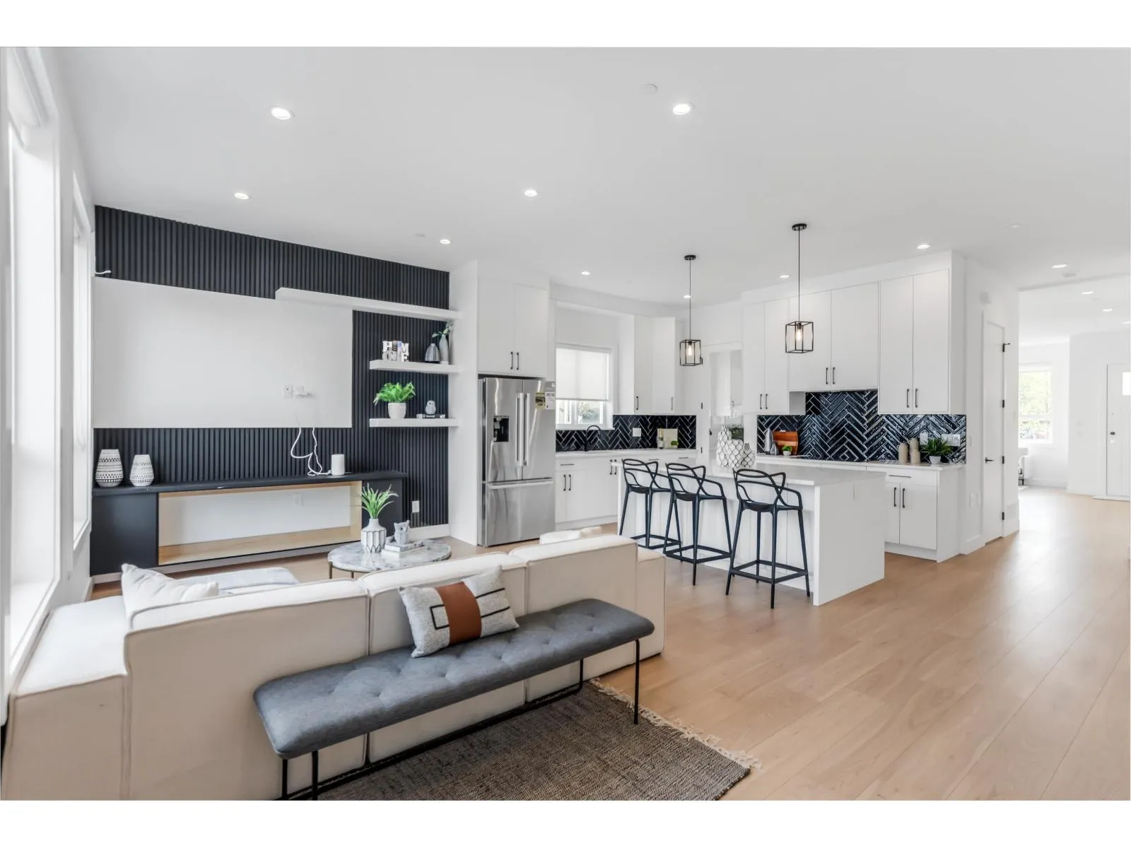 Step into luxury with this stunning, brand-new three-storey corner unit row home--designed for modern living and unbeatable convenience. The main floor showcases a bright, open-concept layout featuring a spacious living room, elegant dining area, cozy family room, gourmet main kitchen, and a bonus spice kitchen--perfect for entertaining or family meals. Upstairs, enjoy a private master retreat complete with an ensuite, plus three generously sized bedrooms and a full bathroom. The fully finished basement offers a large rec room with a full bath, plus a separate entrance to two bedrooms, a living room, and an additional bathroom. Best of all, there are NO strata fees! Located just minutes from schools, shopping centres, and quick access to Highway 1, this is the perfect place to call home. (id:27476)