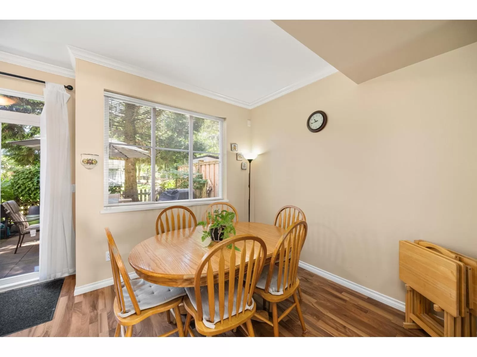 Best location in Cloverdale's Rosebury Lane. This bright well maintained end unit offers 3 spacious bedrooms, 3 baths, garage plus driveway parking, and backs onto greenspace with an oversized yard and patio perfect for kids, pets, and entertaining. Features include 9 ft ceilings on the main, a large kitchen with dining area, powder room, walk-in closet in the primary bedroom, and plenty of storage. Family-friendly complex near schools, parks, shopping, transit, and the future SkyTrain. Roof is 7 years old, fences recently updated, and quick possession is available. OPEN HOUSE Sunday 12pm - 2pm (id:27476)