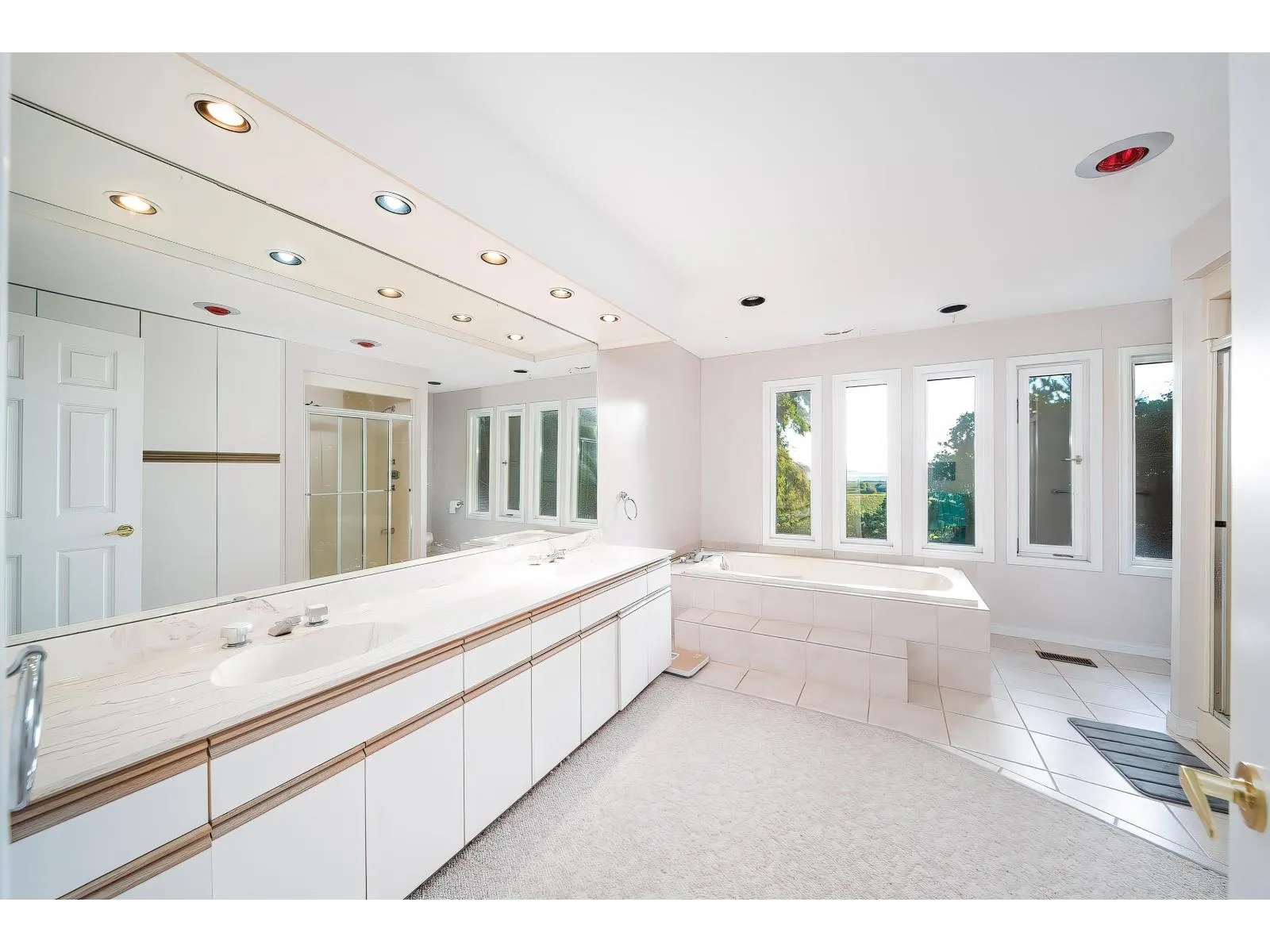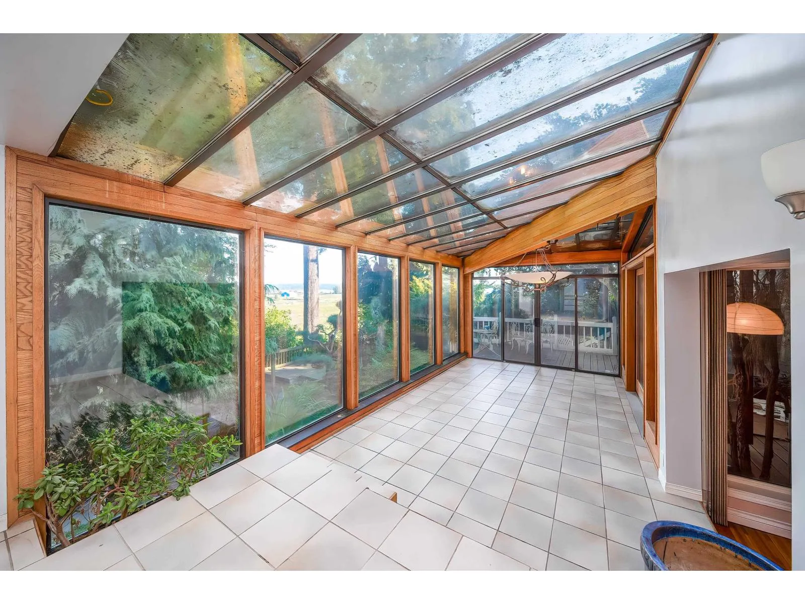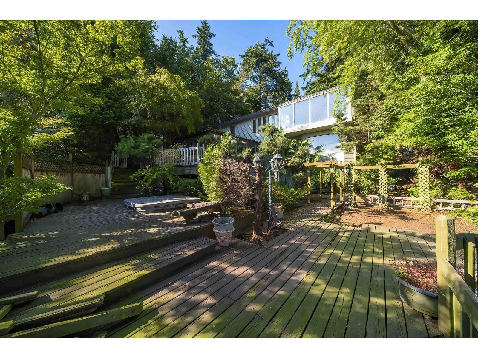 The spacious oasis sits on the half acre lot in the prestige area of Panorama Ridge. This unique west coast style home offers beautiful views of ocean, Mt Baker, and Sunset from main & upper levels. It features private yards w/ year round tasteful garden, multiple decks for peaceful relaxation, open-air hot tub in nature surrounding, 5500+ sqf living area, extra large 4 bedrooms, commercial grade heating system, luxurious appliances, and extra deep garage. 190sqf greenhouse is definite the florist's love. Updated primary bathroom and hardwood floor upstairs. Updated 2 bedrooms suite w/laundry & separate entrance in basement. Walk to Colebrook Elementary. This is absolutely nature lover's dream home! Open house: Nov 9, Sun., 2-4pm. (id:27476)