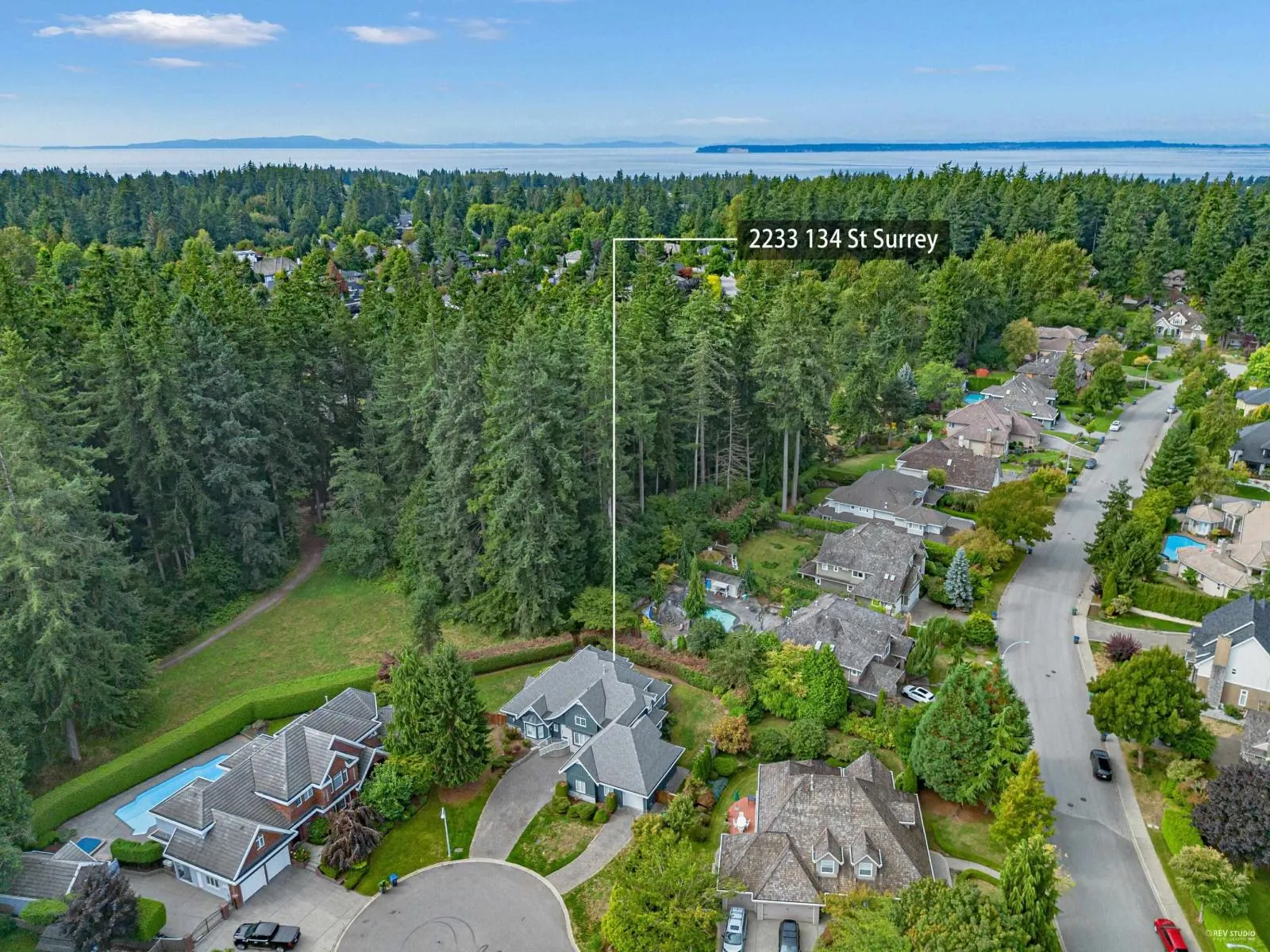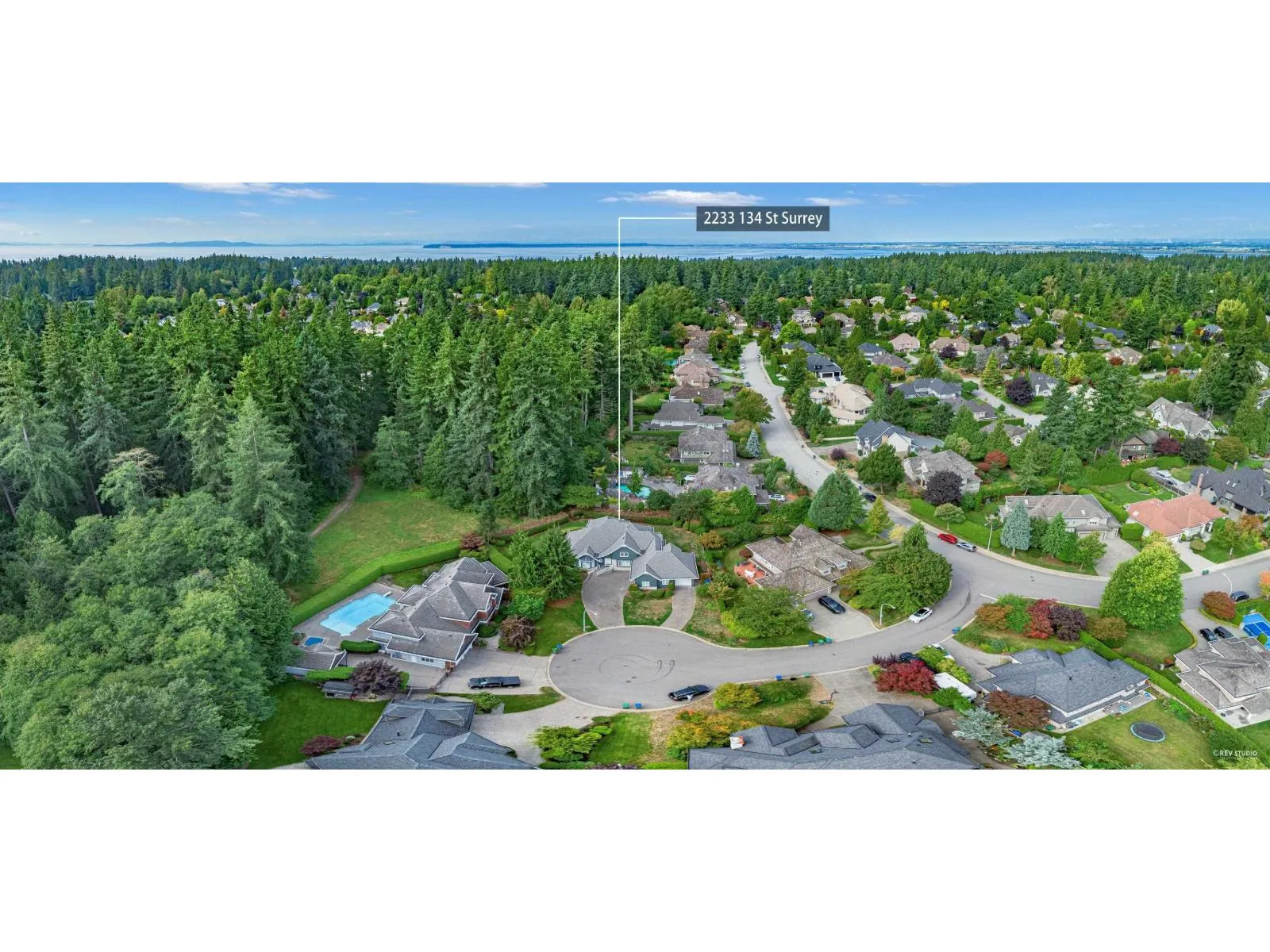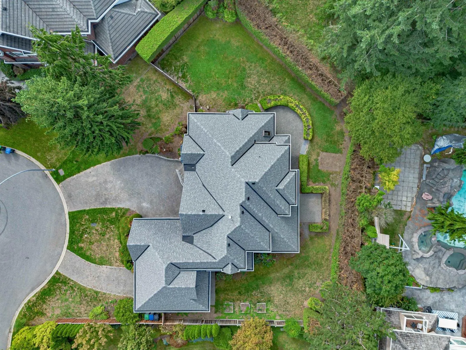 Beautifully crafted 3,717 sq. ft. custom home on a quiet 13,939 sq. ft. cul-de-sac lot in prestigious Chantrell Estates, backing onto Dogwood Park and trails, steps from Elgin Park Secondary. Featuring 4 bedrooms, 4 full bathrooms, and a versatile games room. This residence offers exceptional space and flexibility. The gourmet kitchen boasts granite countertops, solid wood cabinetry, and French doors opening to a sun-filled patio and private backyard. New paint 2025, New roof in 2022. (id:27476)