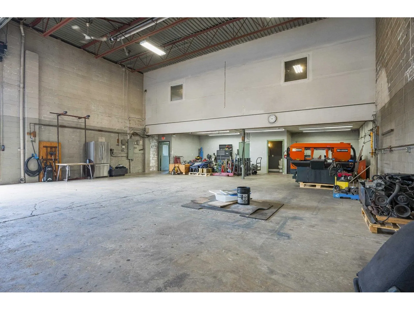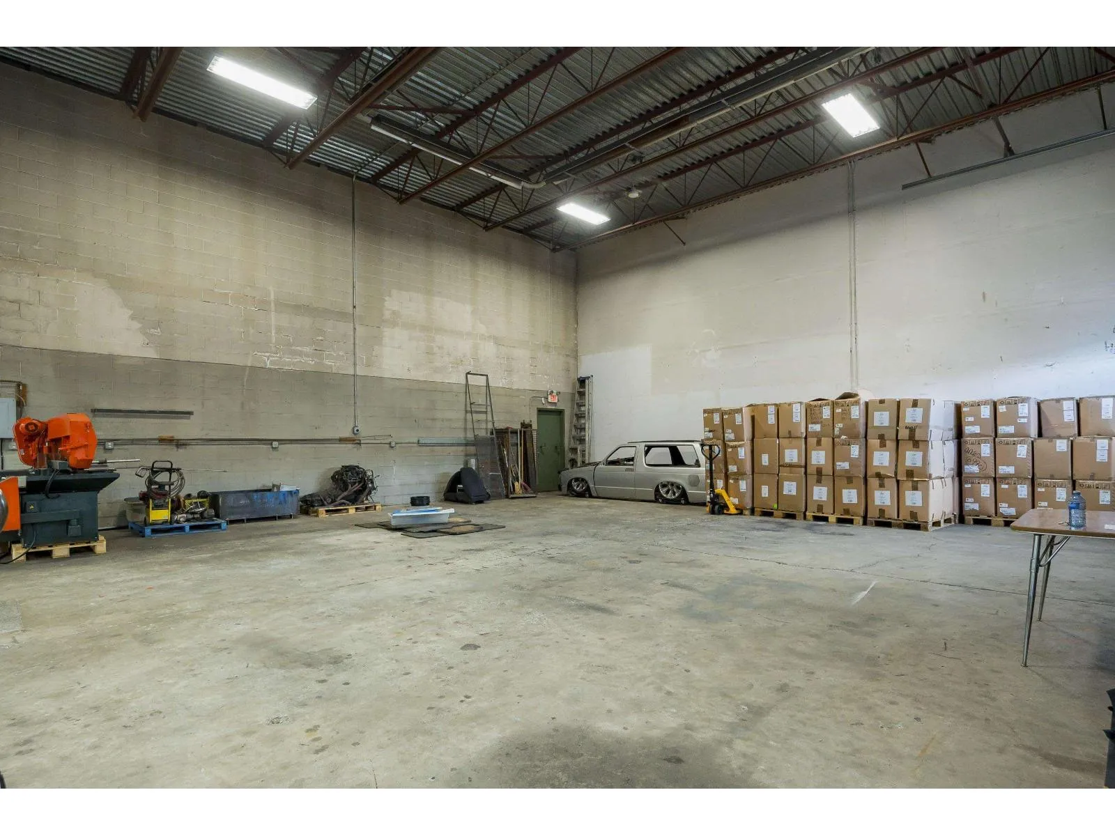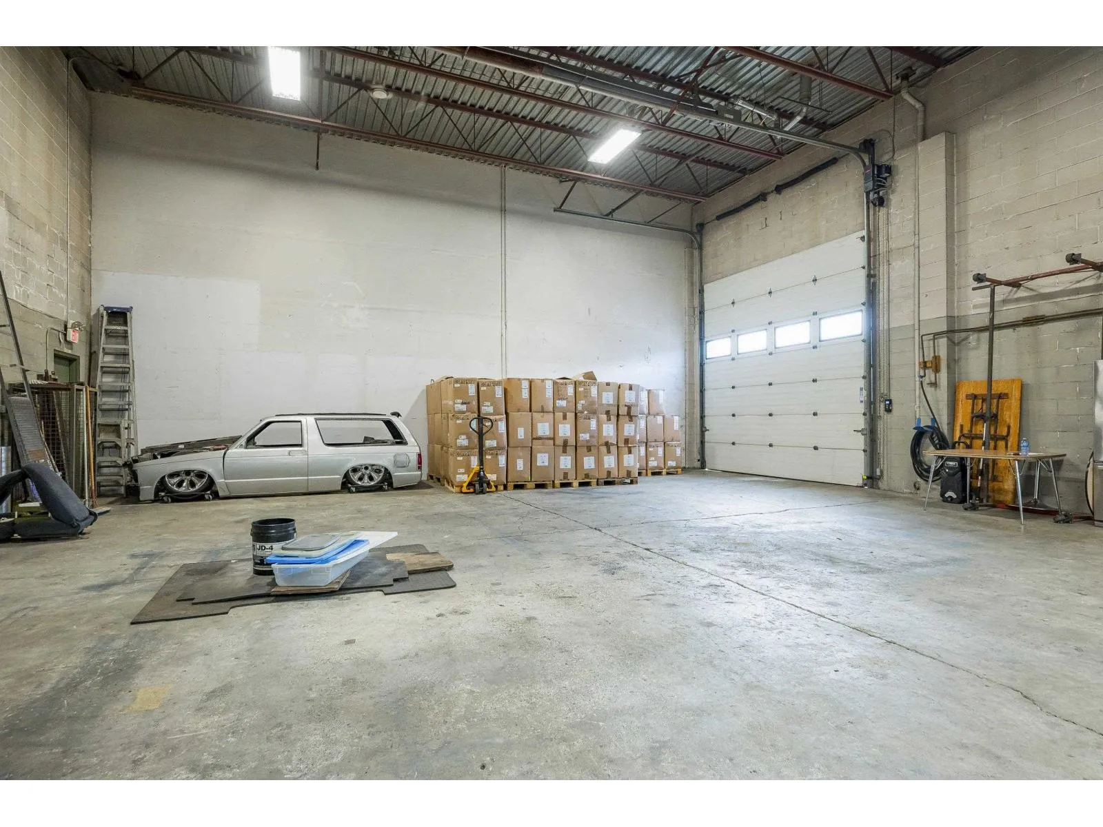 End Unit with total of 3174 sq ft. Main warehouse is 2400 sq ft (60 x 40) and includes a bathroom on the ground level. 714 sq ft office space above that has full kitchen and bathroom with permits. The industrial zone (Rare Automotive Use Permitted), 240 electric & phase 3 Power. 14 x 12 bay door and 1 loading dock on grade, New hot water tank and upgraded $8k radiant shop heater. Great opportunity to be in a prime central location. (id:27476)