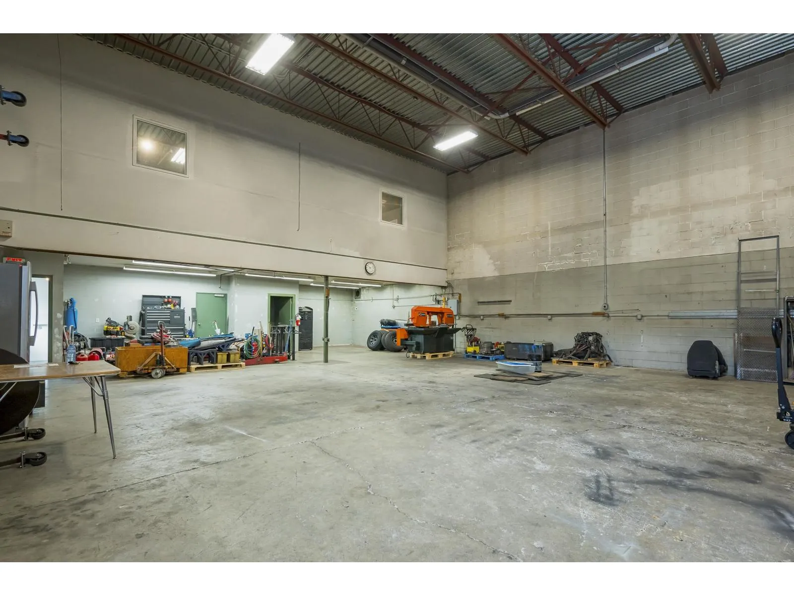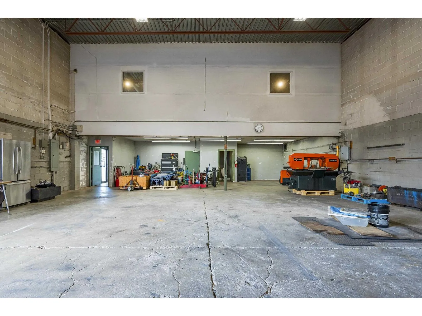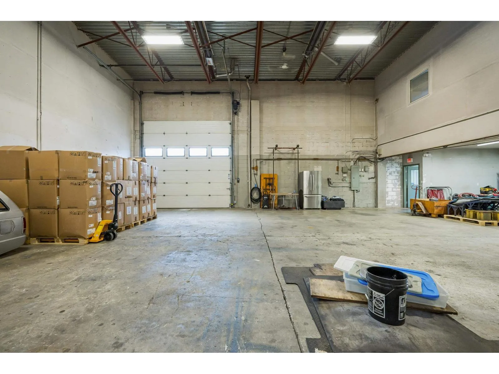 End Unit with total of 3174 sq ft. Main warehouse is 2400 sq ft (60 x 40) and includes a bathroom on the ground level. 714 sq ft office space above that has full kitchen and bathroom with permits. The industrial zone (Rare Automotive Use Permitted), 240 electric & phase 3 Power. 14 x 12 bay door and 1 loading dock on grade, New hot water tank and upgraded $8k radiant shop heater. Great opportunity to be in a prime central location. (id:27476)
