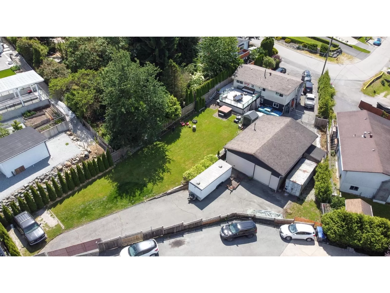 This 16,700 sq. ft. lot with front and back lane access offers space to park, expand, or add income potential. The 1,200 sq. ft. workshop is a car lover's dream with 12' ceilings, 200-amp service, three 10' bay doors, and a car lift. City zoning (RA) allows for up to 4 suites (buyer to confirm), so you could build a suite above the workshop or a coach house. The basement-entry layout suits multi-generational living or rental income, while the backyard with a 730 sq. ft. deck, hot tub, and mountain/river views is an entertainer's dream. Close to parks, transit, and schools like Kwantlen Park and James Ardiel Elementary, this property combines privacy with convenience. (id:27476)