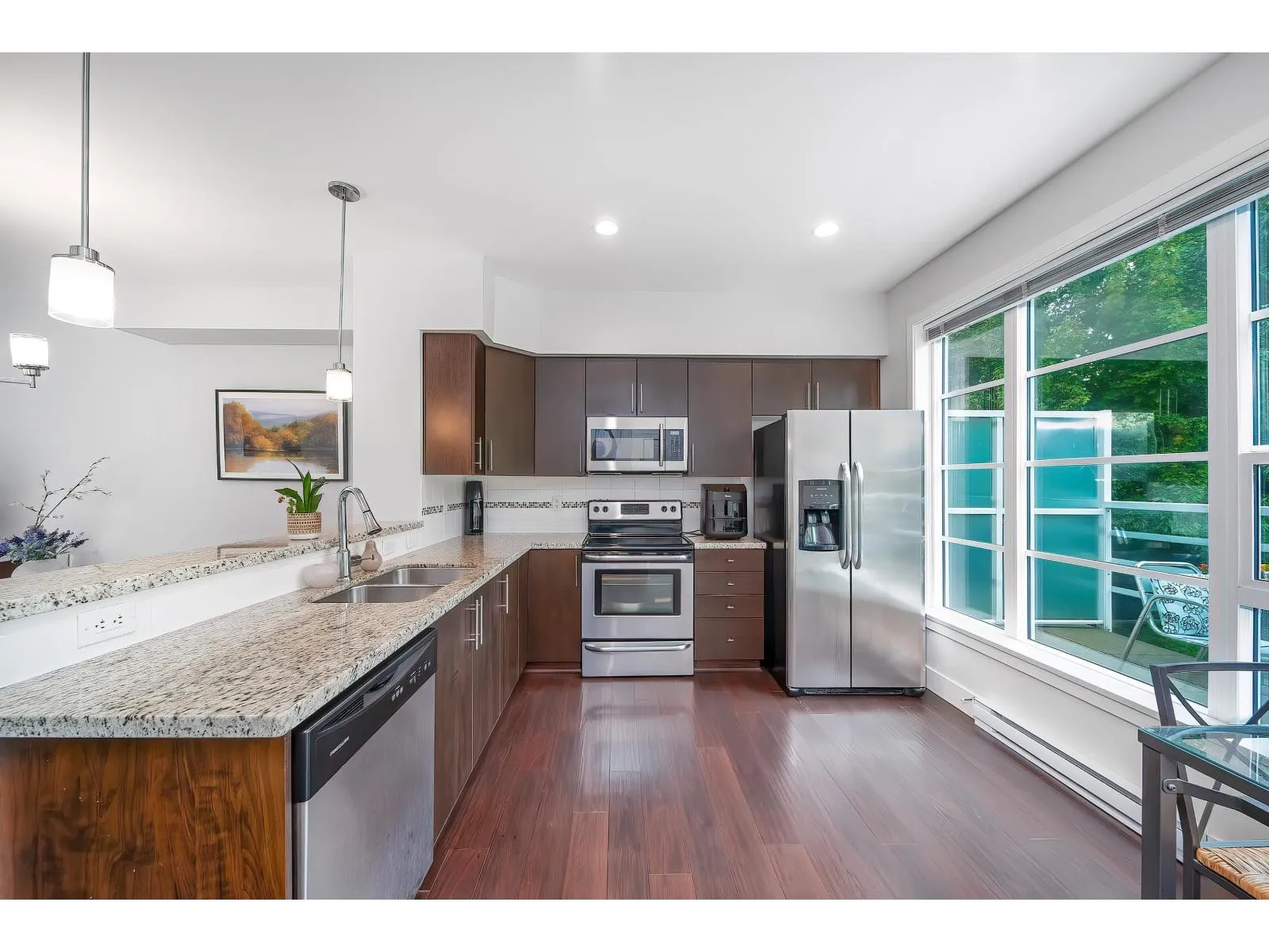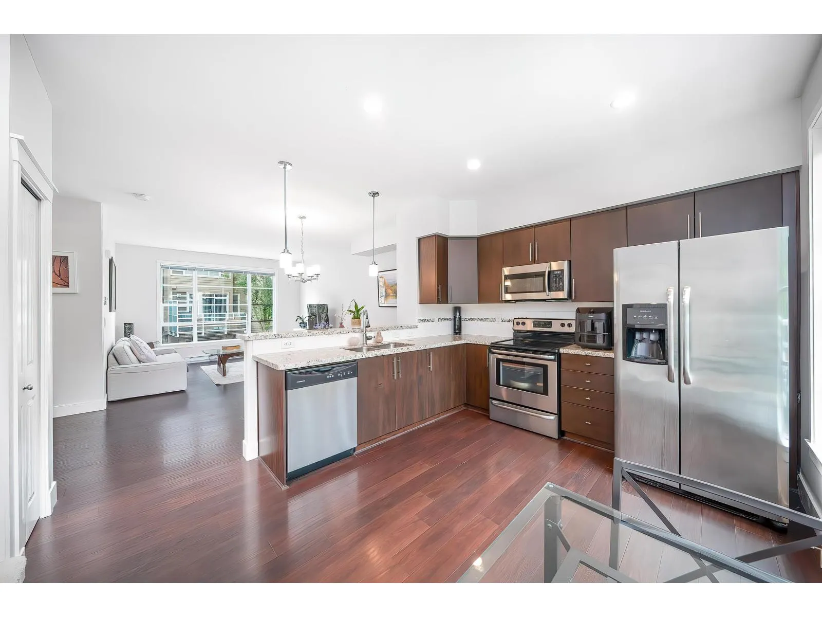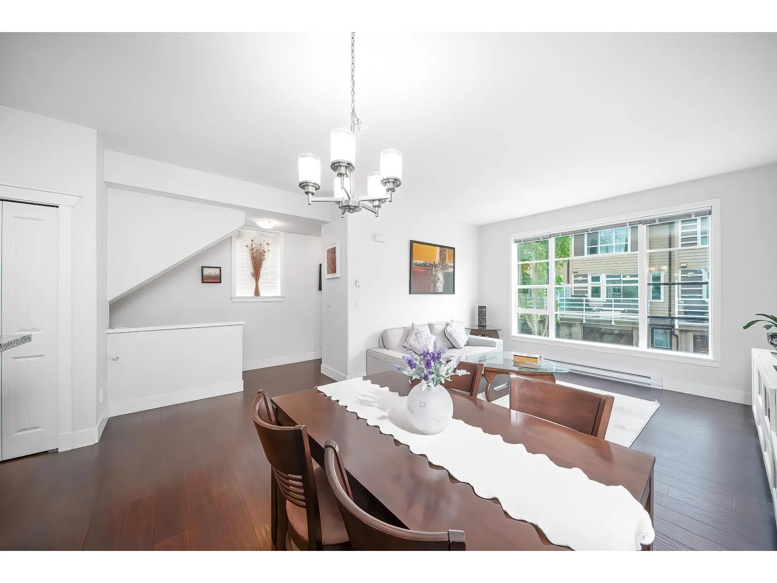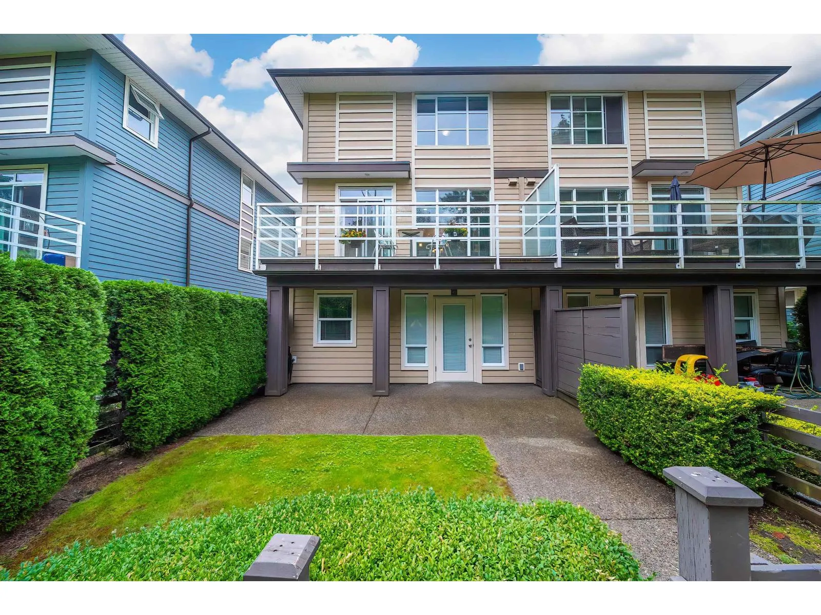 Welcome to this beautiful three-story duplex style townhouse at Nuvo II. It features 3 bright bedrooms upstairs and a versatile bedroom/flex room with its own bathroom downstairs. It's perfect as a 4 bedroom residence or a home-and-business office. The open kitchen features an island and a large pantry, while the bright main-floor living room is the place to relax and unwind. Enjoy the greenery all day long while surrounded by nature, sitting in the spacious private fenced-in backyard or on the balcony. The location is ideal, just minutes from Highway 99, yet still quiet and within walking distance of all shops, amenities, and restaurants. There's side-by-side double garage and plenty of guest parking. The complex also features a playground and amenities, including a gym and party room. (id:27476)