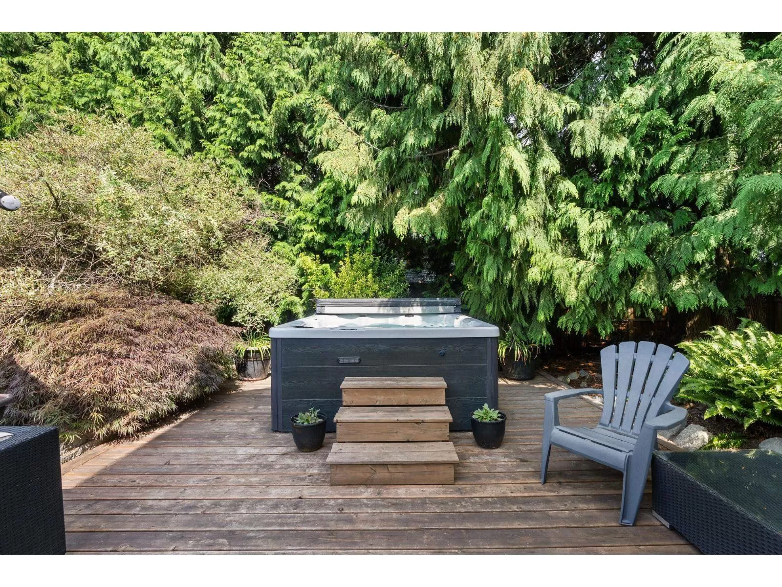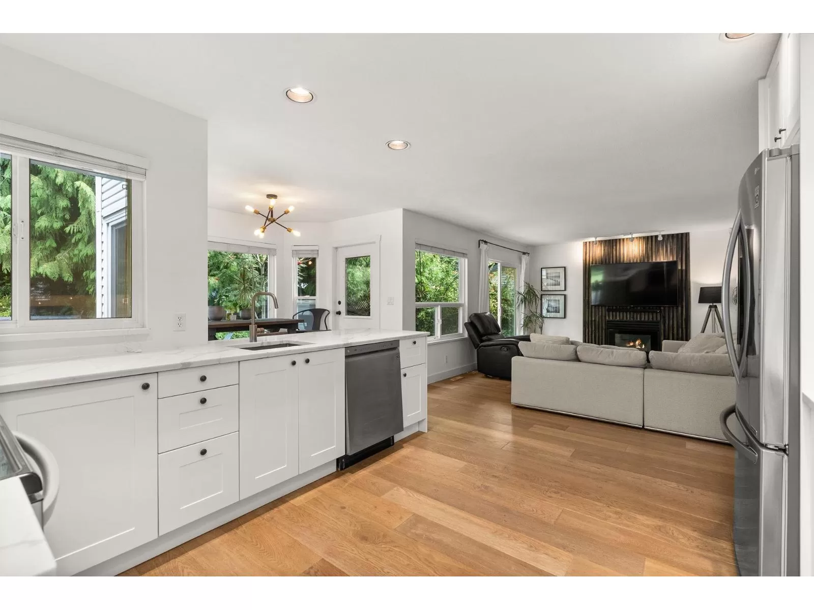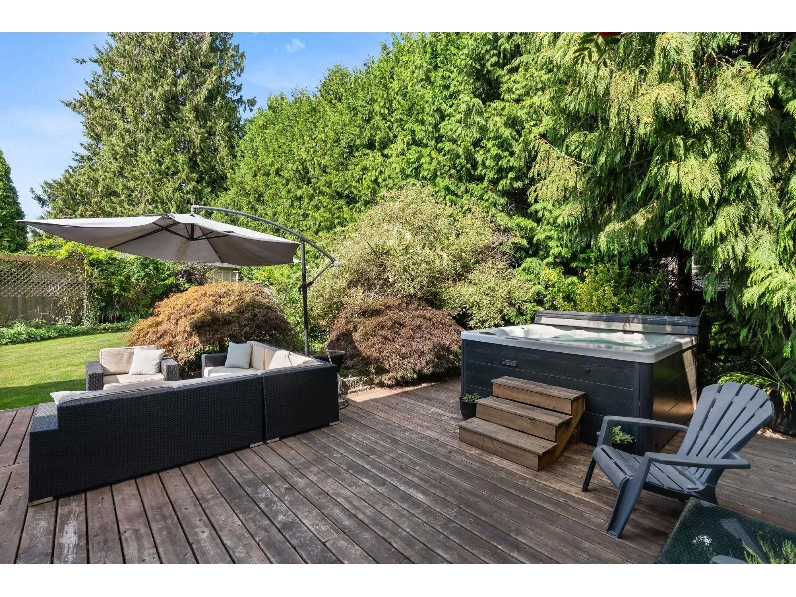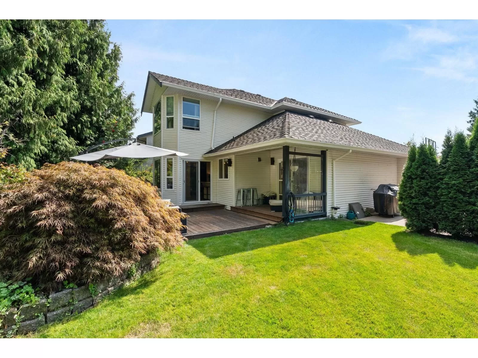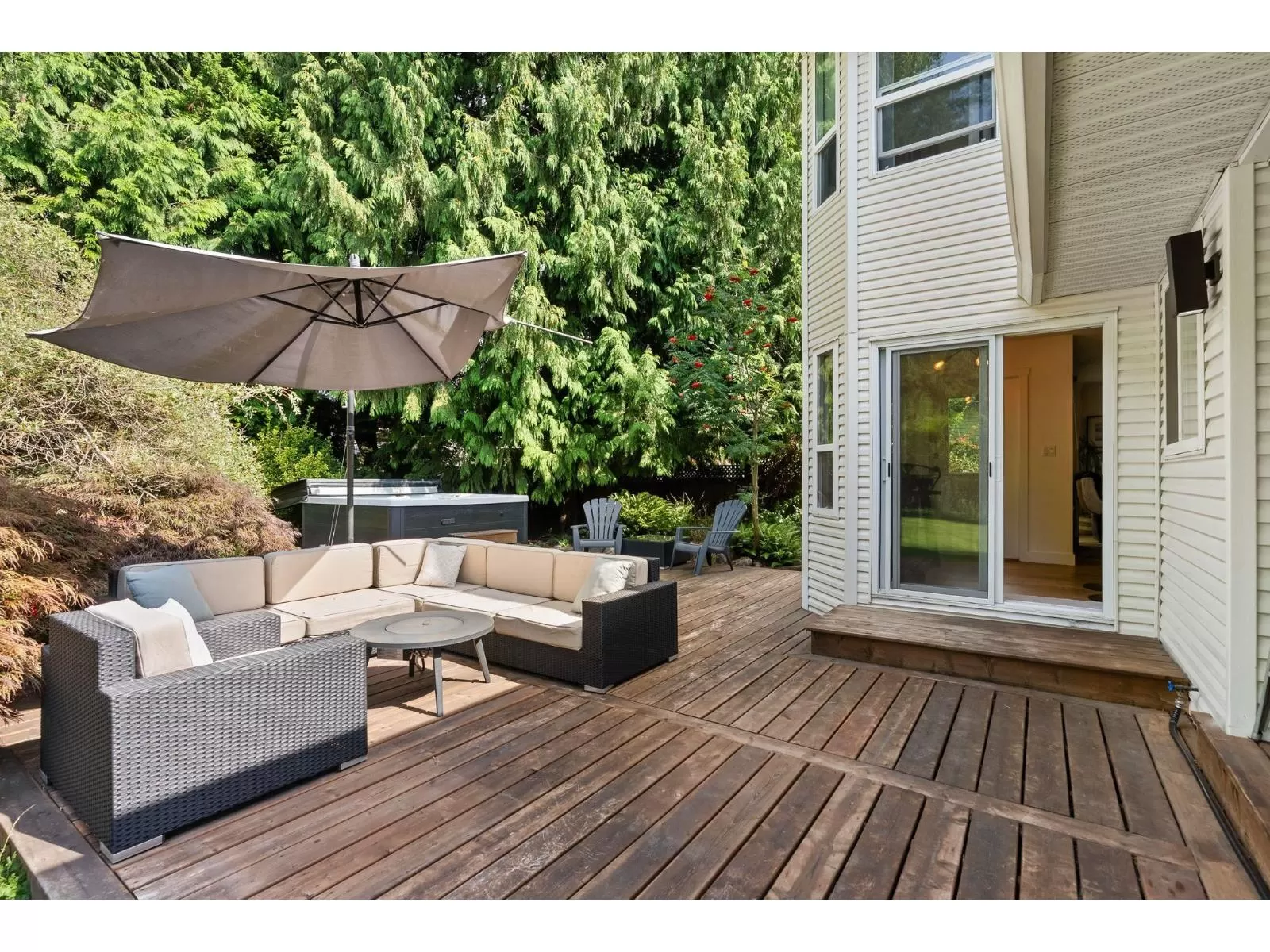 An impeccable, move-in-ready 5-bed, 3-bath GEM nestled on a secluded, sun-drenched lot that is almost 8,300 sf in a quiet cul-de-sac. Open-concept layout, elegant engineered hardwood flooring throughout, tons of oversized windows with a bedroom on the main floor, close to the powder room offering flexibility & versatility for any family's needs. The kitchen is sleek & modern with a sunny eating area that flows either way from one living area into the other. 2 gas fireplaces & 3 sliding glass doors that leads right out to your own private backyard oasis. An ideal setup for indoor-outdoor living. Sundeck, Hot Tub, mature landscaping, plenty of room to play. Upstairs is plush carpeting, the main bathroom, three bedrooms & the primary suite. OPEN HOUSE SUNDAY NOV. 2nd 2pm to 4pm. (id:27476)